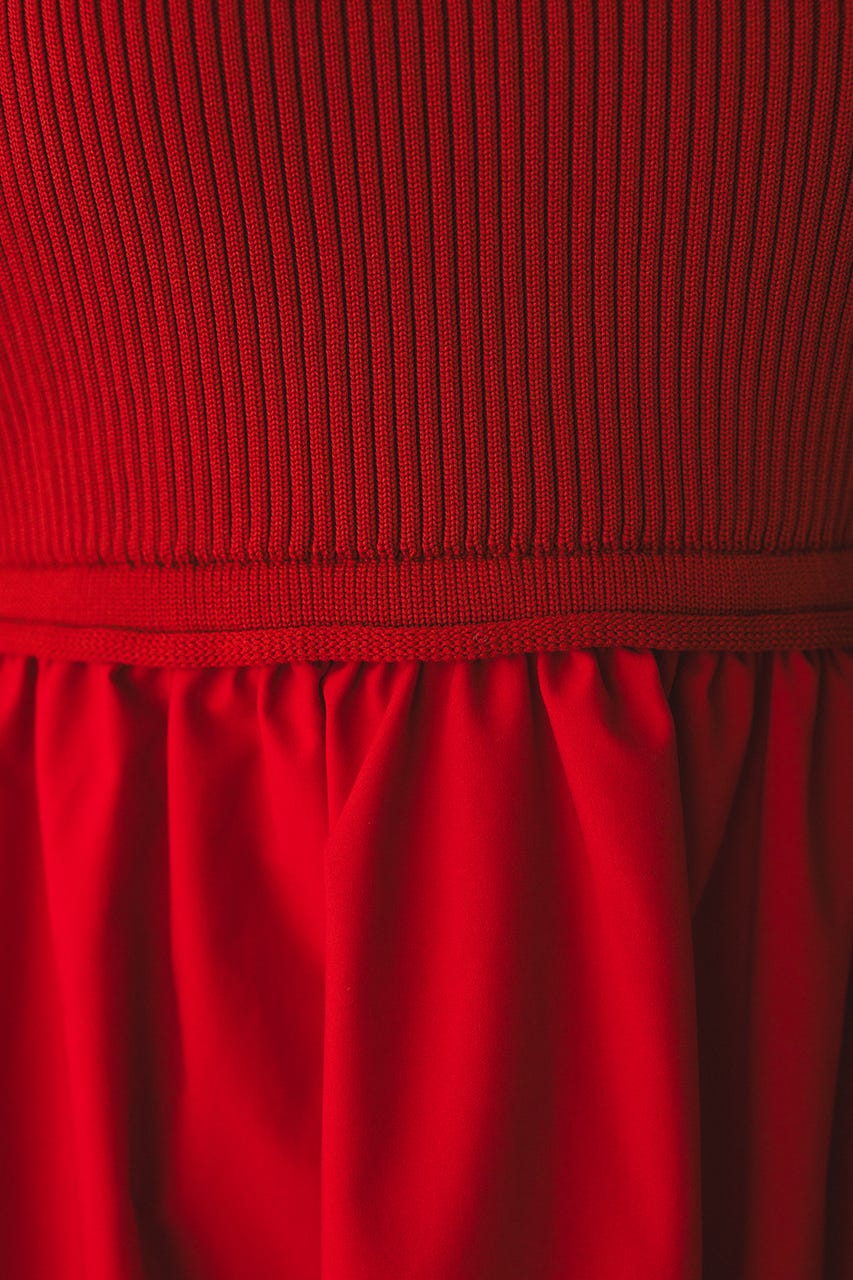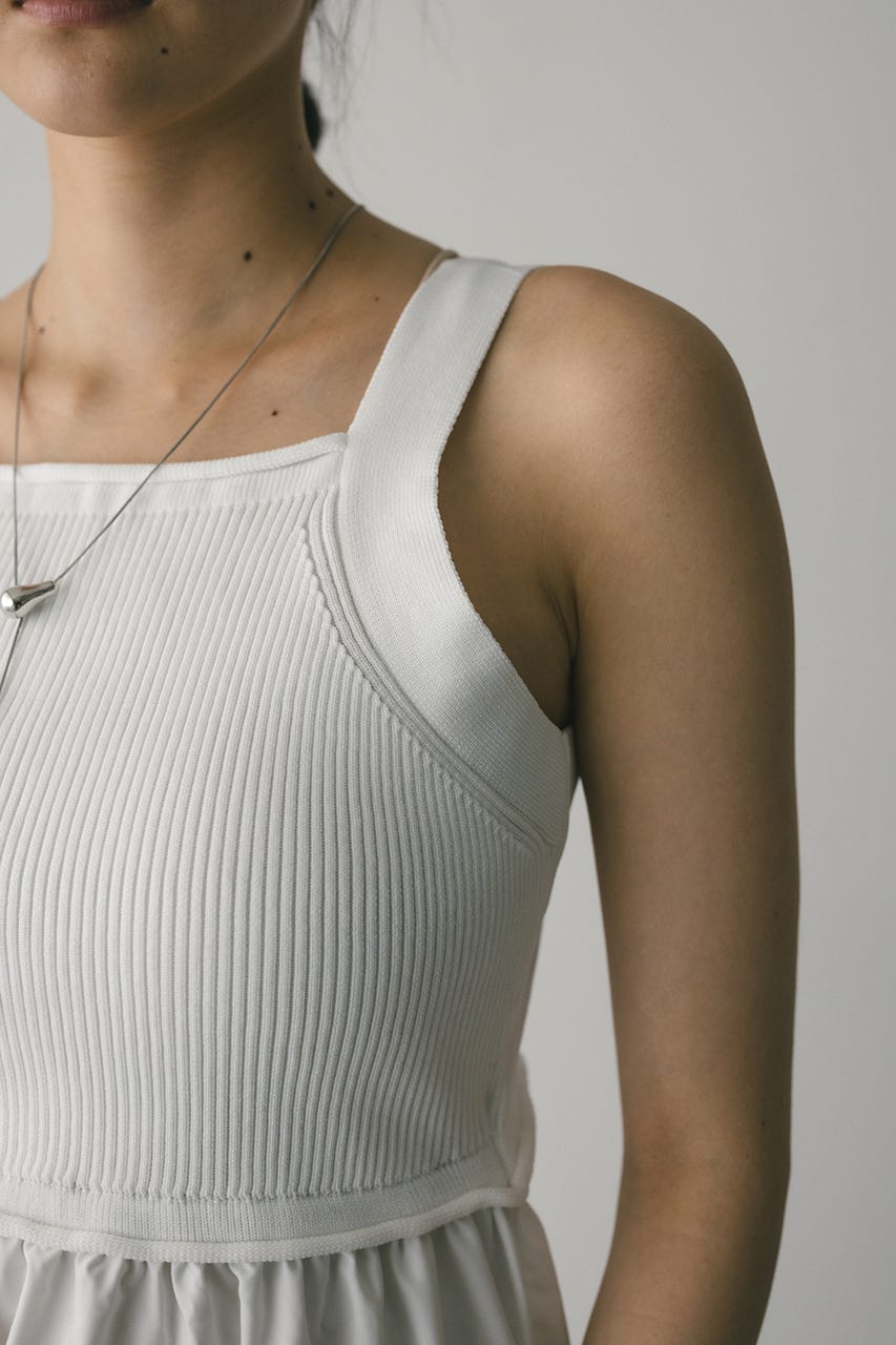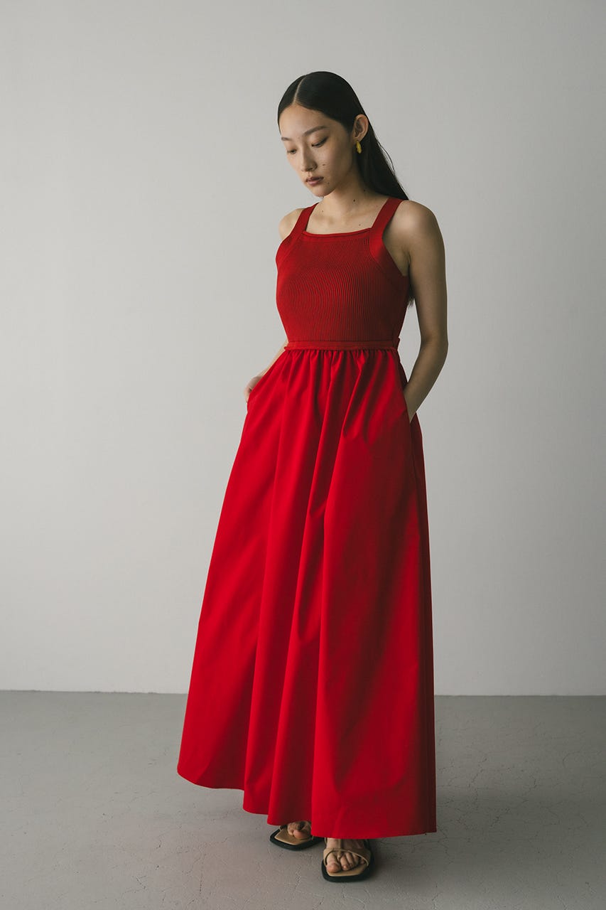 BLK,RED:ニット部分ポリエステル100% 布帛部分ポリエステル100% WHT:ワンピースニット部分ポリエステル100% 布帛部分ポリエステル100% ペチコートポリエステル100%