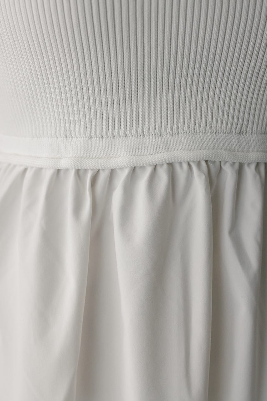 スカート部分はドライな布帛素材を使用しているので、軽やかな印象を与え、涼しげに着用頂けます。