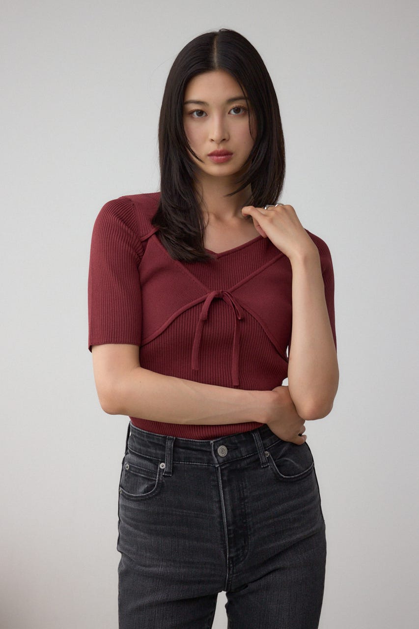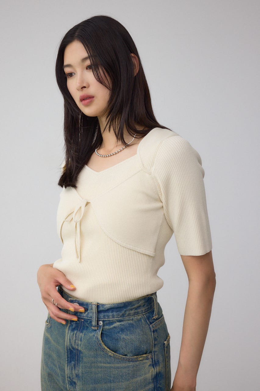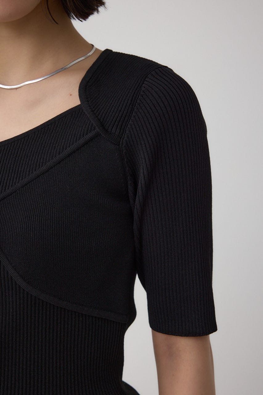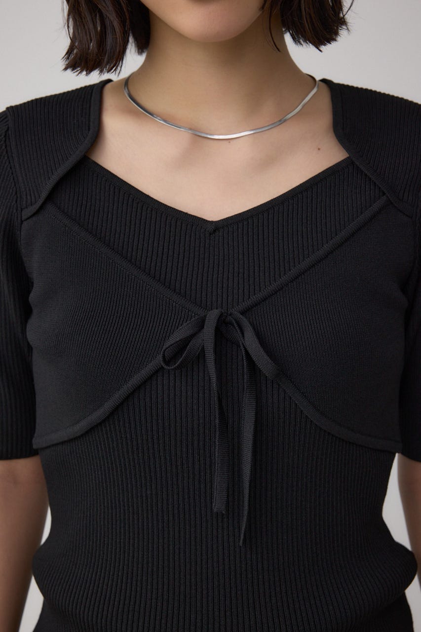 ビスチェがレイヤードされたようなディテールのデザインニットです。