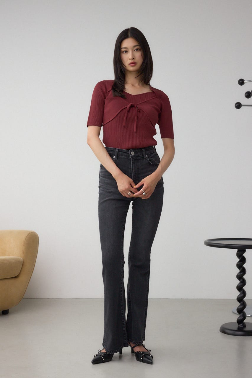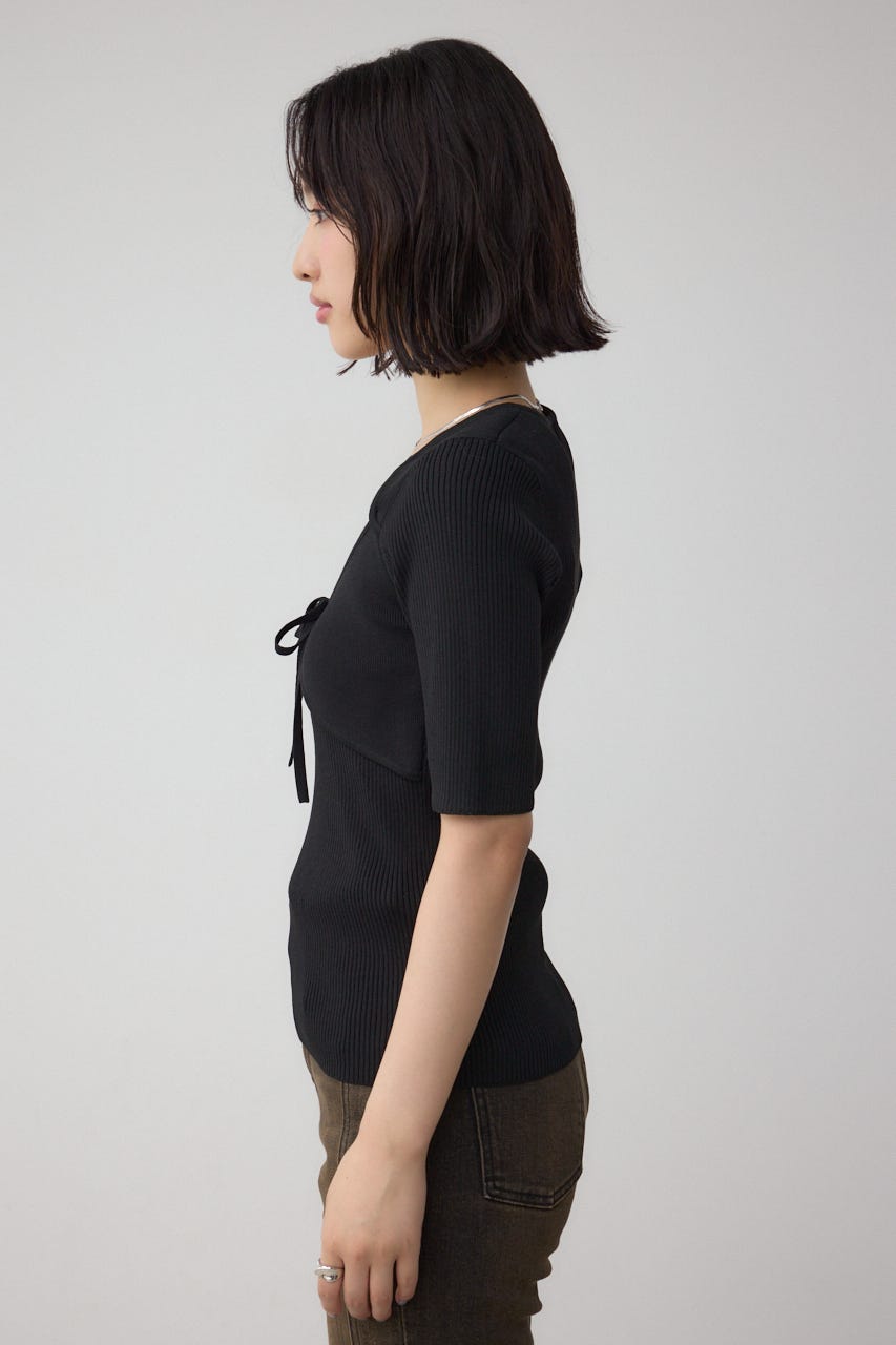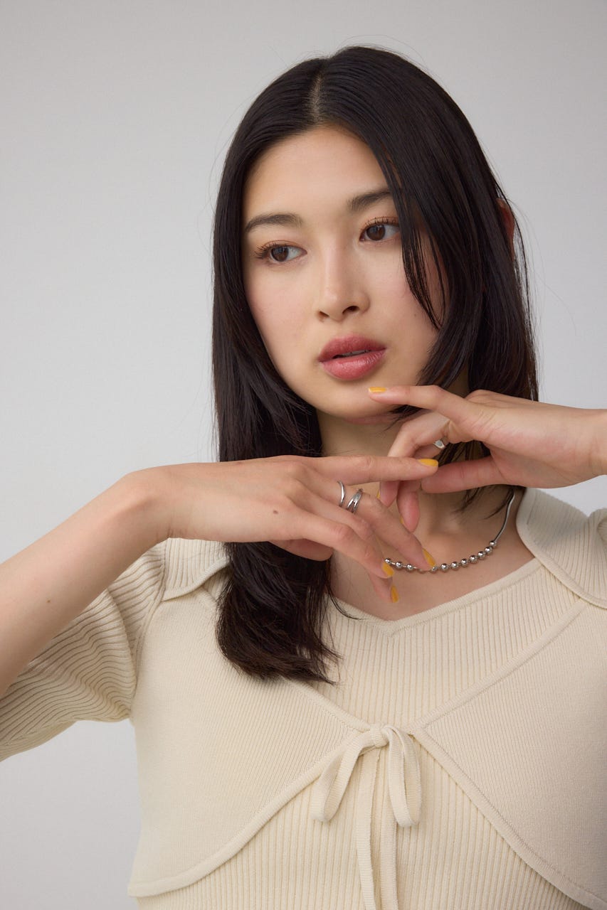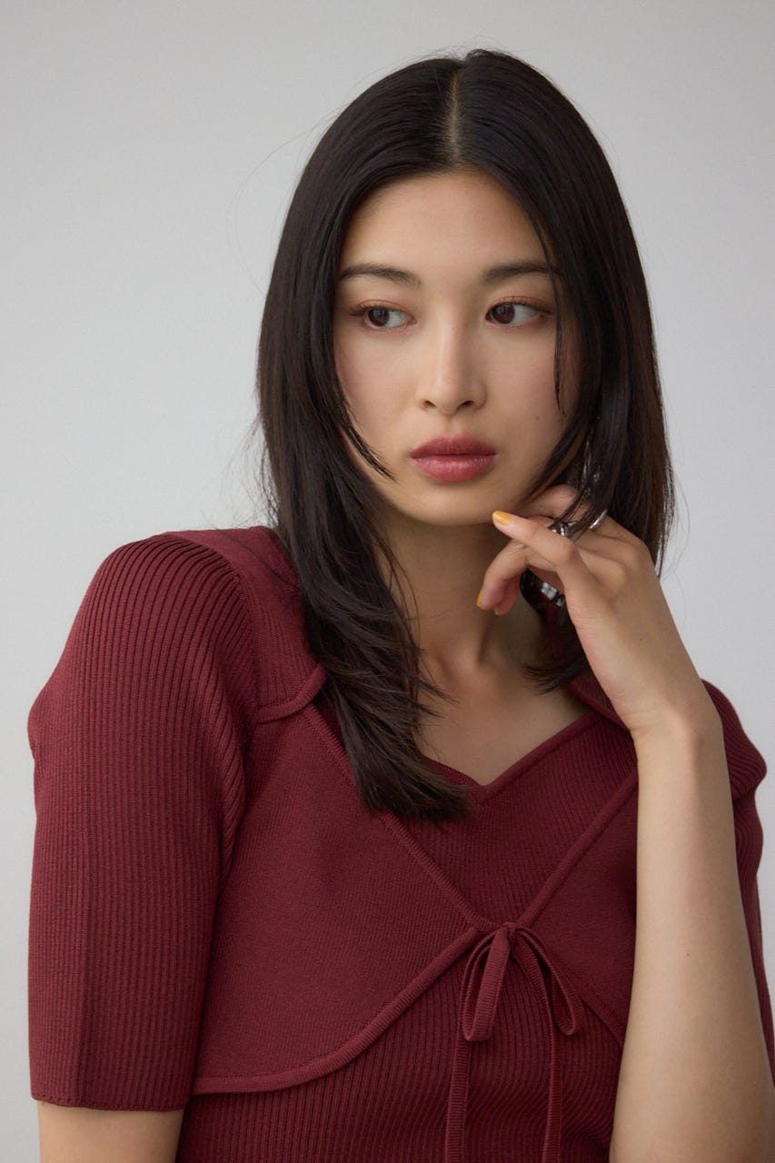 ビスチェがレイヤードされたようなディテールのデザインニットです。