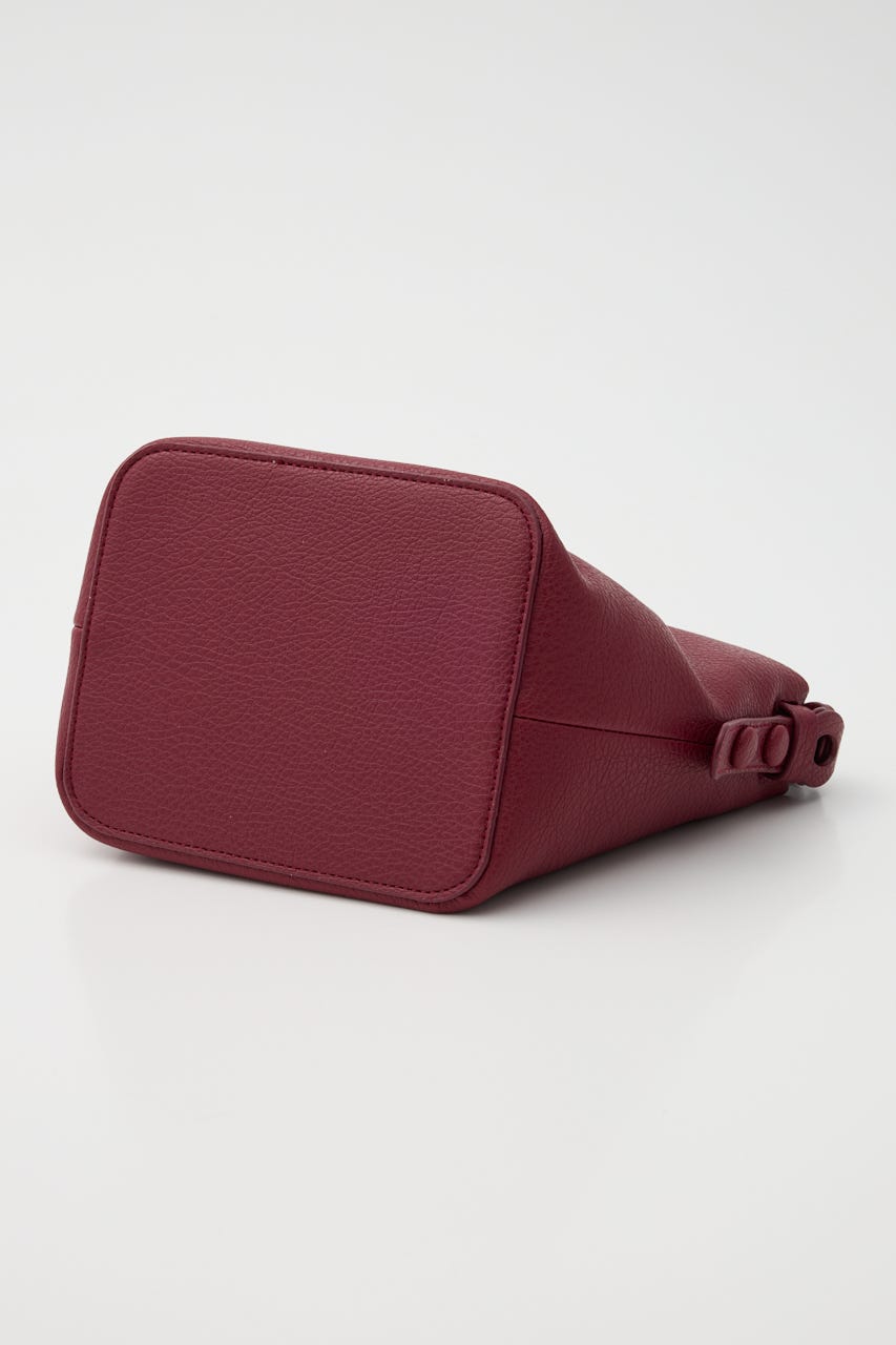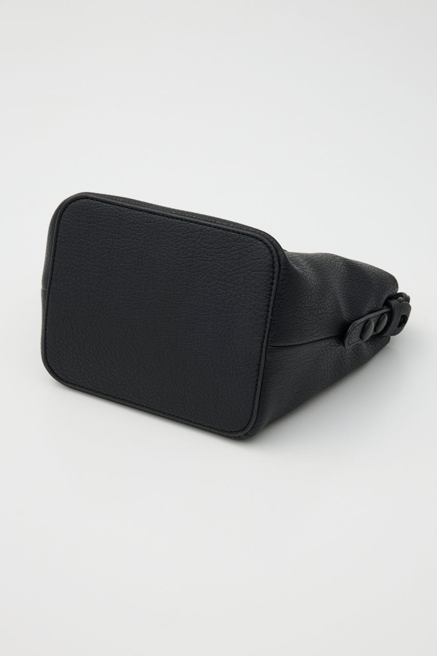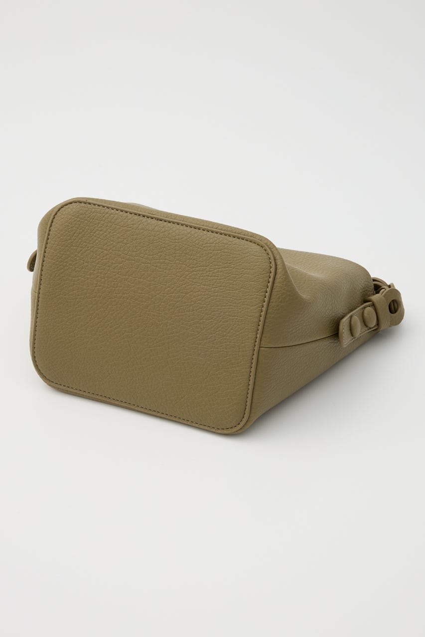 柔らかい合皮を使用しているので体にフィットし、巾着をキュッと絞るとコロンとした型になるのもポイントです。