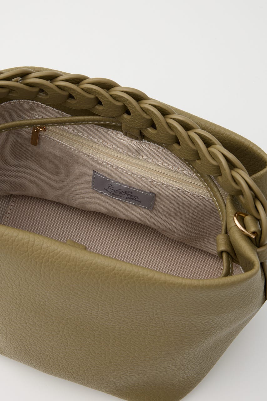 パッチワークのように繋いだハンドルがデザインポイントの2wayショルダー。