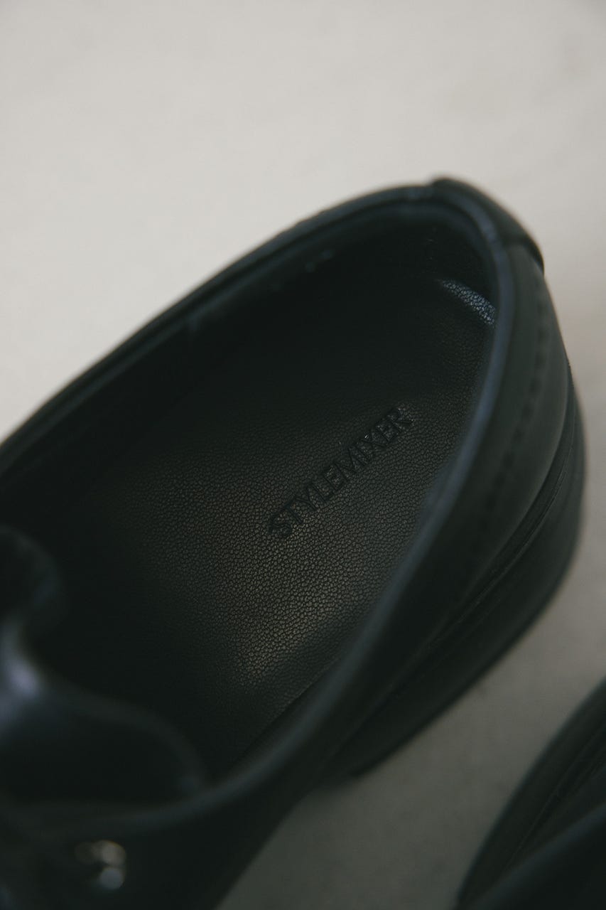 ボリュームのあるフレアソールと編み上げデザインが存在感のあるローファー。