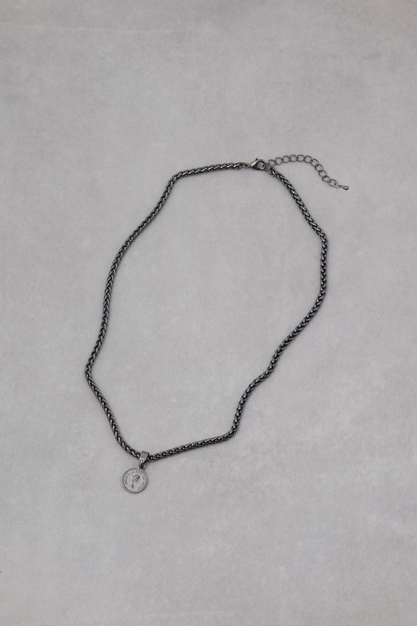 ツイストチェーンにコイントップをあしらったネックレスになります。