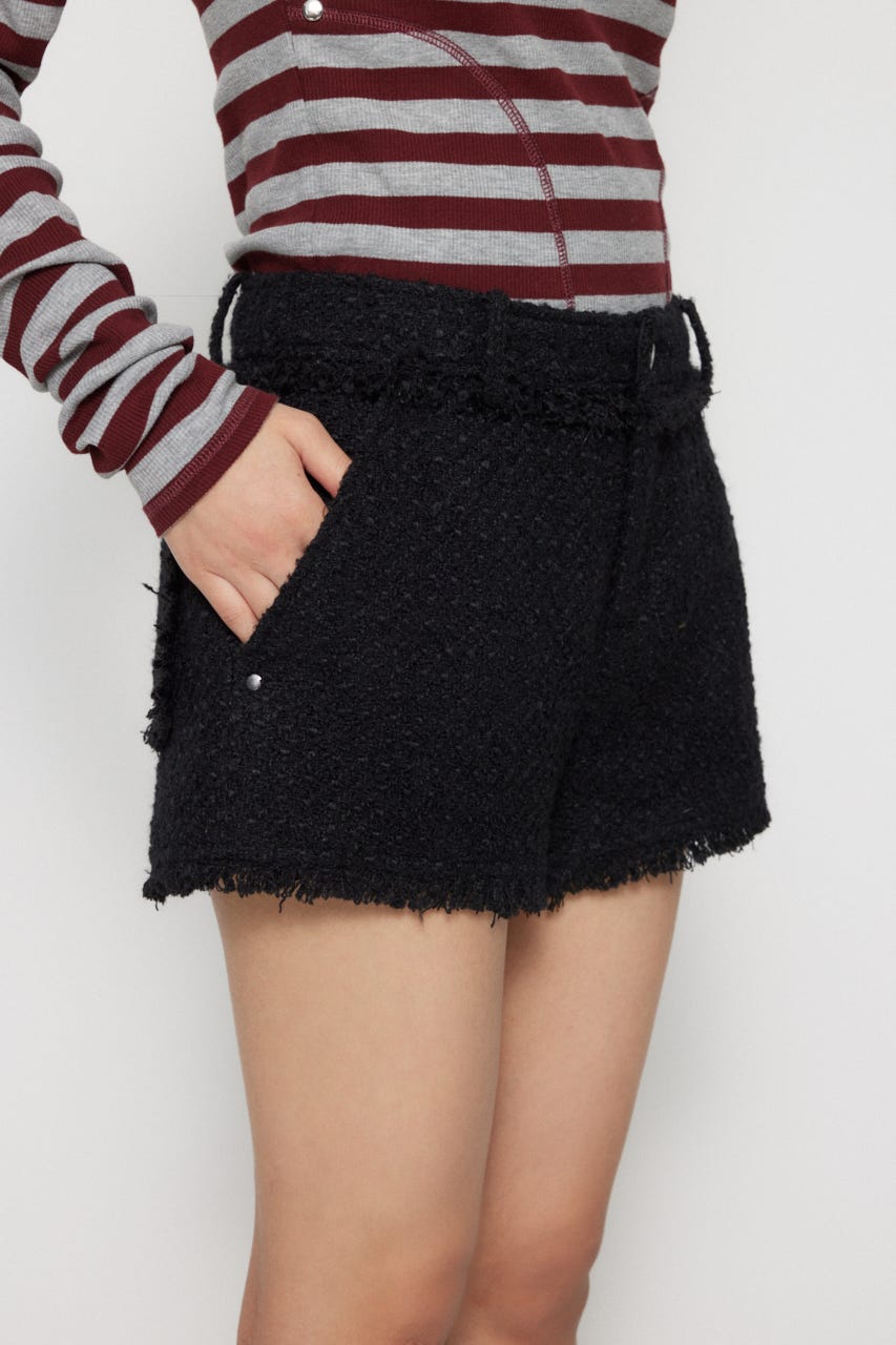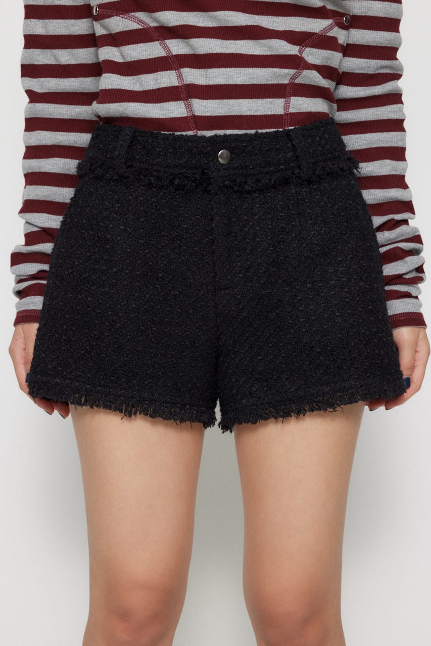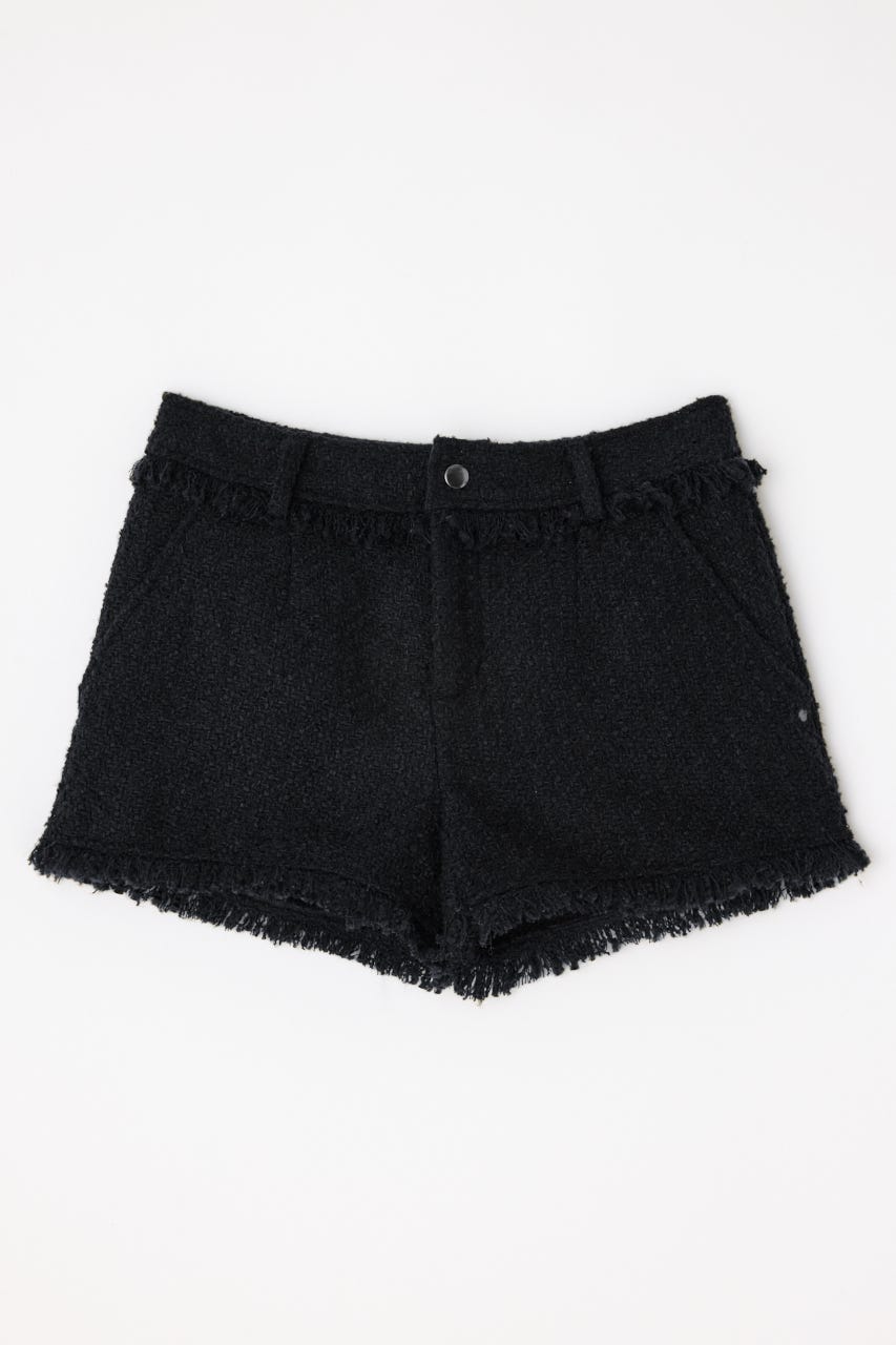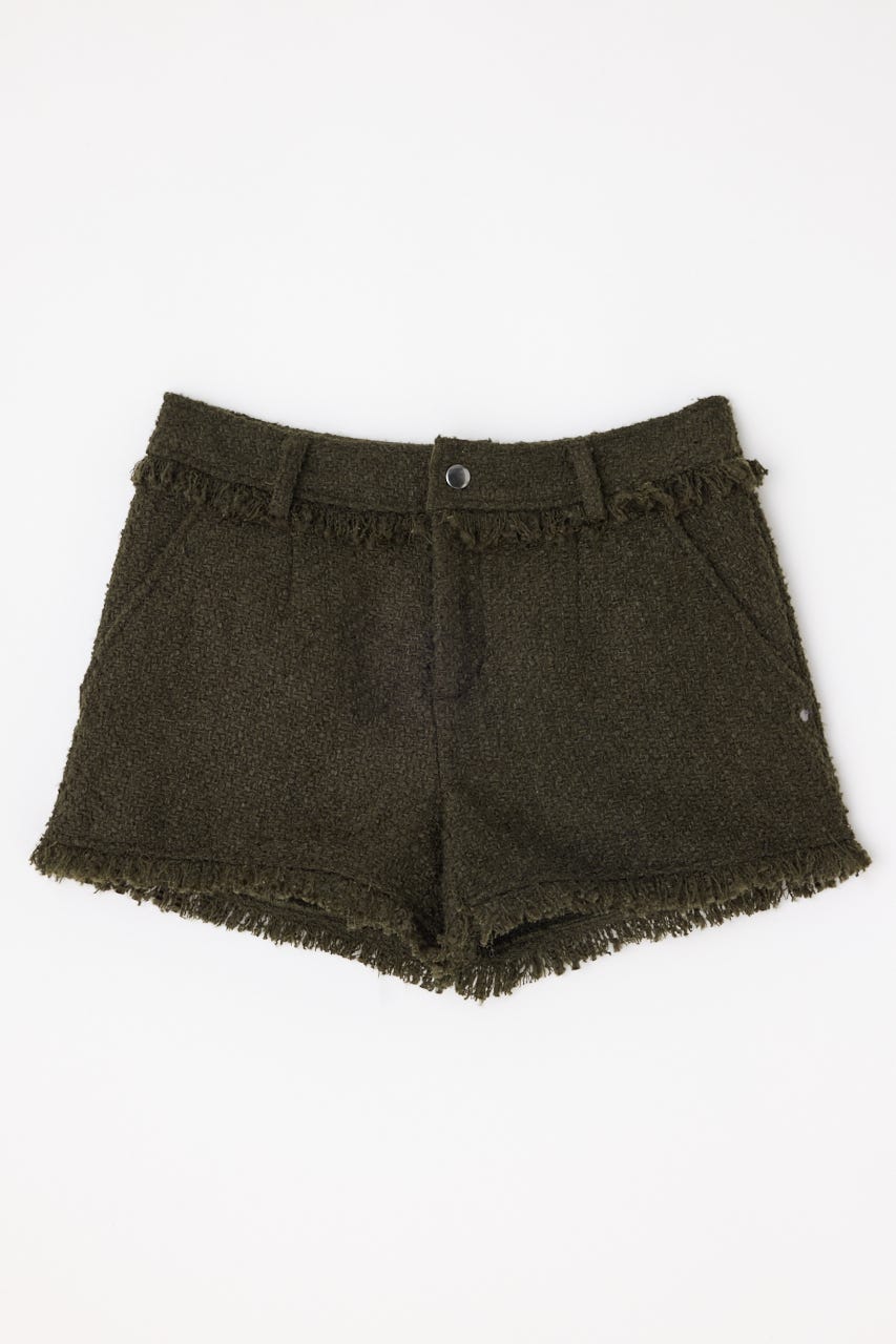 ■POINT:裾のフリンジがポイントのツイードショートパンツ。