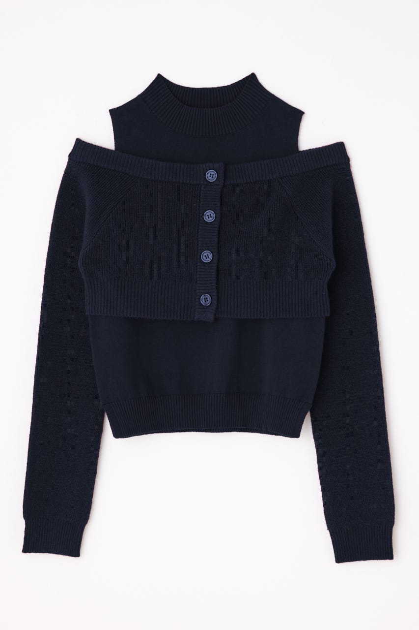 ■POINT:ハイネックのスリーブレスニットとクロップドのオフショルダートップスの2ピースアイテム。