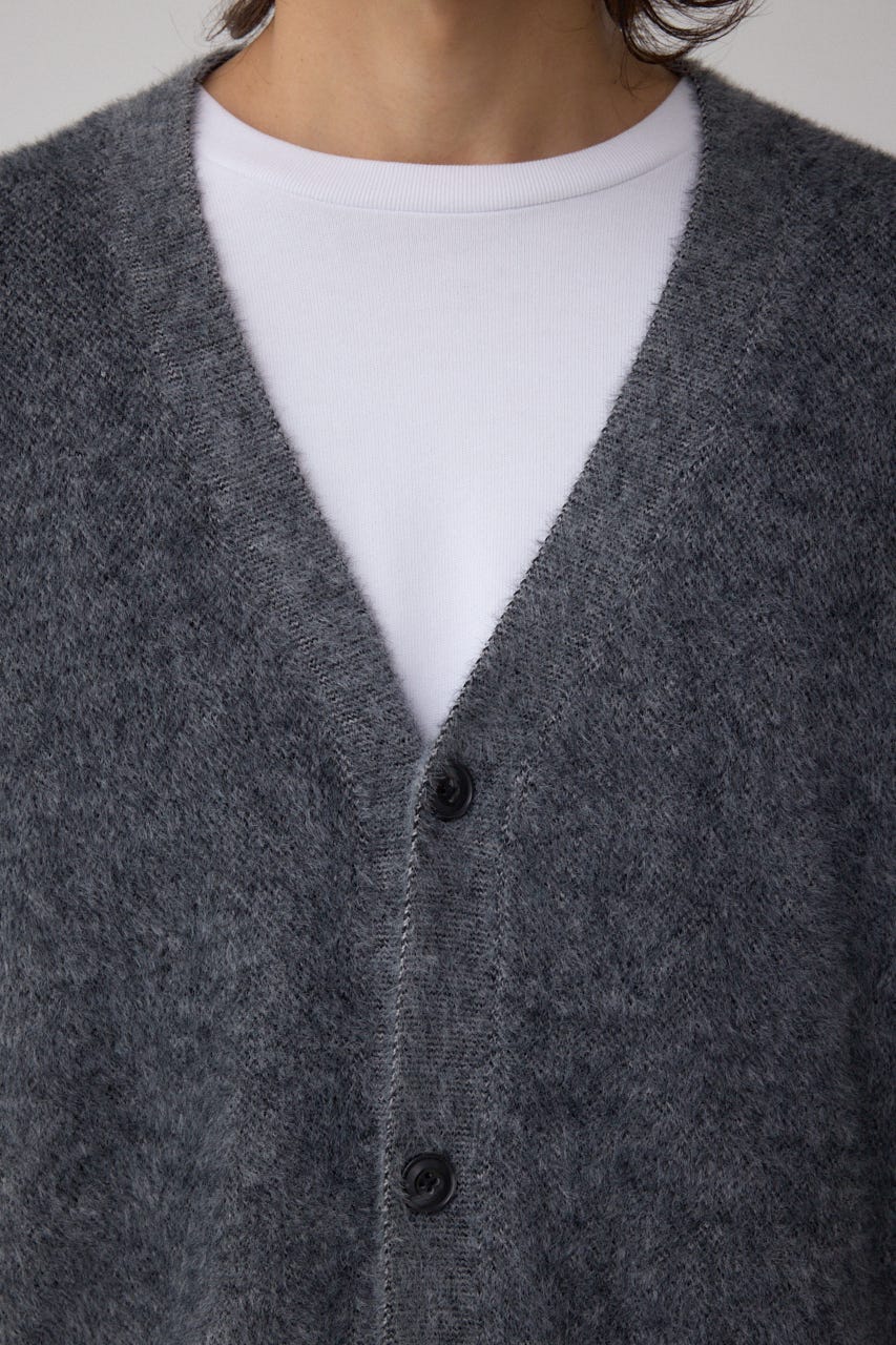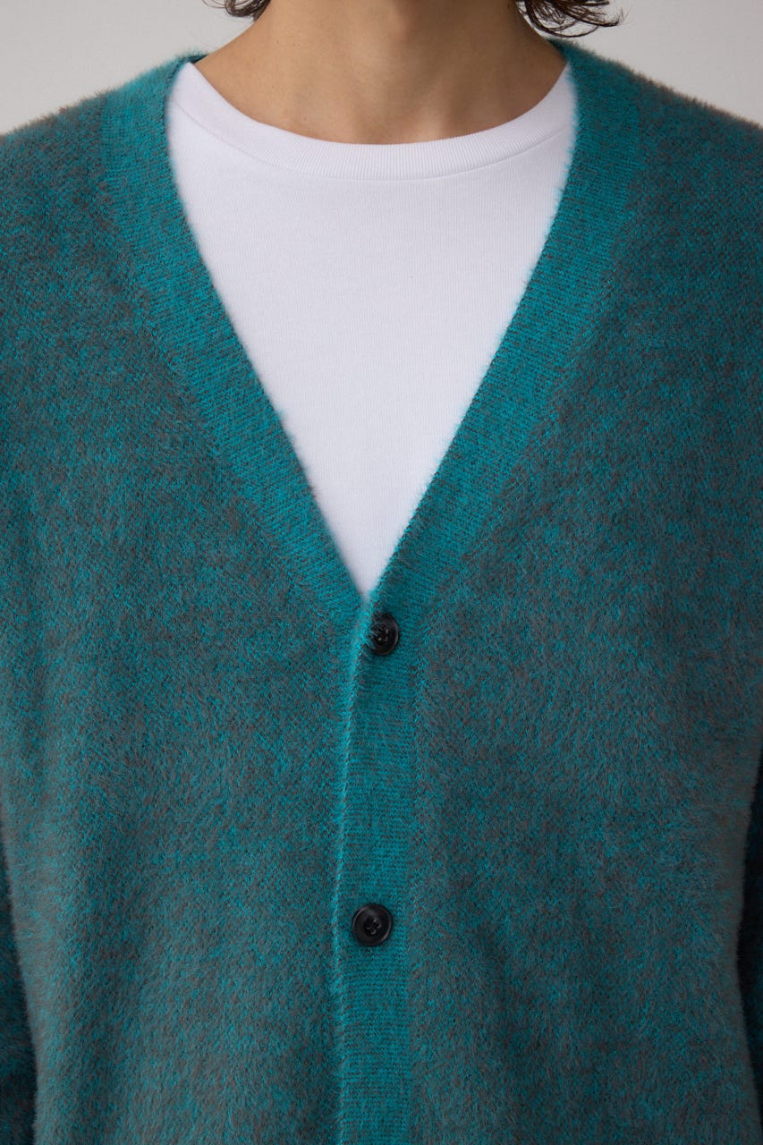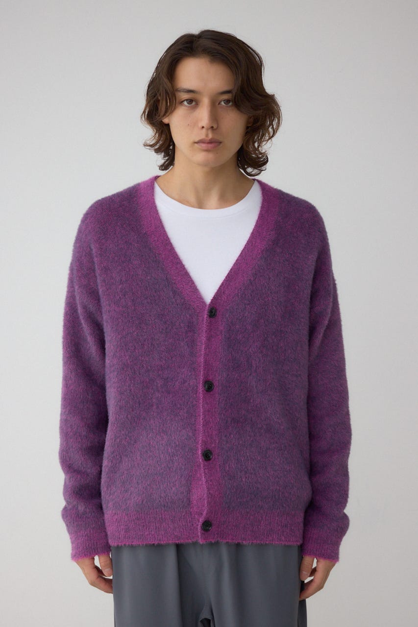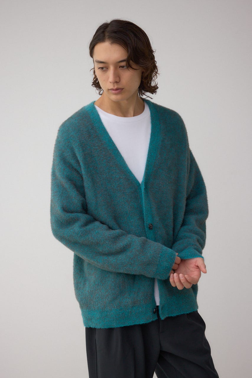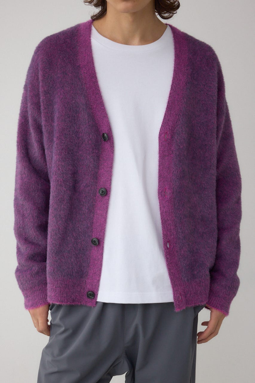 毛足のあるシャギー糸でツイード調の配色ジャガードを表現した暖かみのあるカーディガンです。