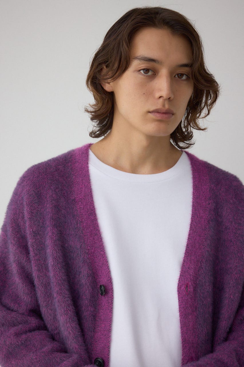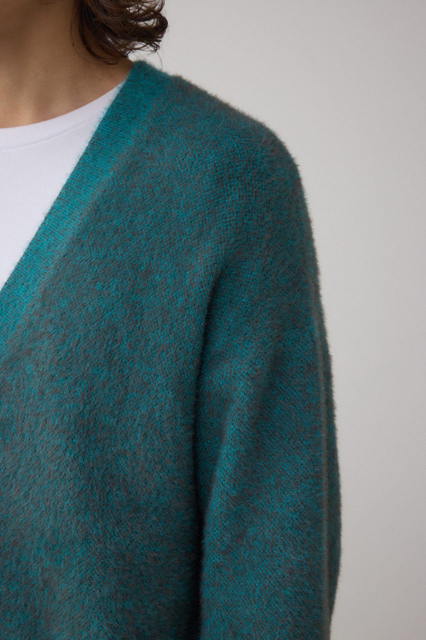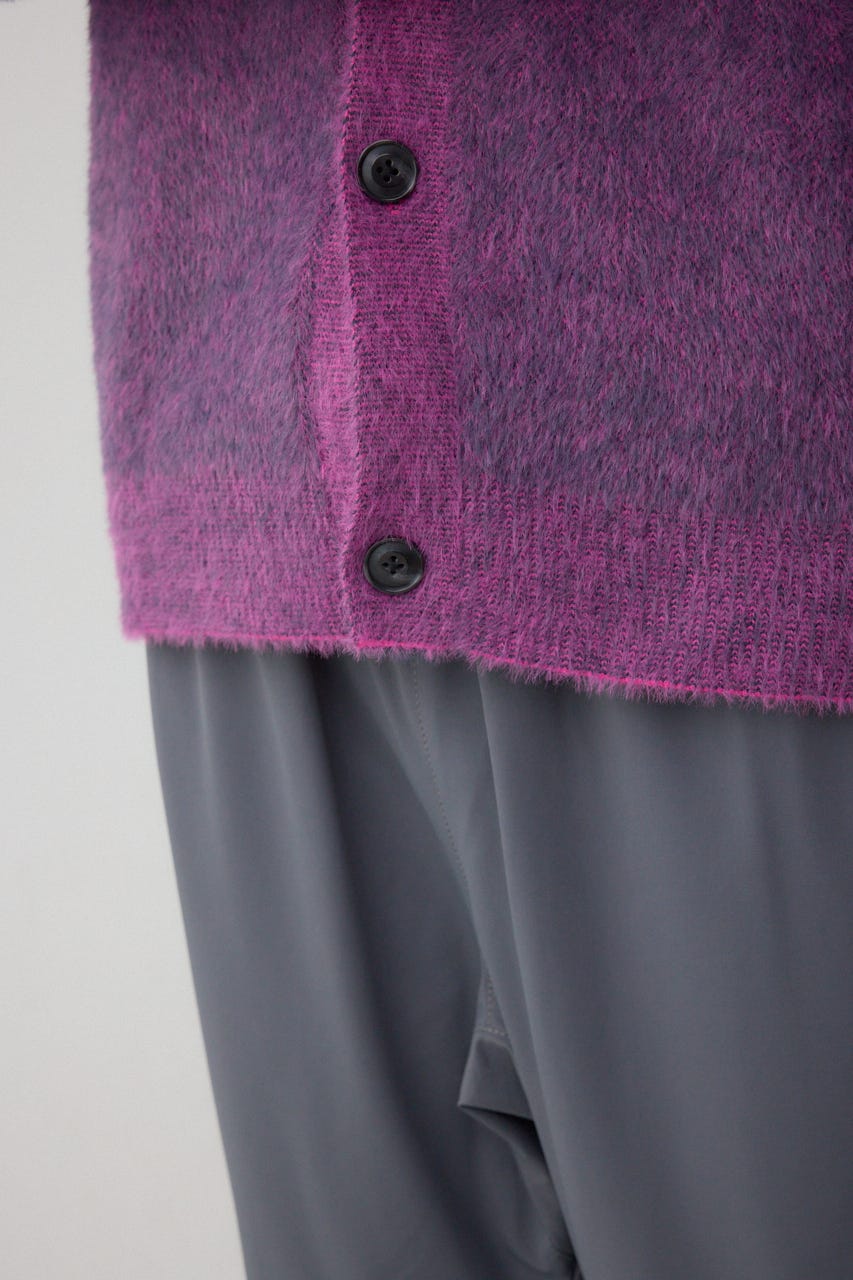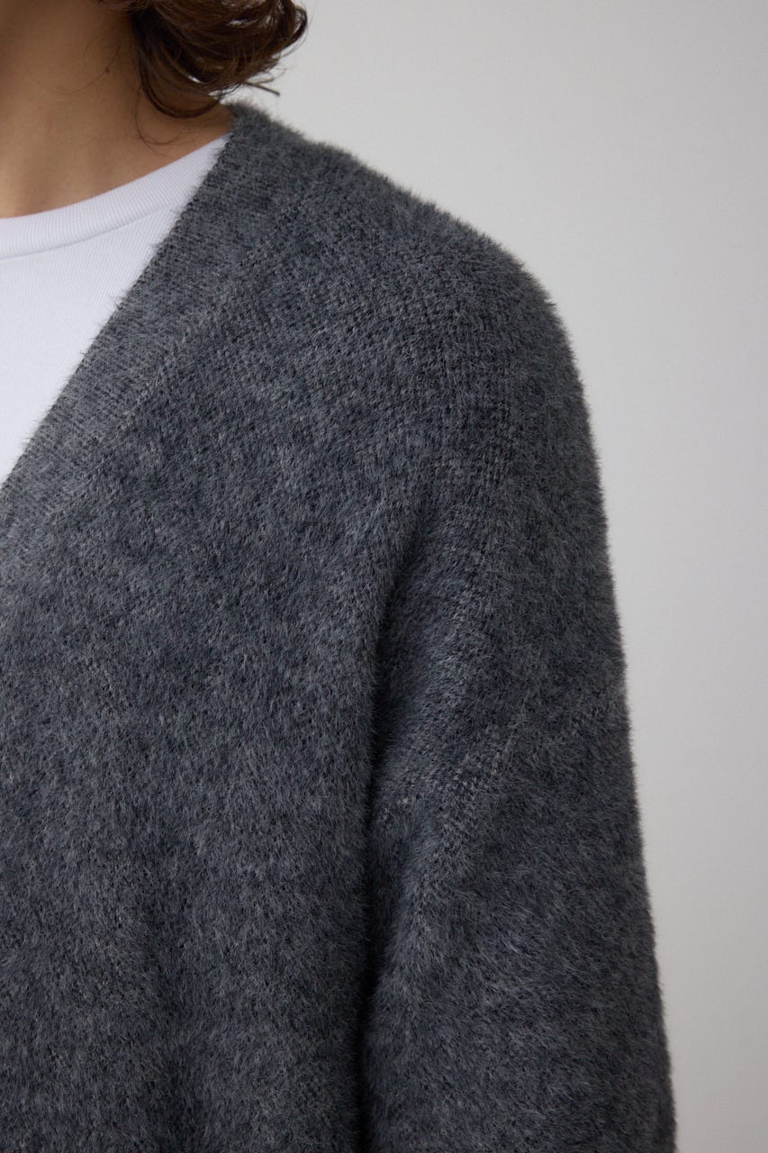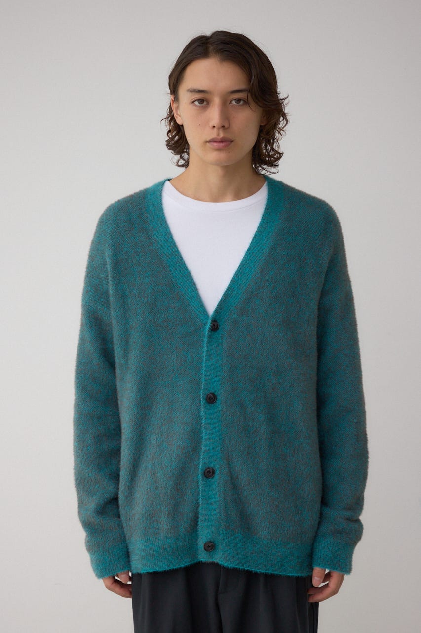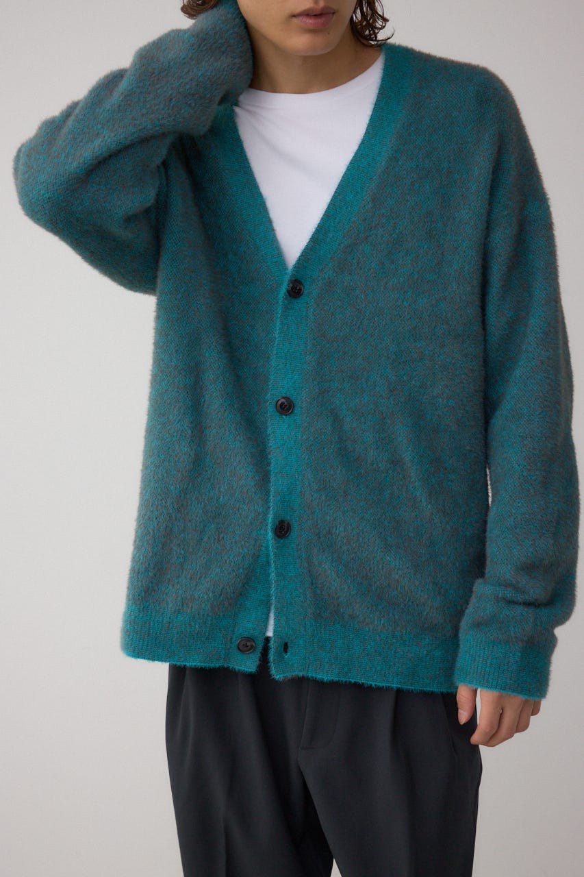 毛足のあるシャギー糸でツイード調の配色ジャガードを表現した暖かみのあるカーディガンです。