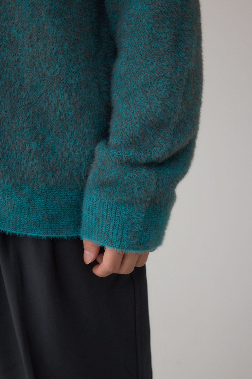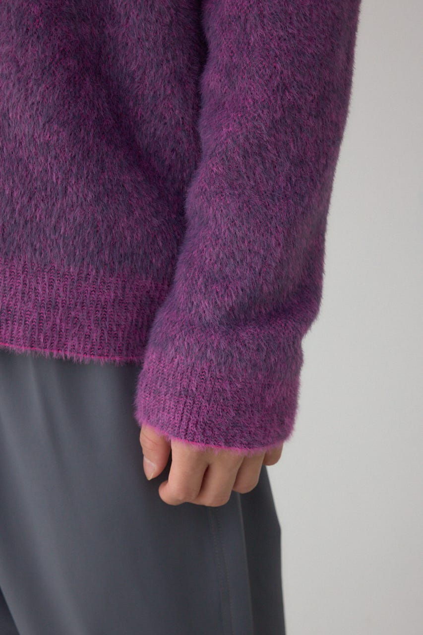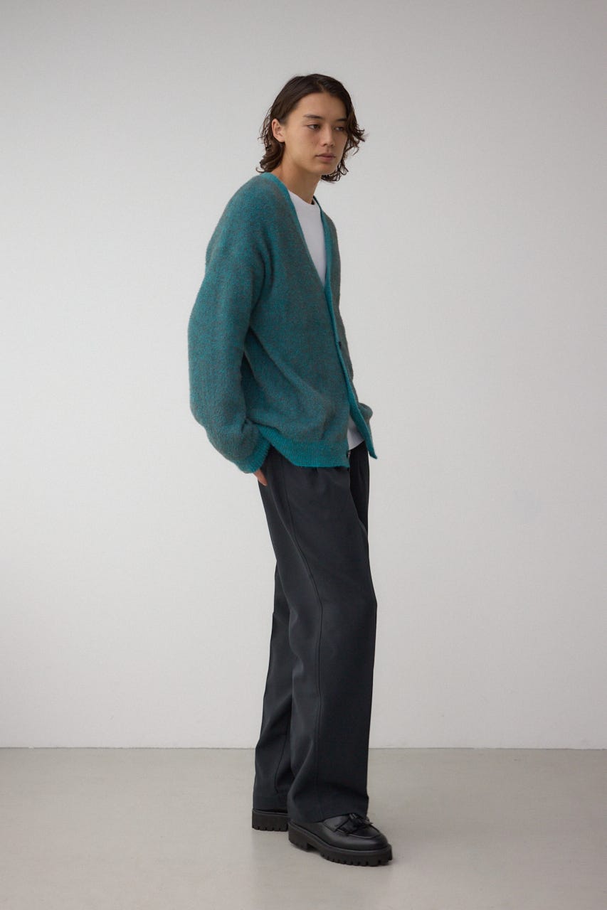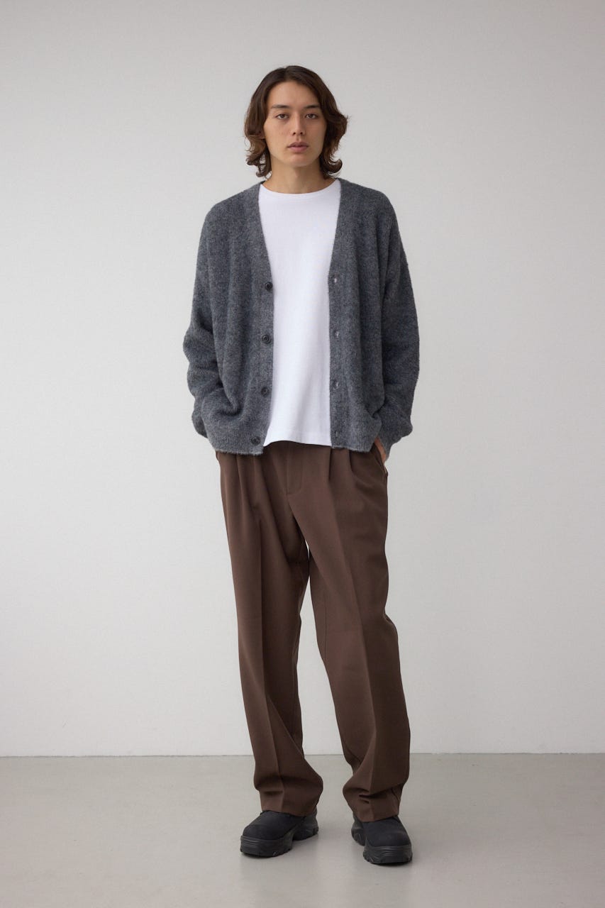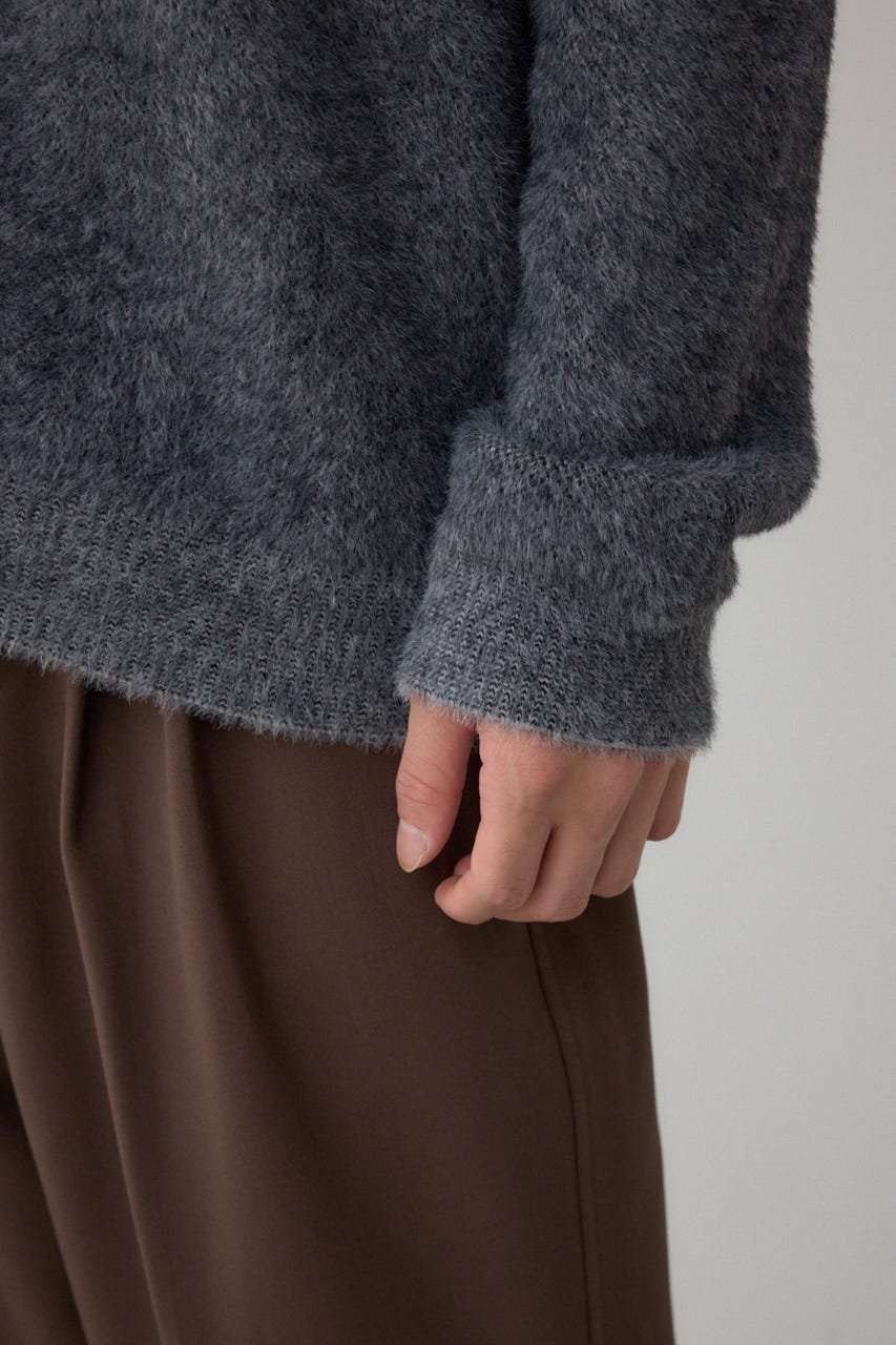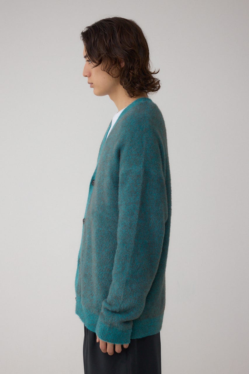 毛足のあるシャギー糸でツイード調の配色ジャガードを表現した暖かみのあるカーディガンです。