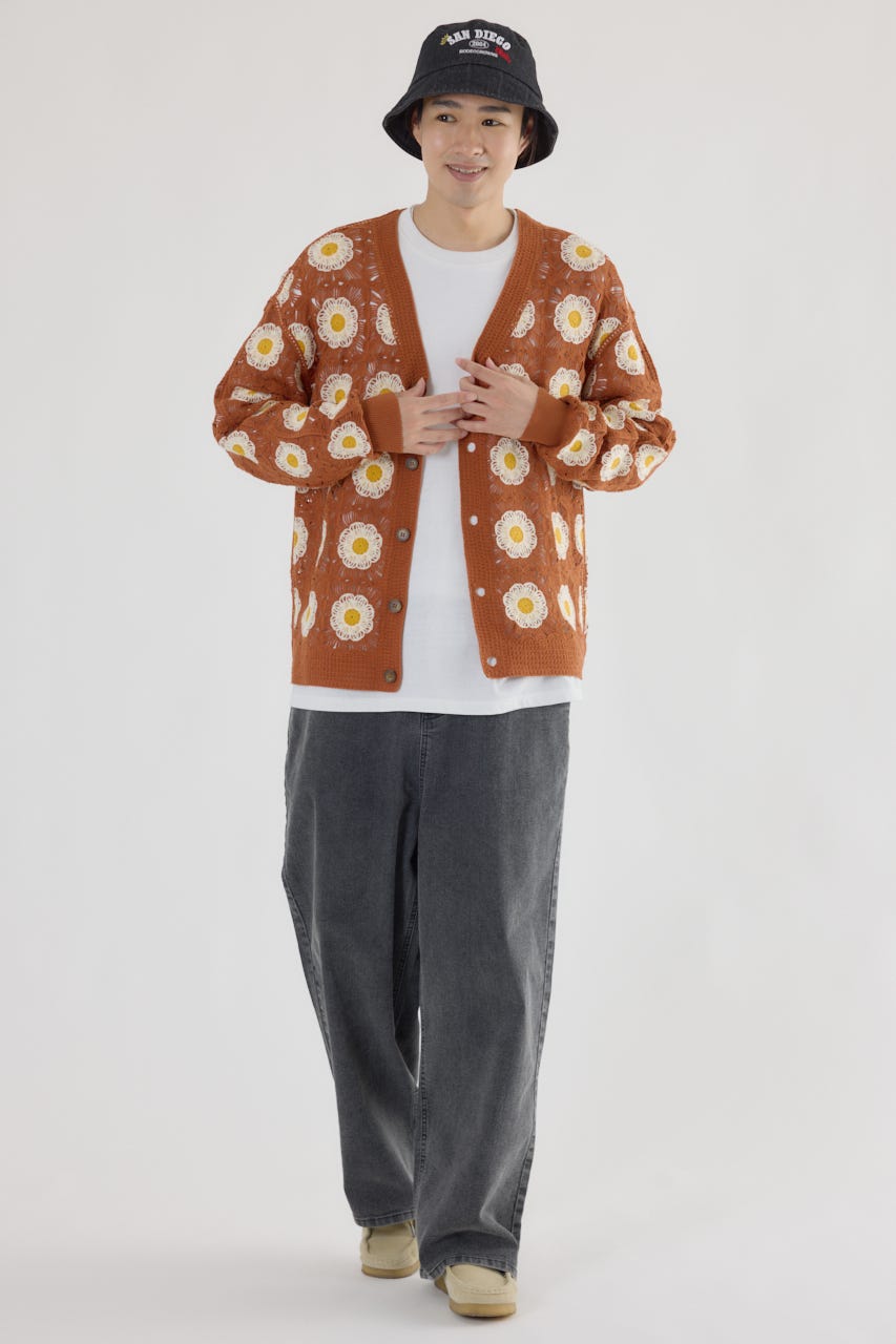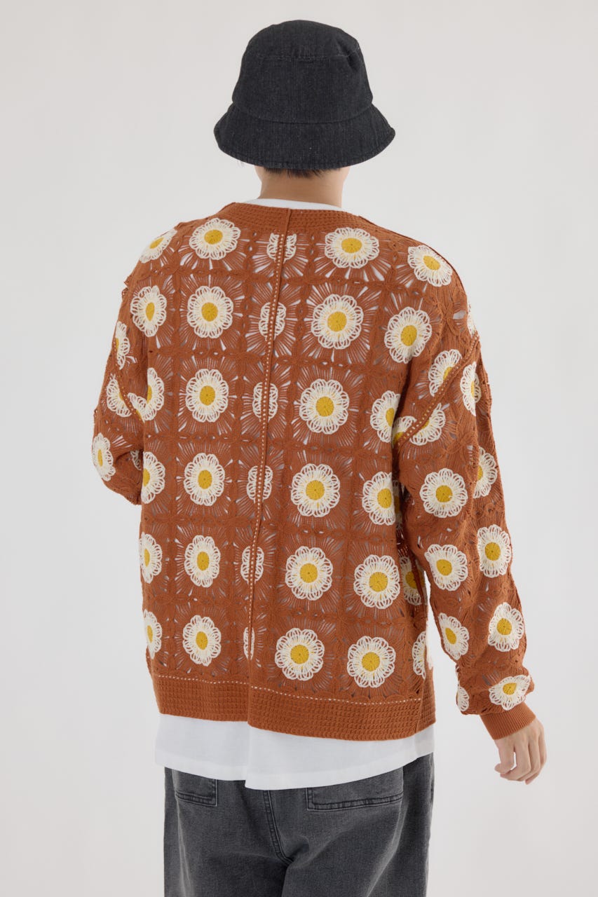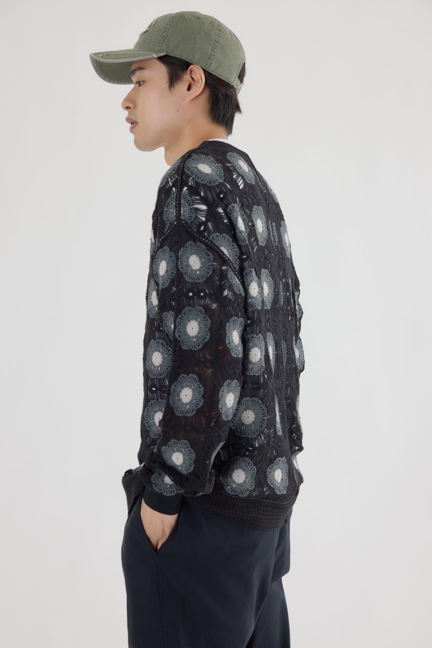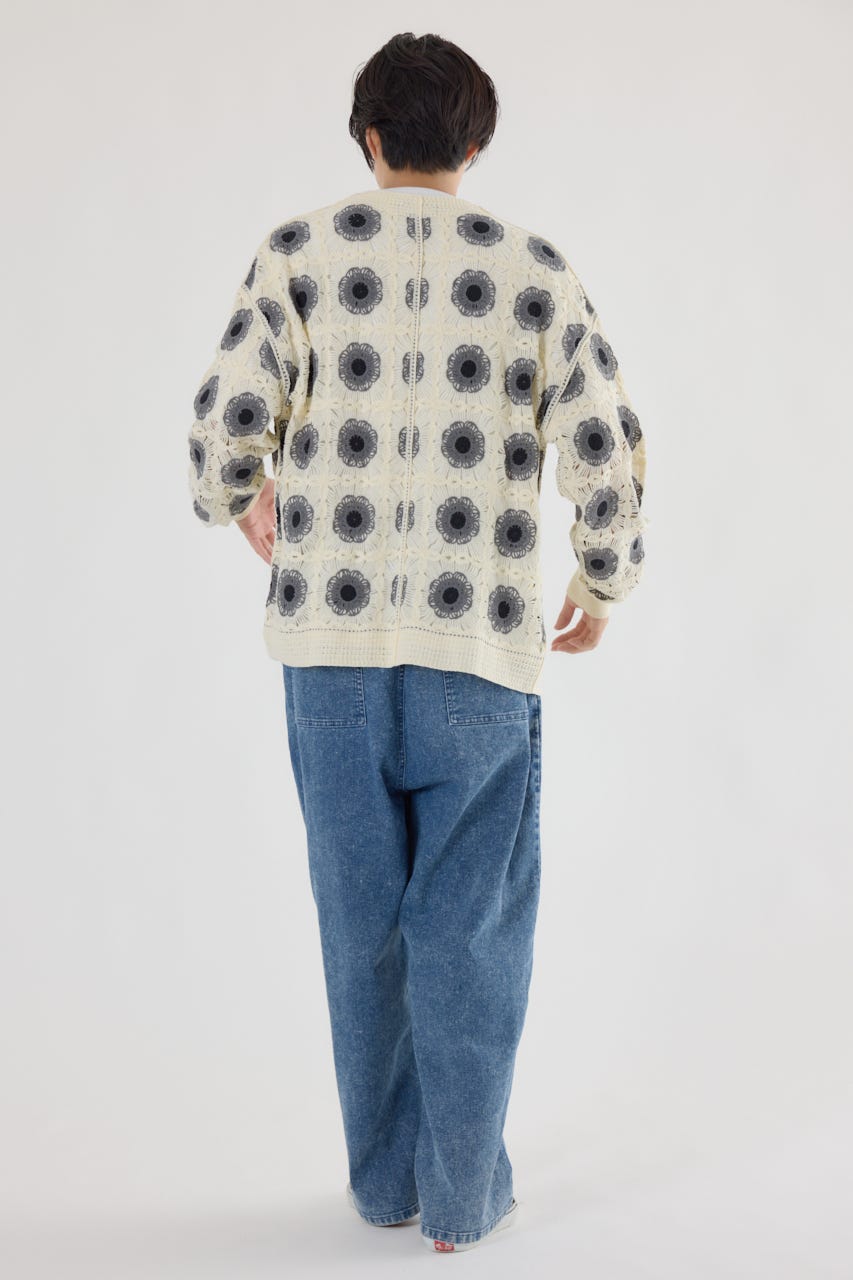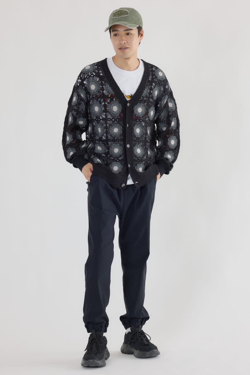 カギ編みを駆使して編まれた透け感がトレンドのニットカーディガン。