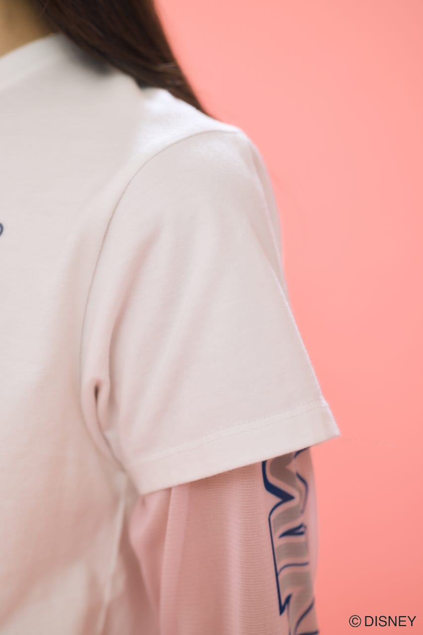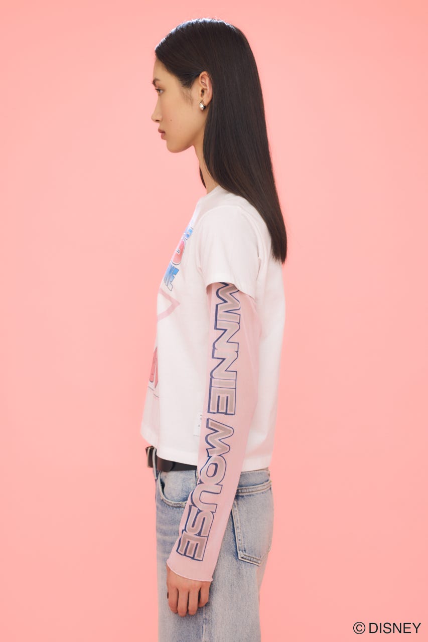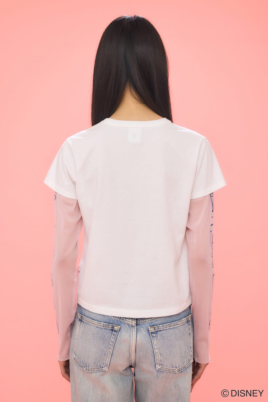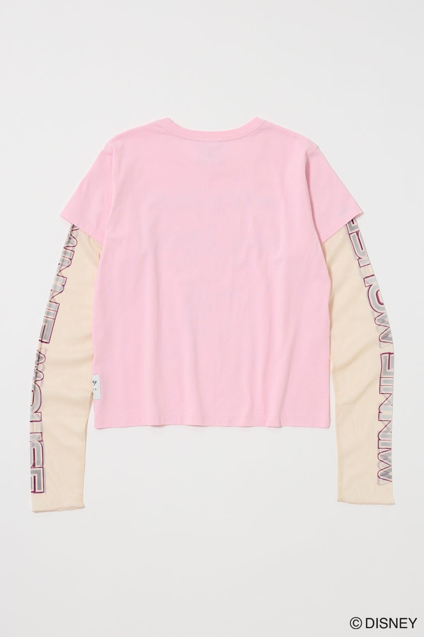 アイドルのミニー単体のレイヤード風ロンTは鮮やかなグラデーションのロゴにオーロラカラーのラインストーンで華やかに。