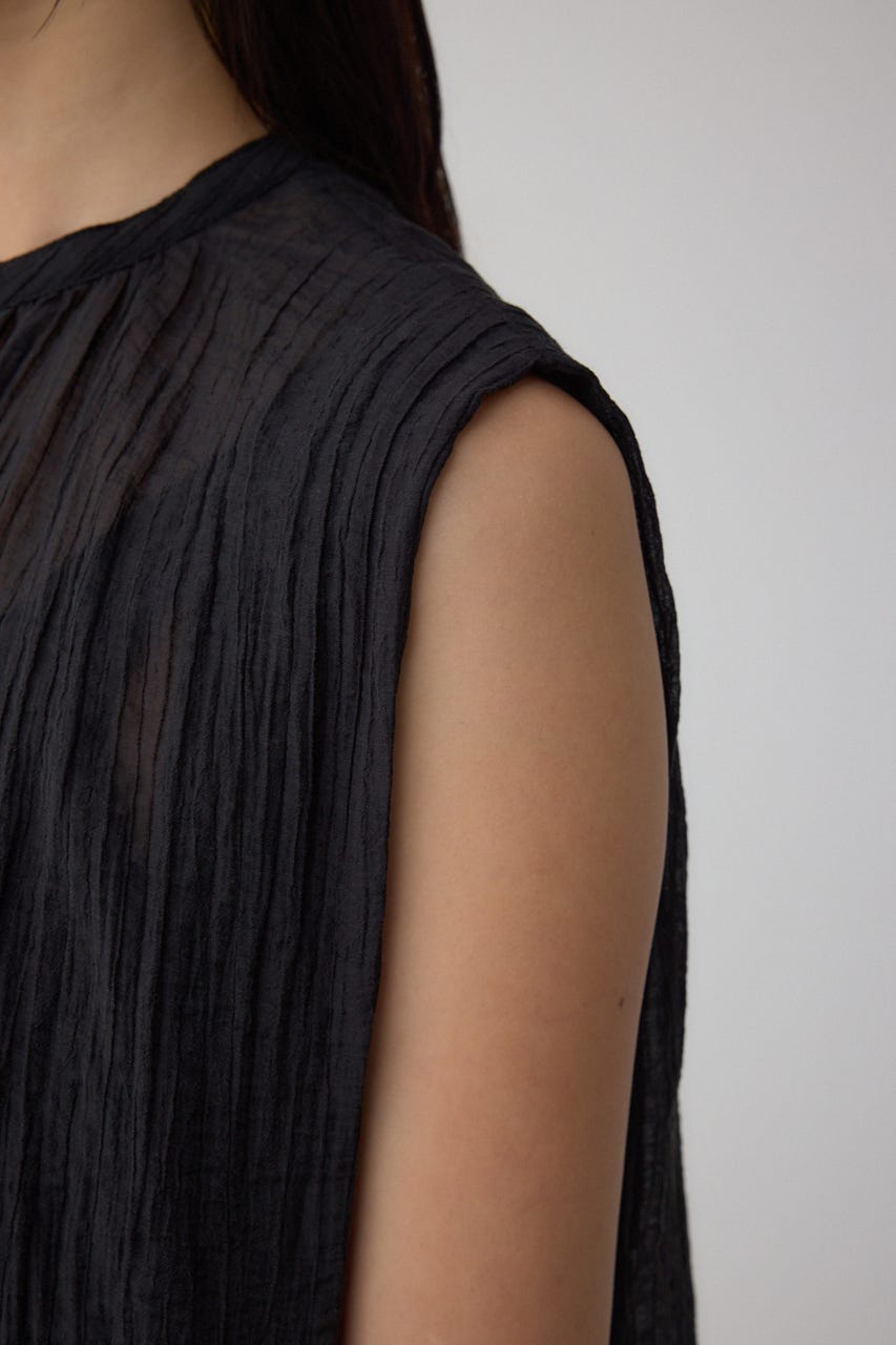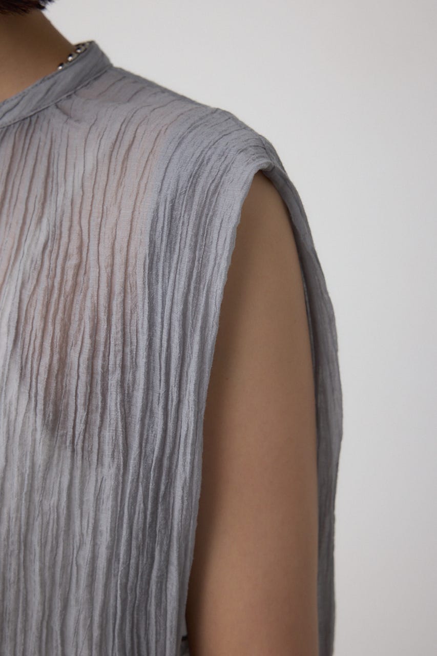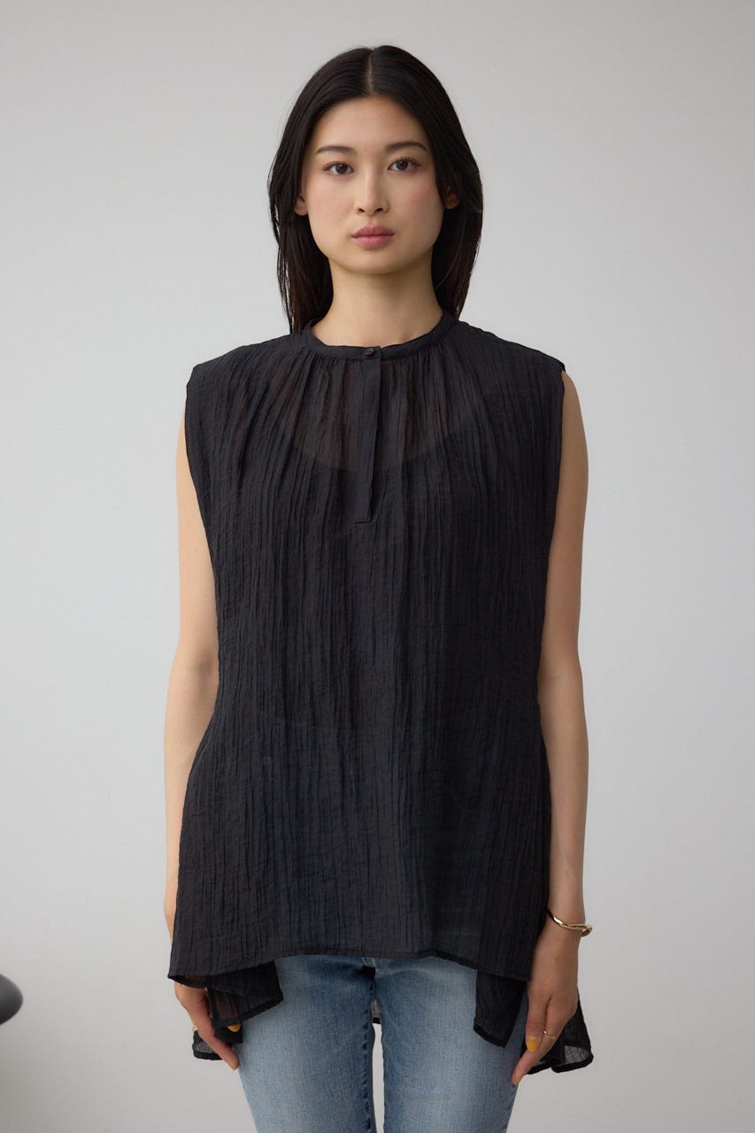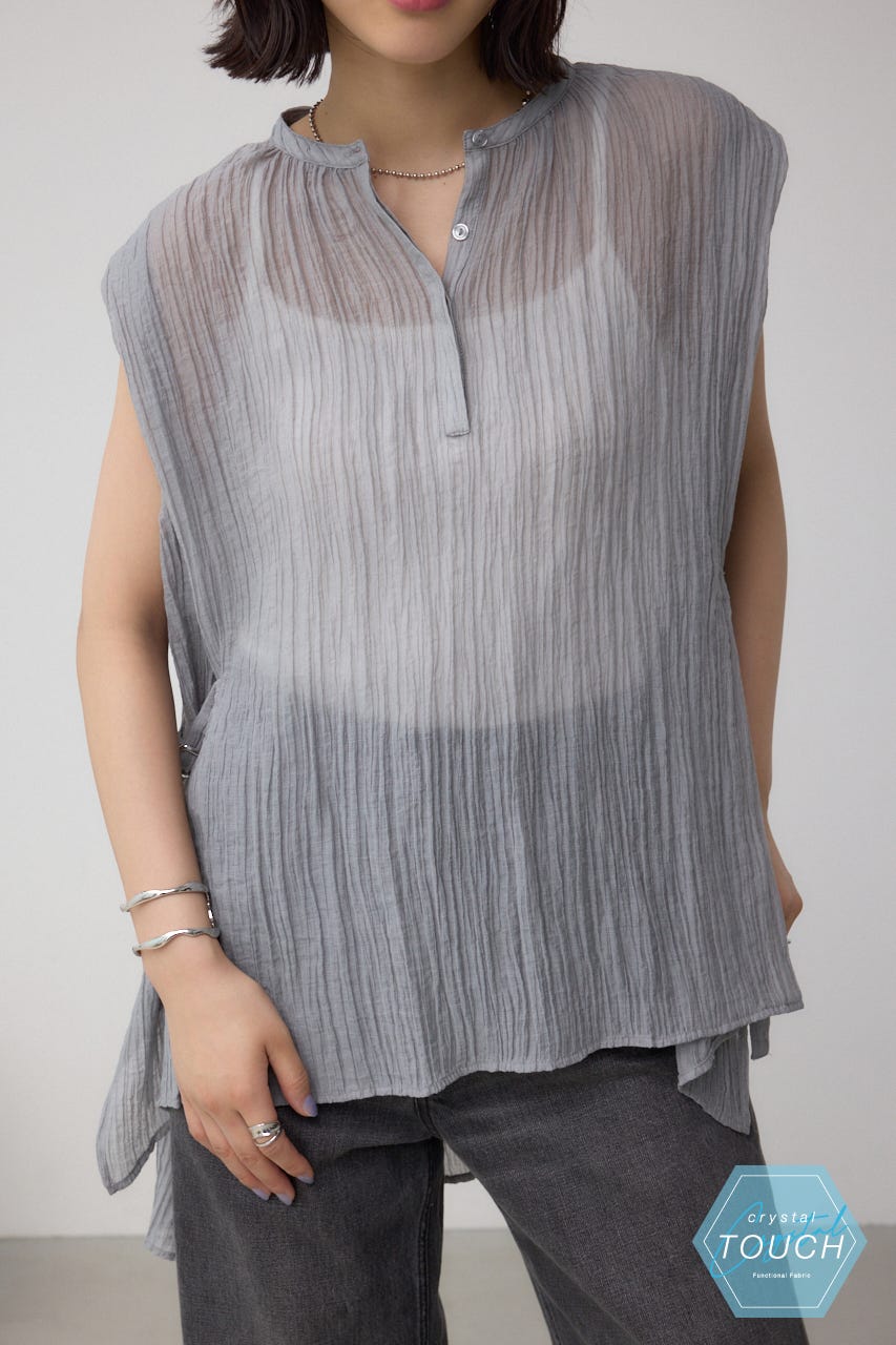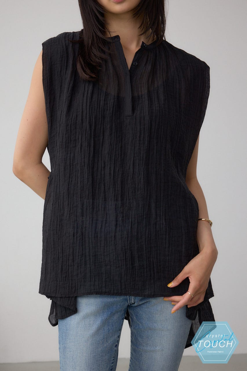 シアー感が少しある接触冷感機能素材を使用したノースリーブブラウス。