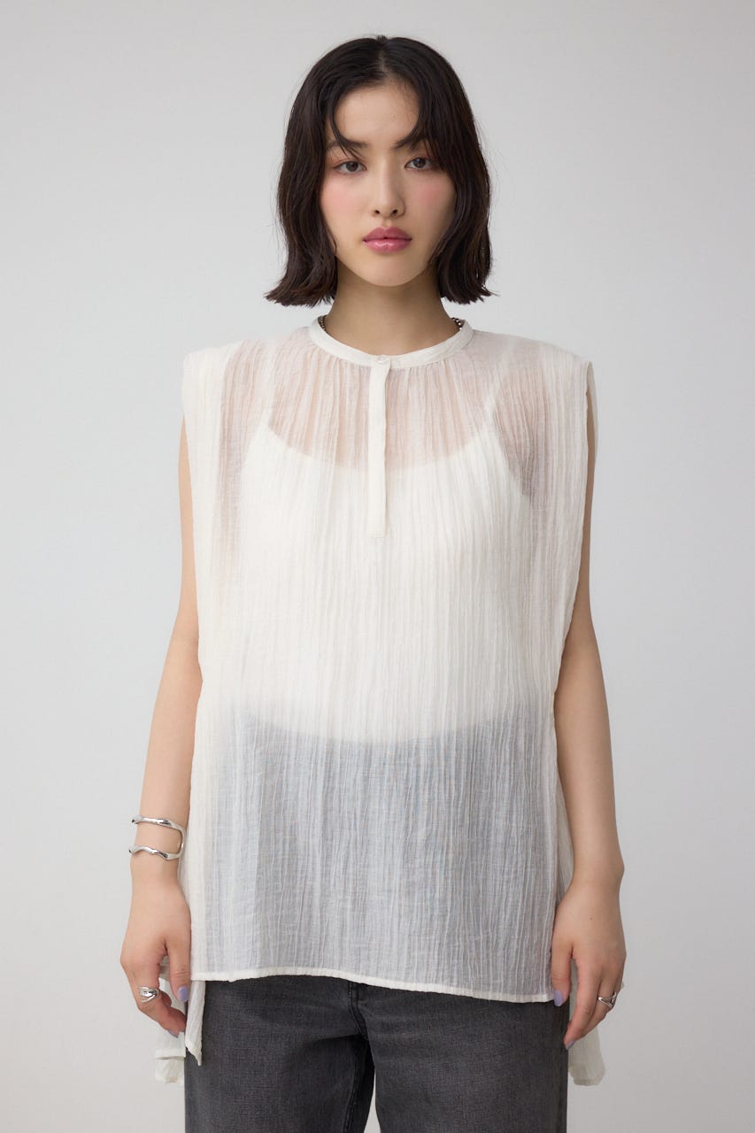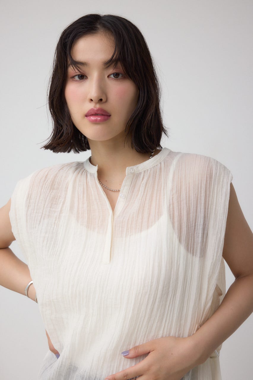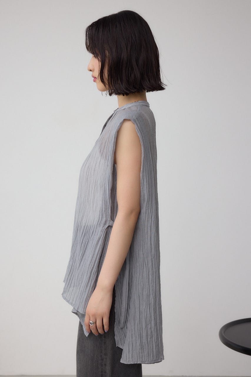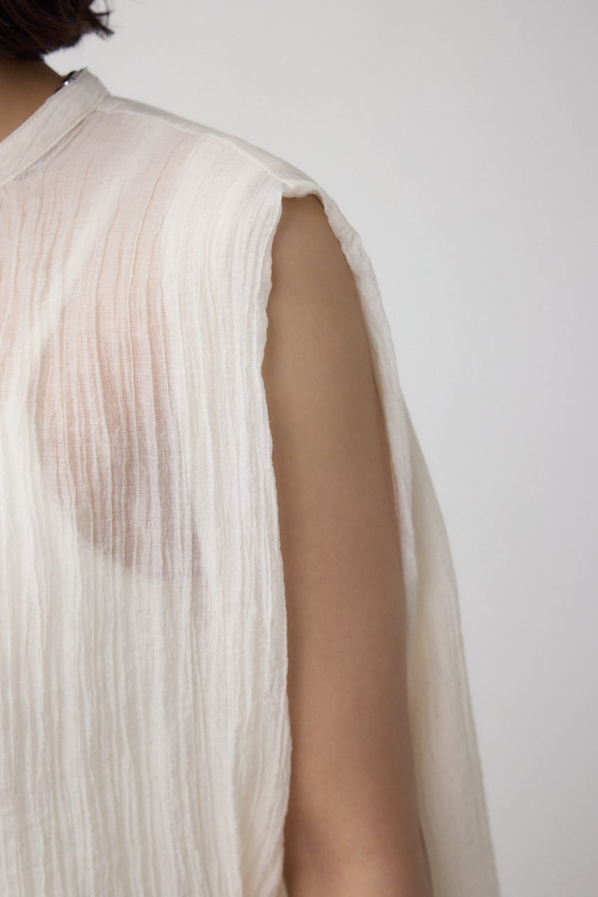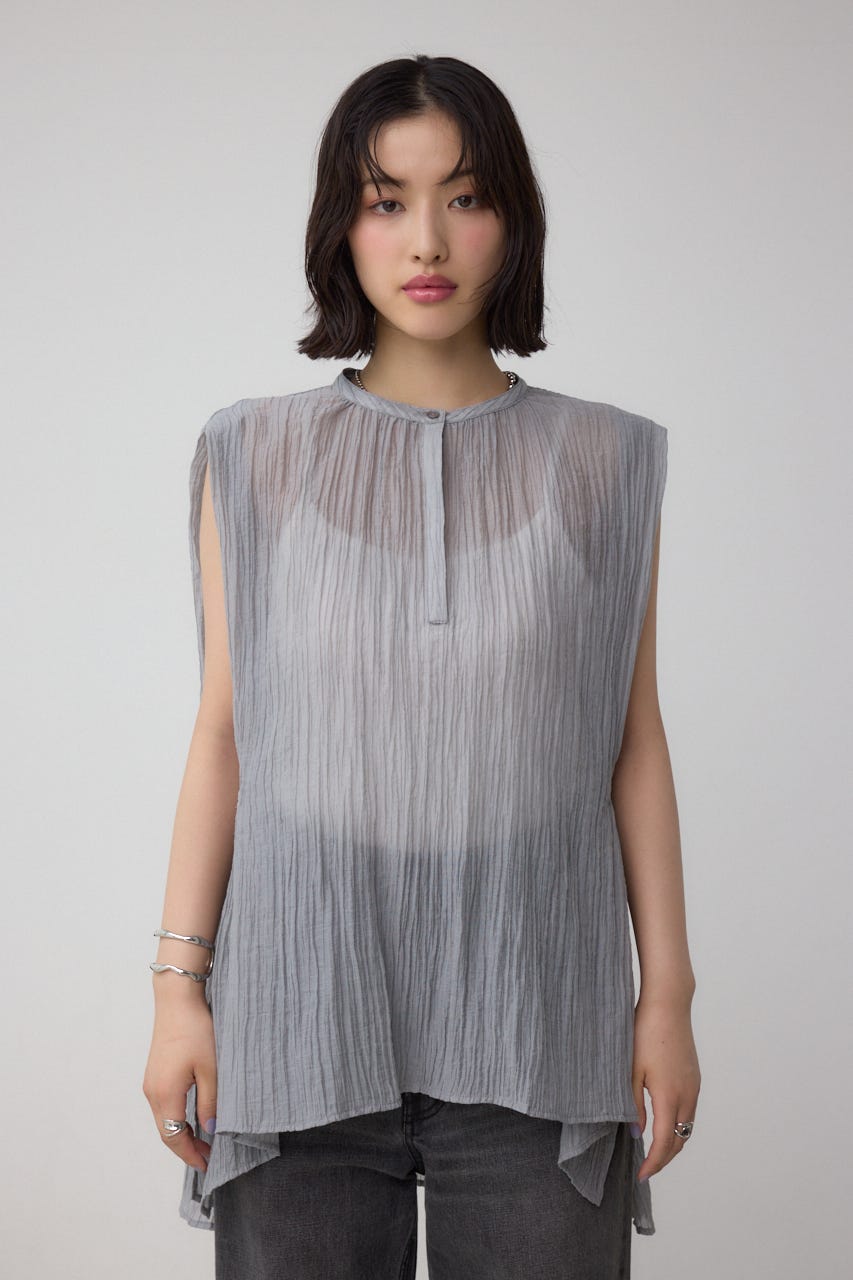 シアー感が少しある接触冷感機能素材を使用したノースリーブブラウス。