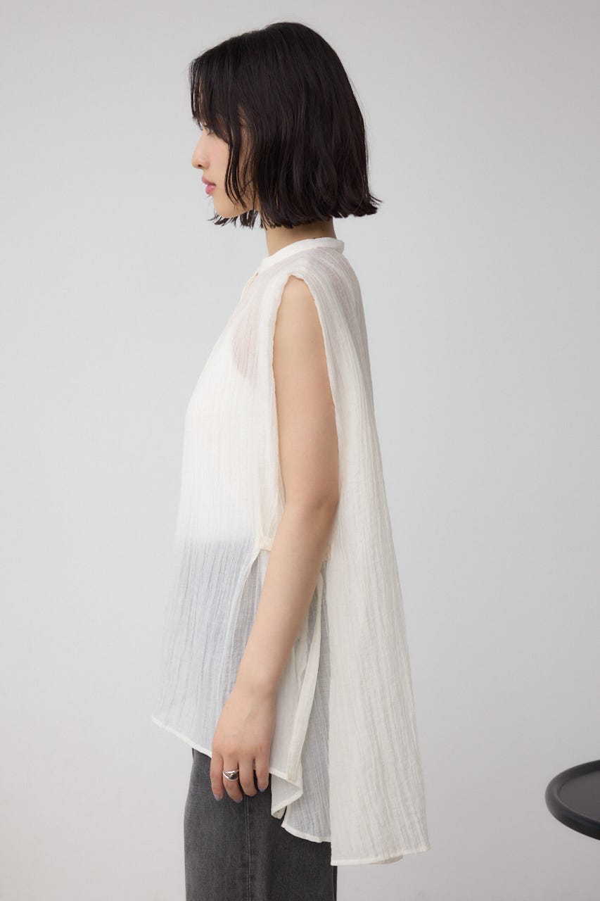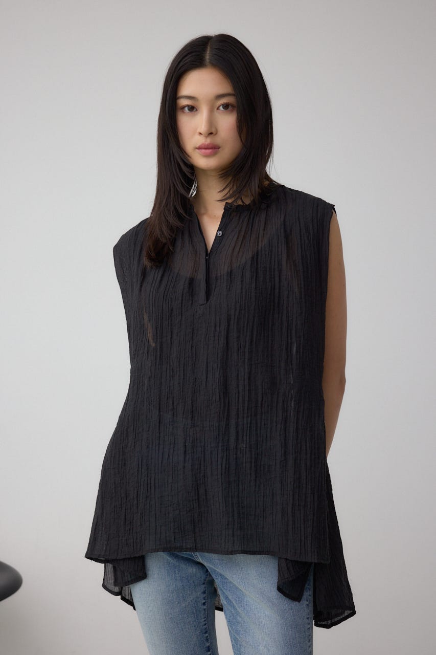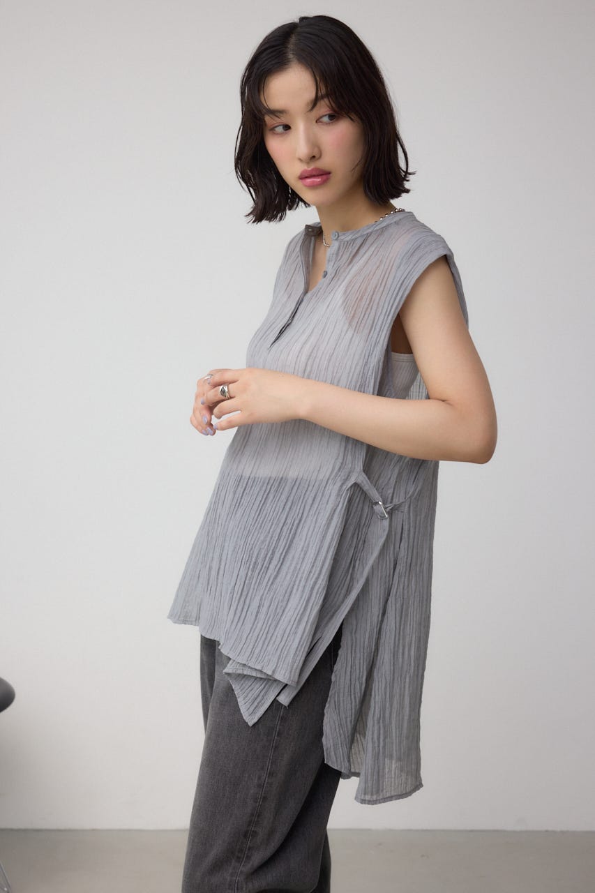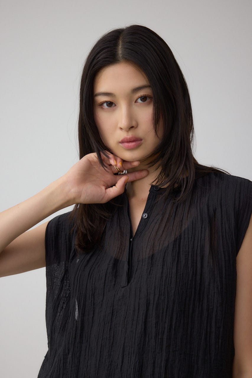 シアー感が少しある接触冷感機能素材を使用したノースリーブブラウス。