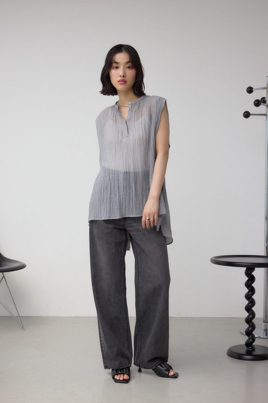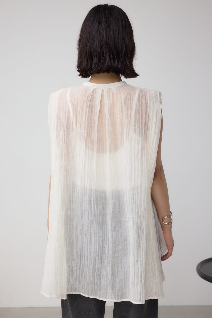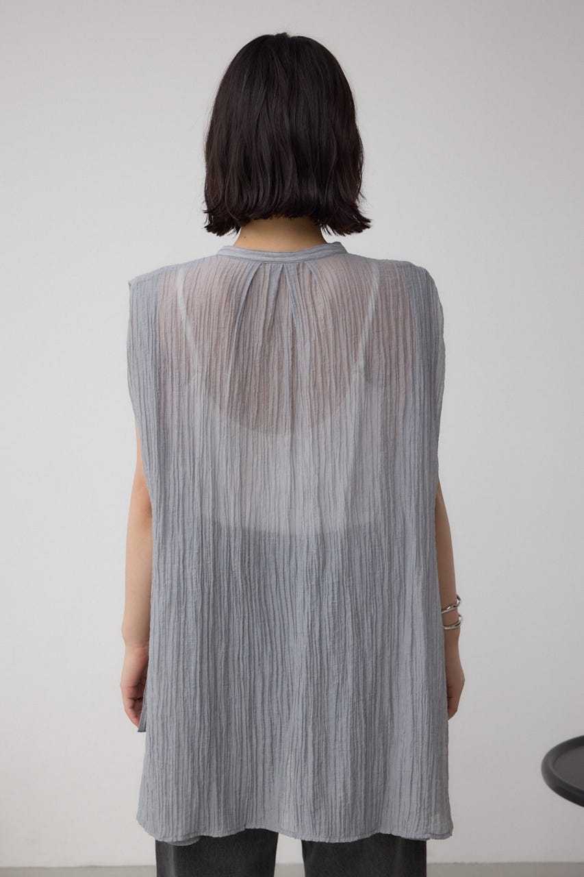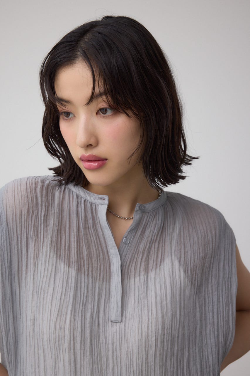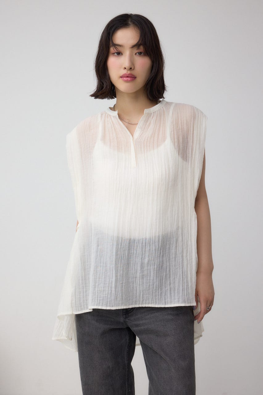 シアー感が少しある接触冷感機能素材を使用したノースリーブブラウス。