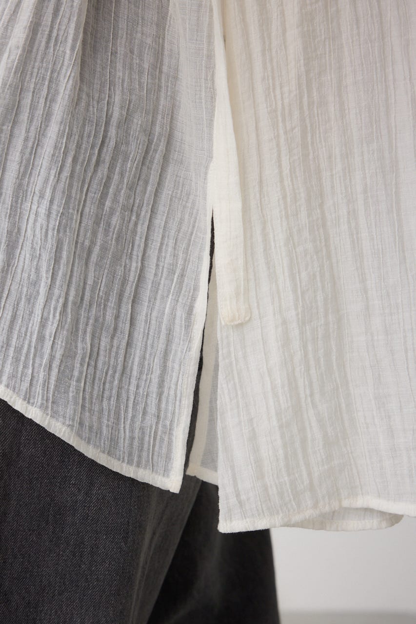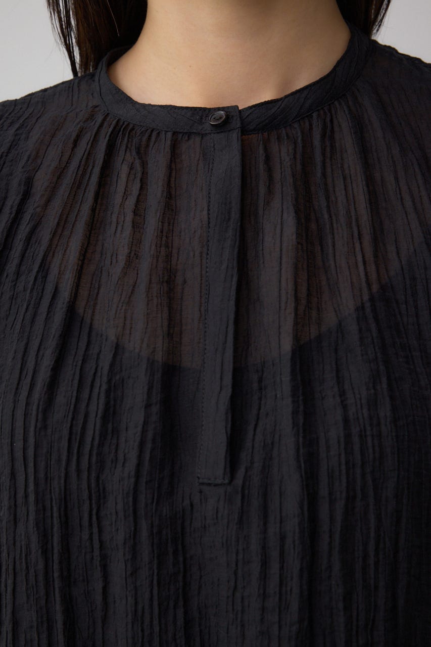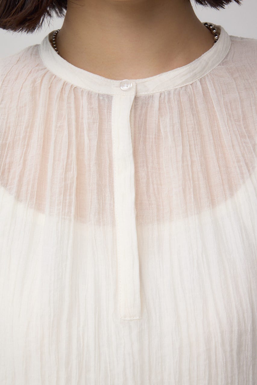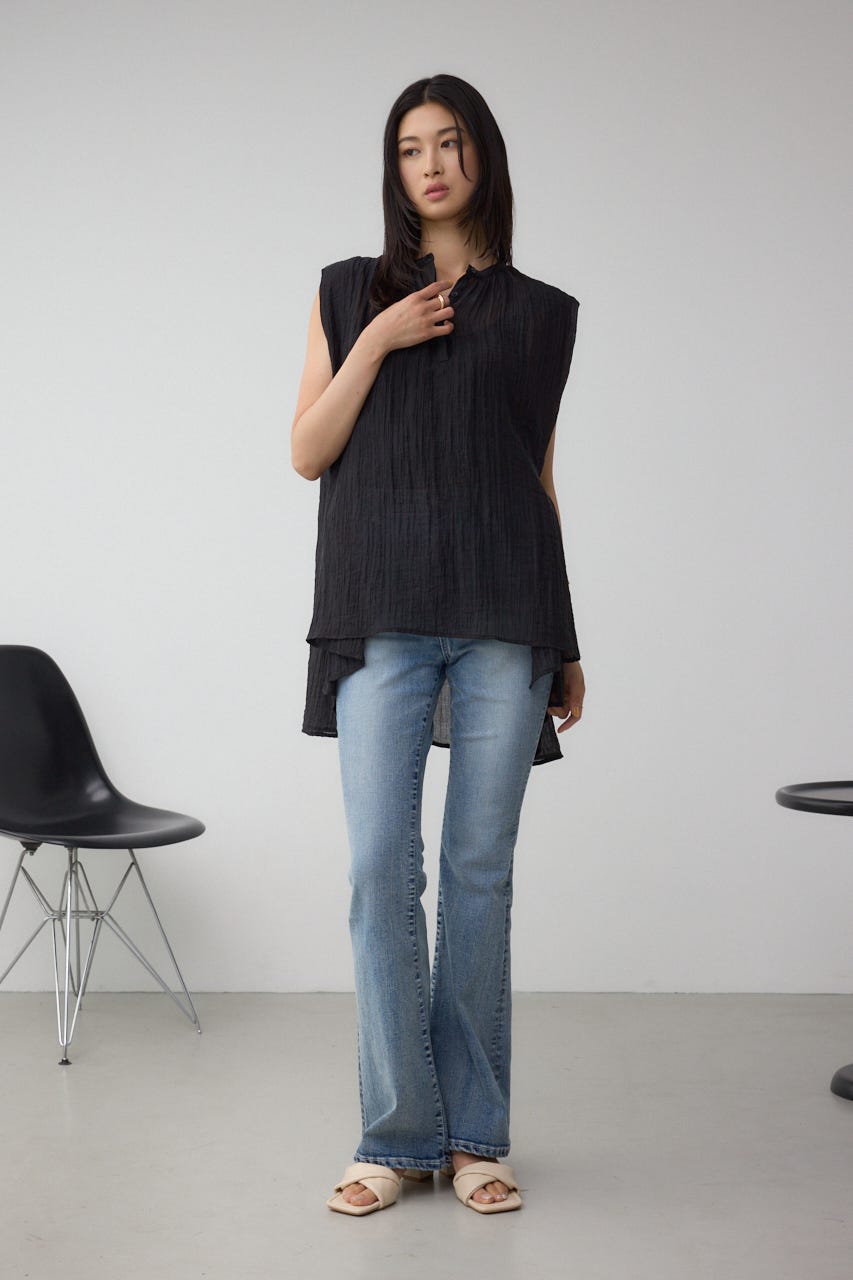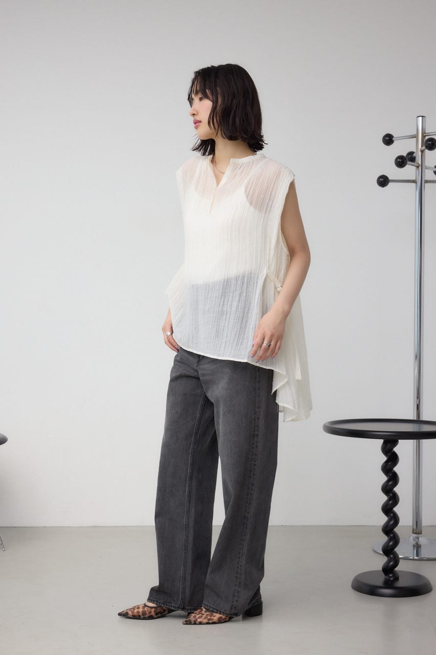 シアー感が少しある接触冷感機能素材を使用したノースリーブブラウス。