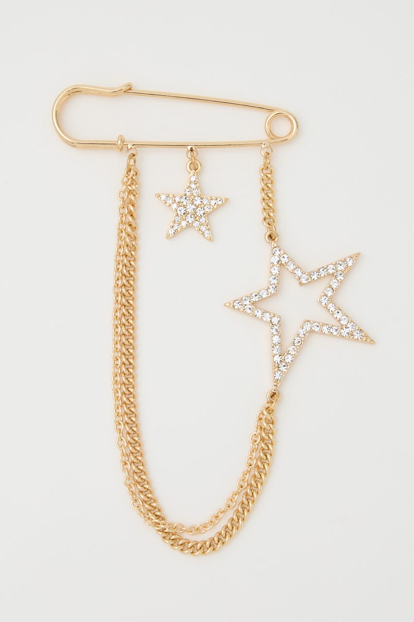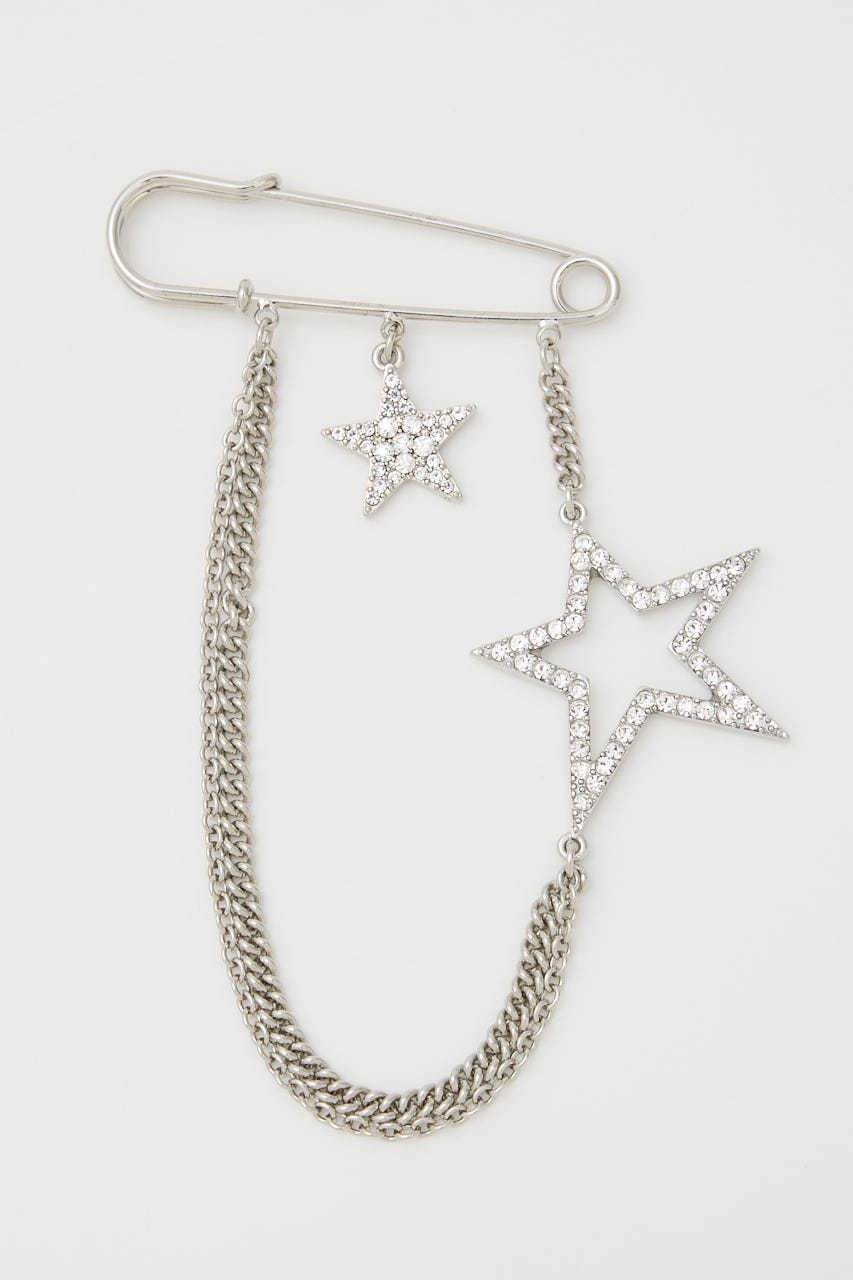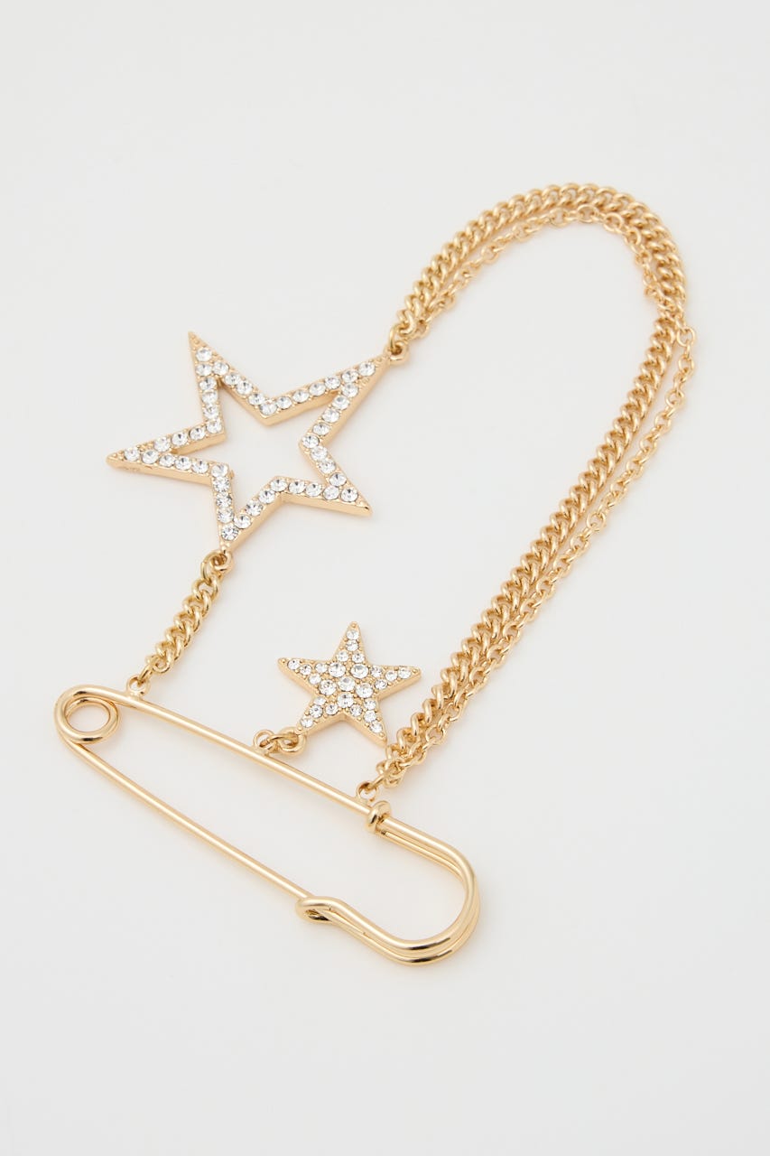 ■POINT:クリアストーンが付いた星形が目を惹くブローチ。