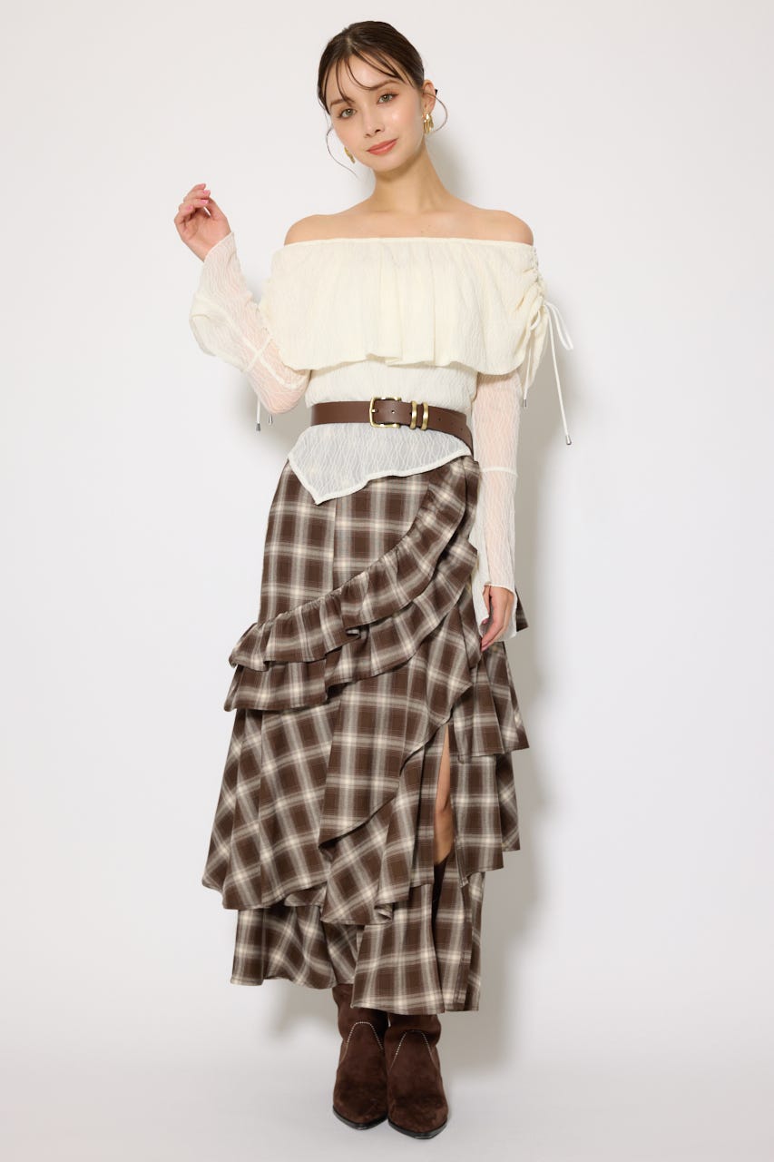 襟ぐりは伸縮性がありオフショルもピッタリとフィットしてくれます。