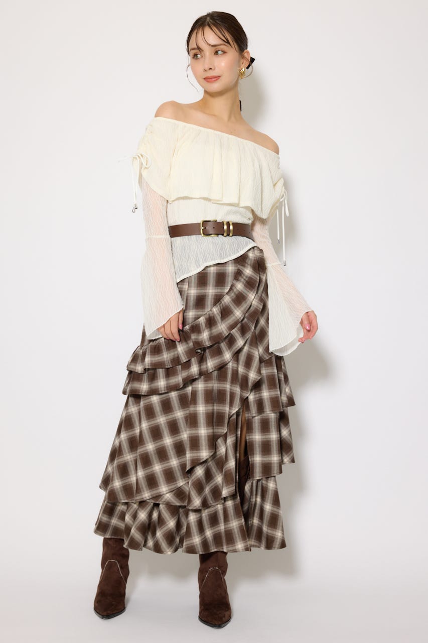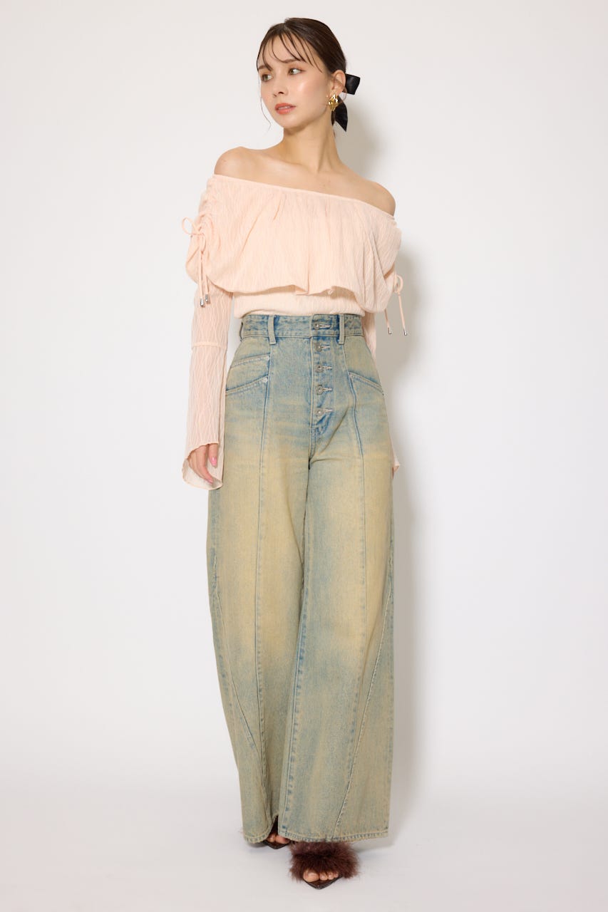 肩にのせて着用もできますし、オフショルにしても綺麗に着用できます。