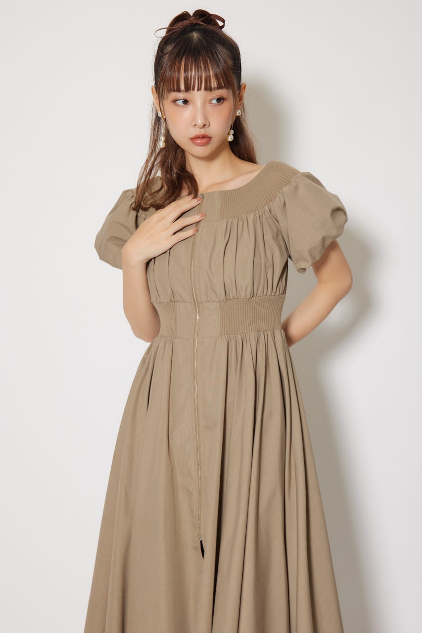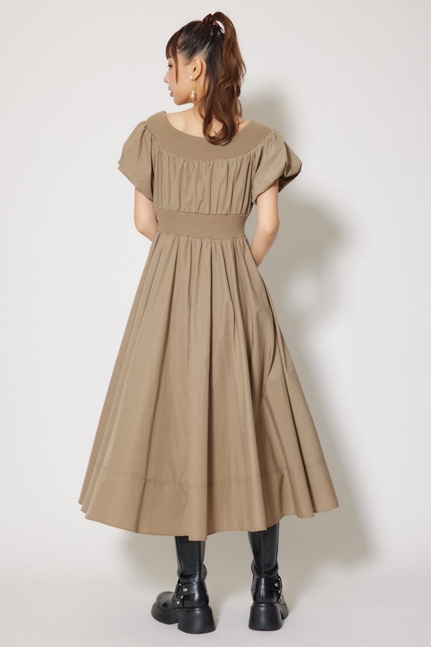 ウエストと肩回りにはニットリブを使用しほどよいフィット感で女性らしいシルエットを作りこみました。