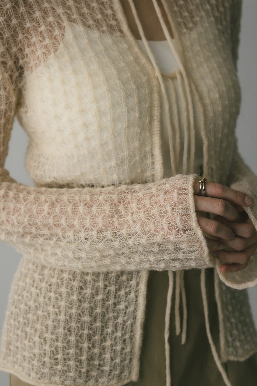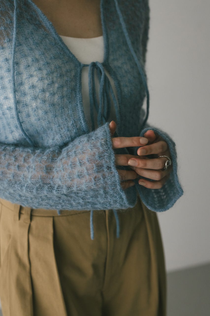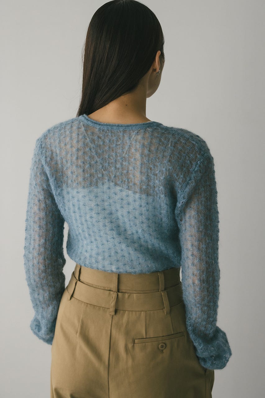 ニュアンス感の出る袖パターンと透け感が上品で目を惹く一枚です。