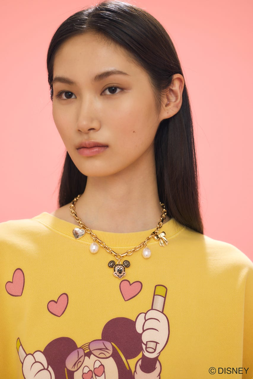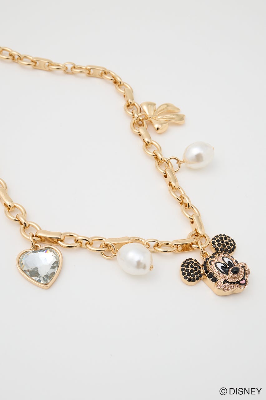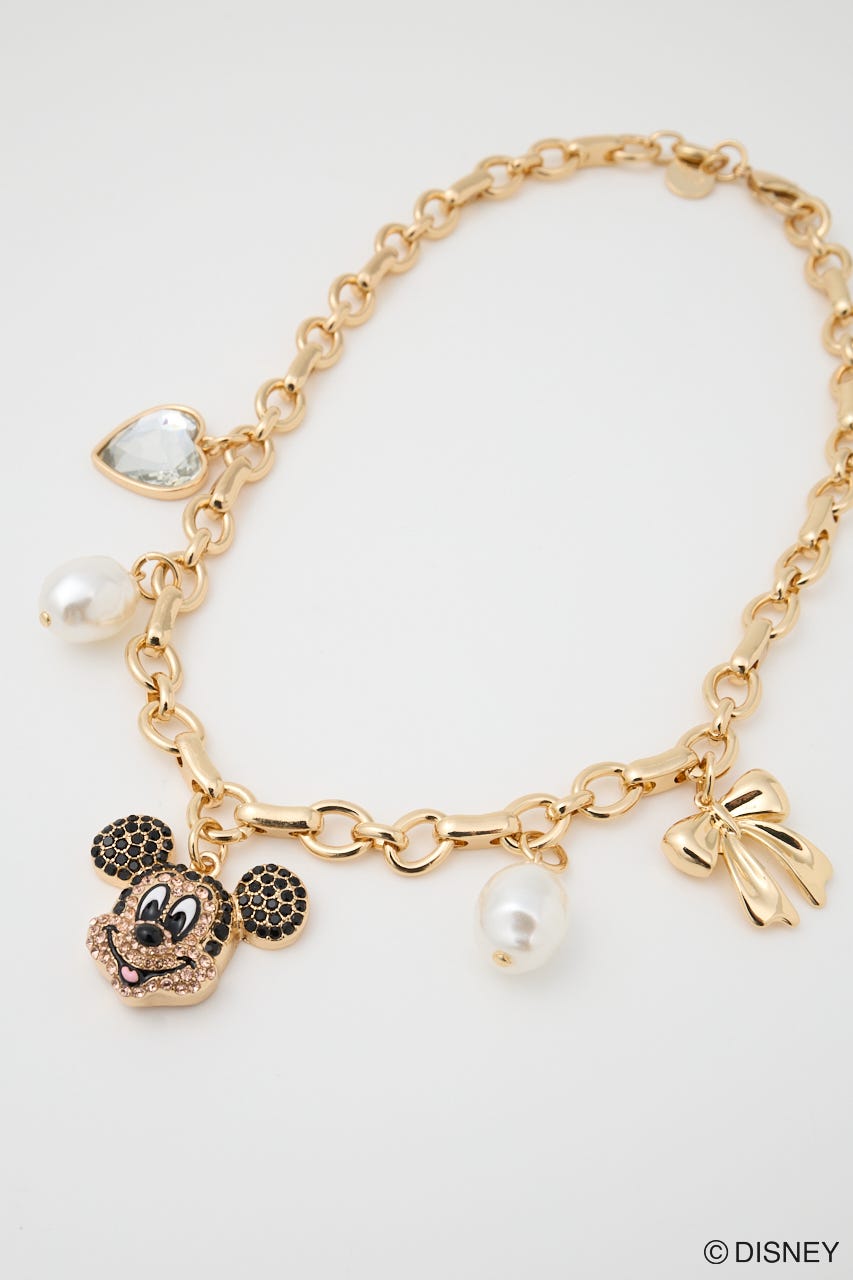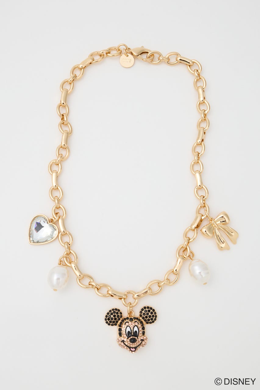 ラインストーンのミッキーと賑やかなチャームがプレイフルなネックレス。