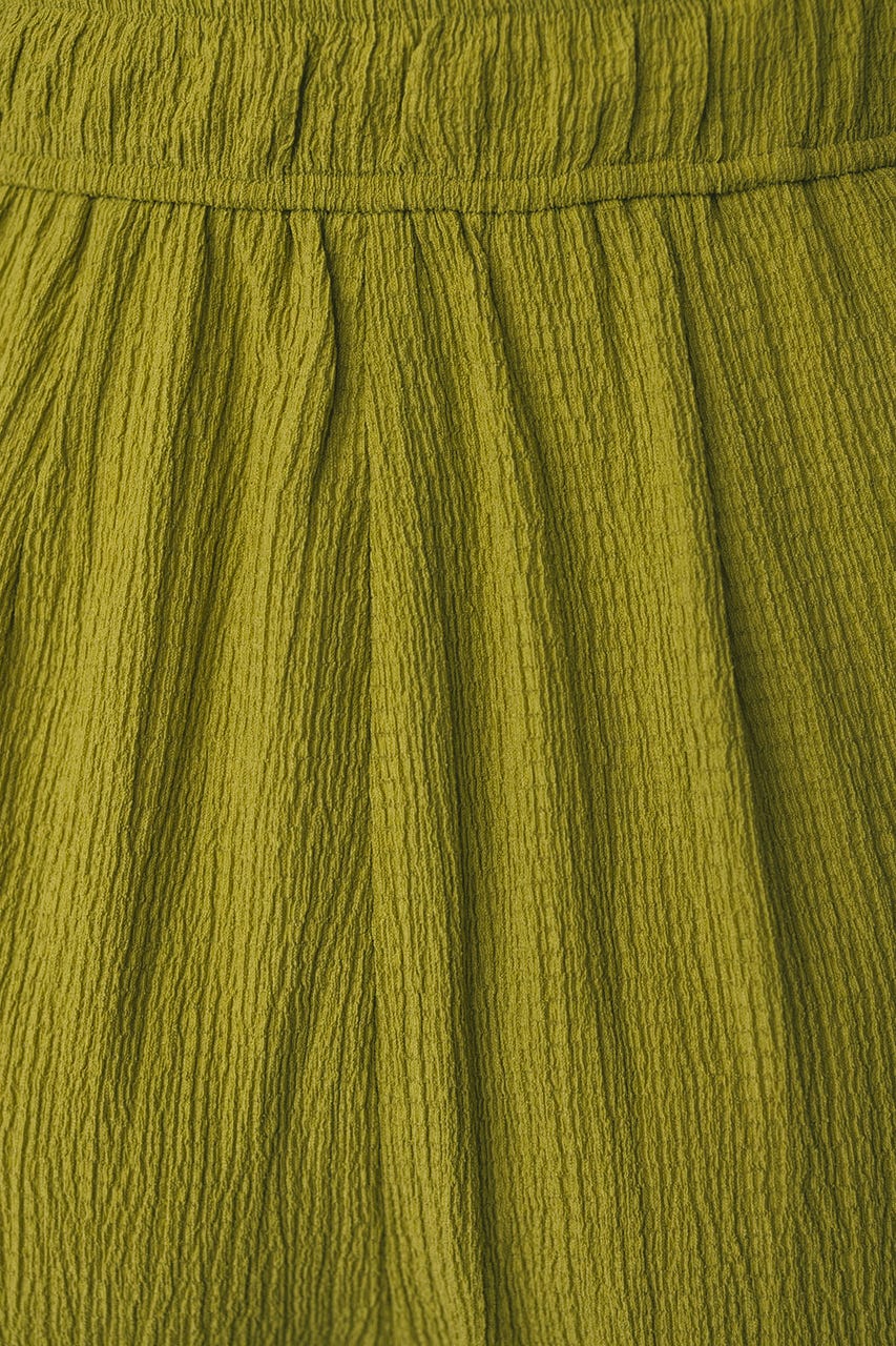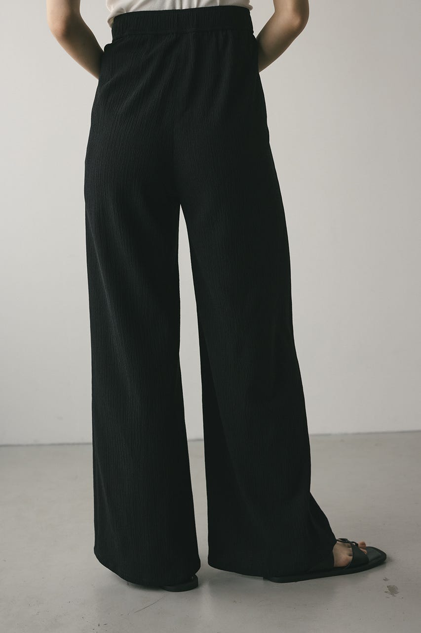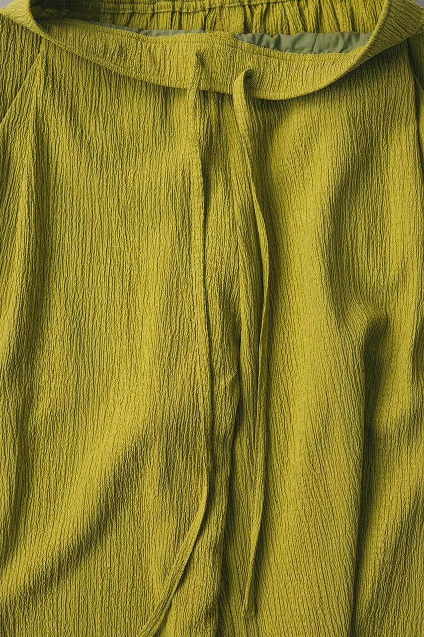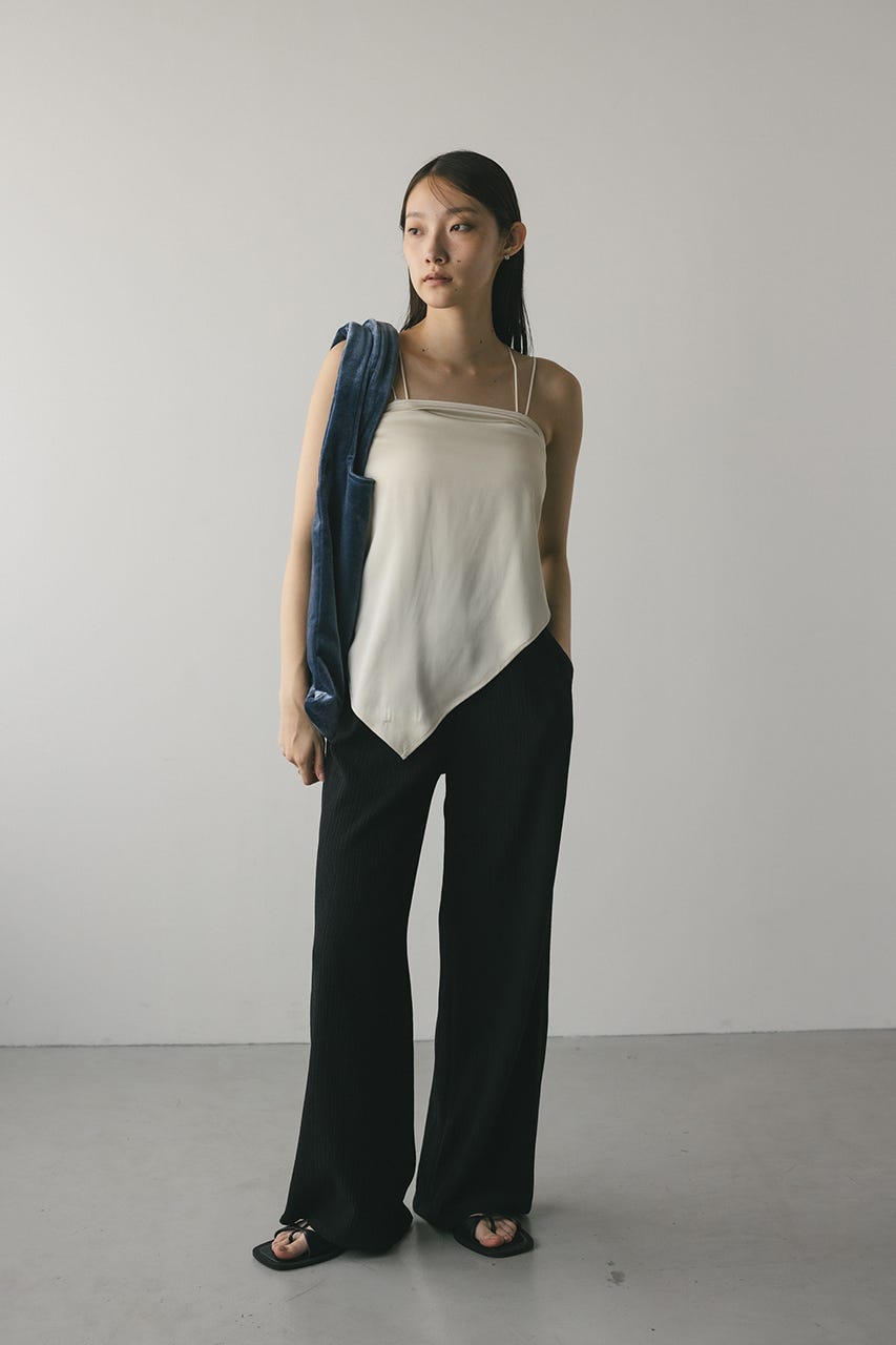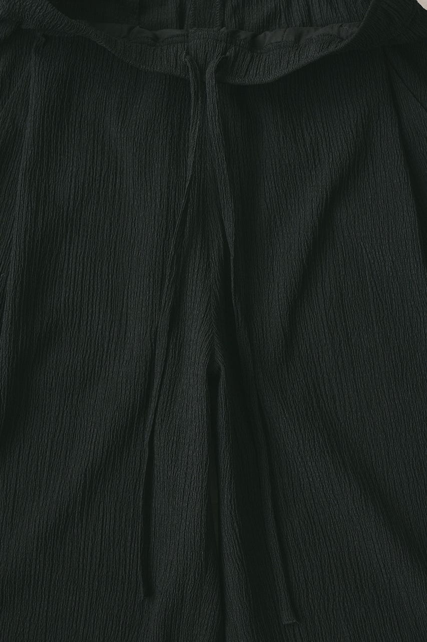 細かいシャーリング加工を施したストレッチ素材を使用したドライタッチなワイドパンツ。