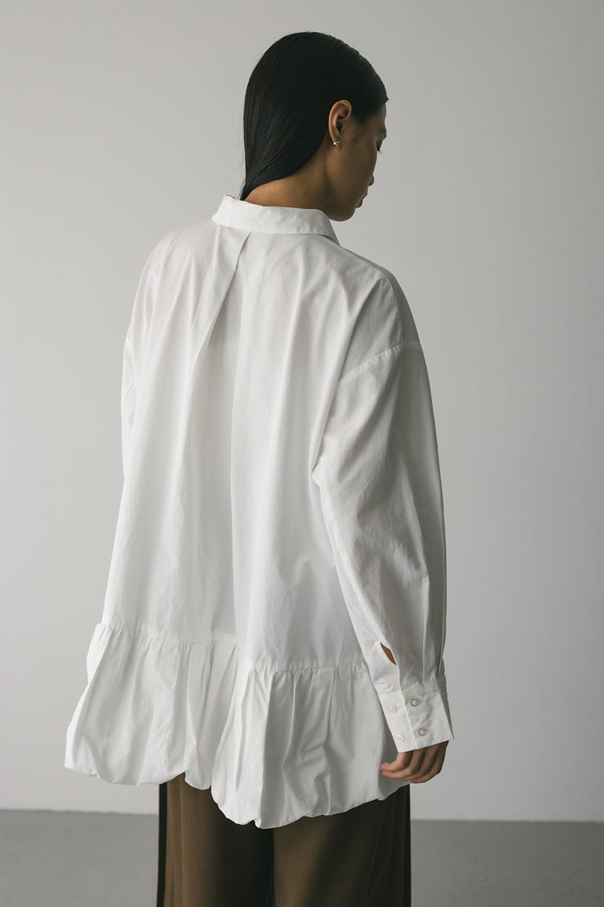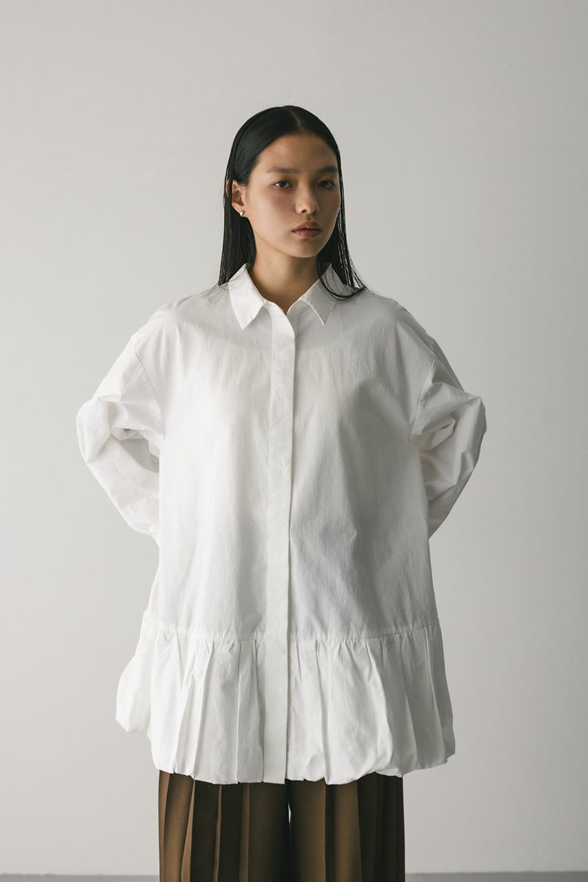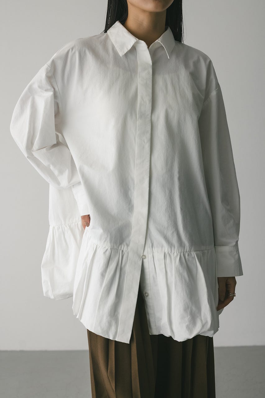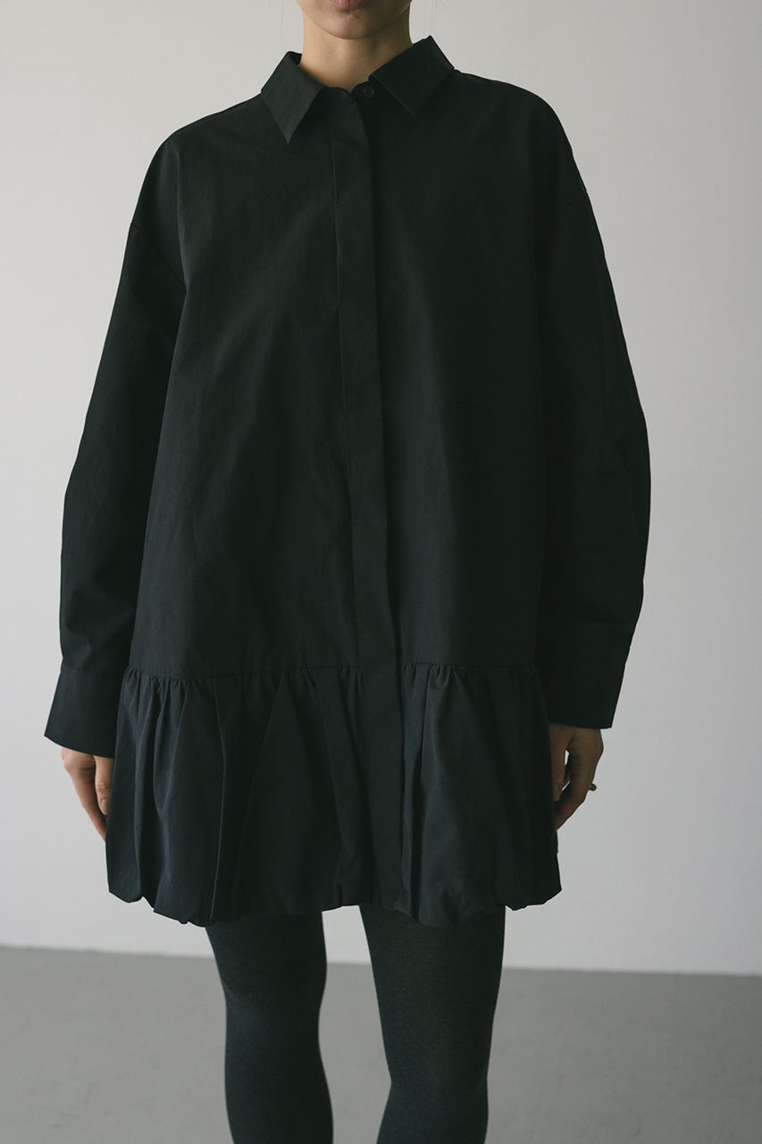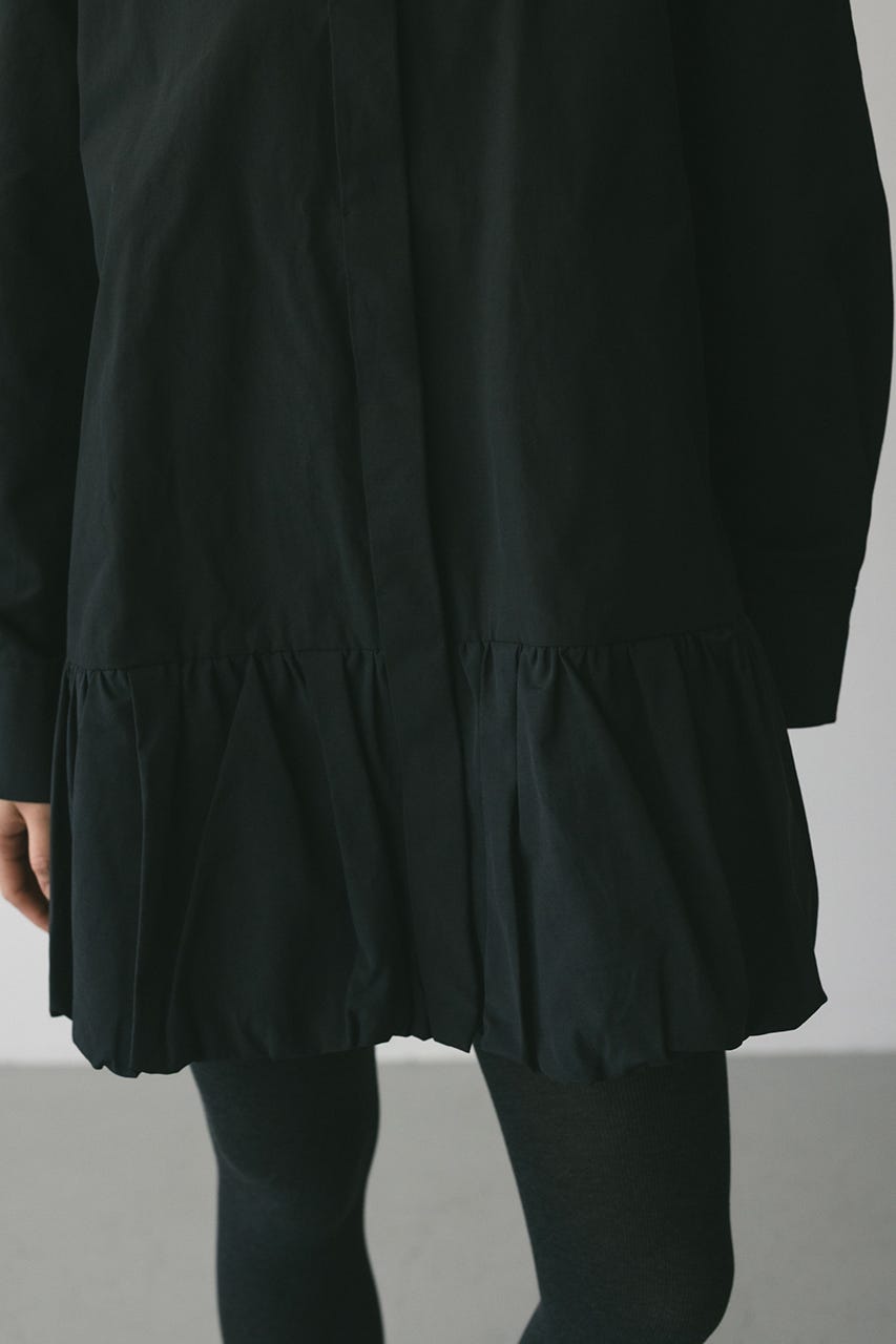バルーンヘムがポイントのトレンド感あふれるシャツワンピース。