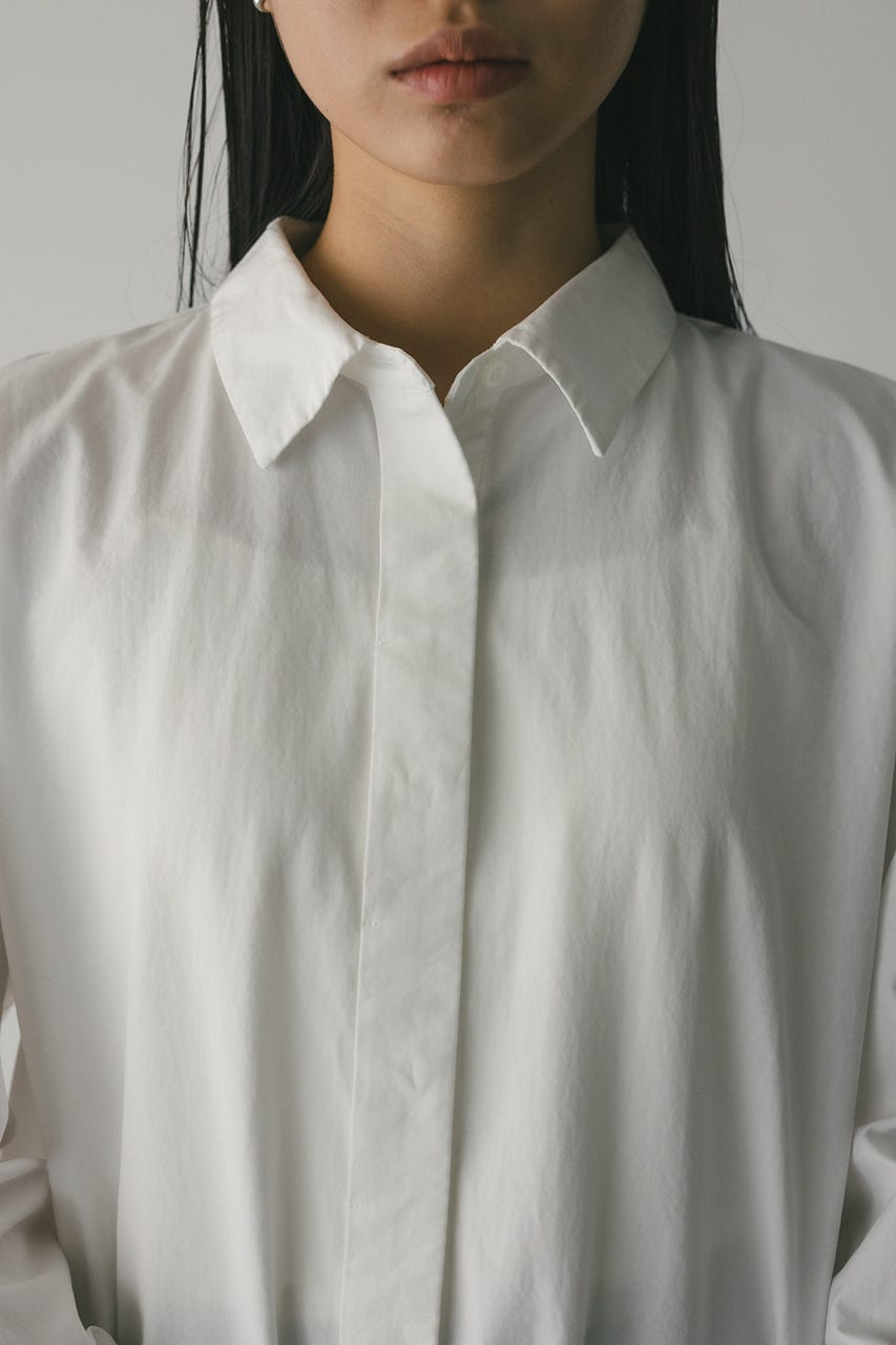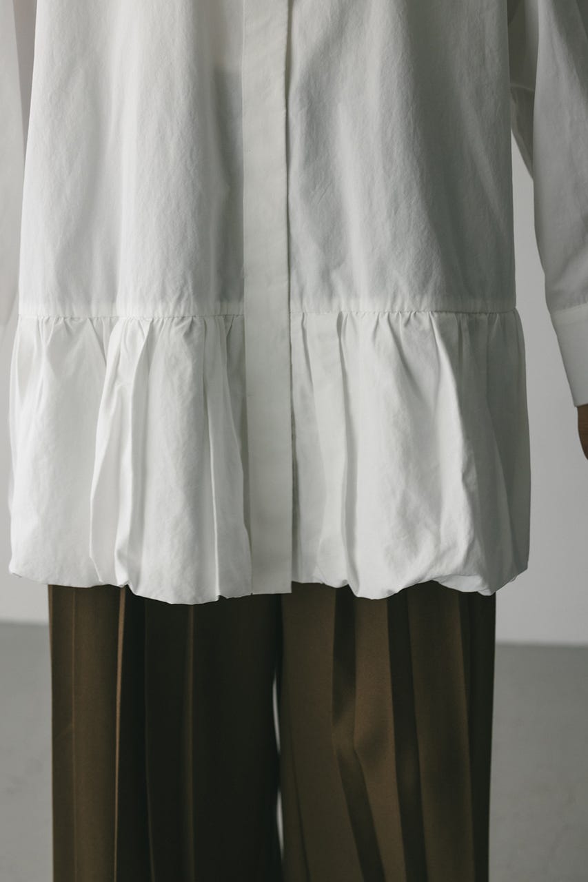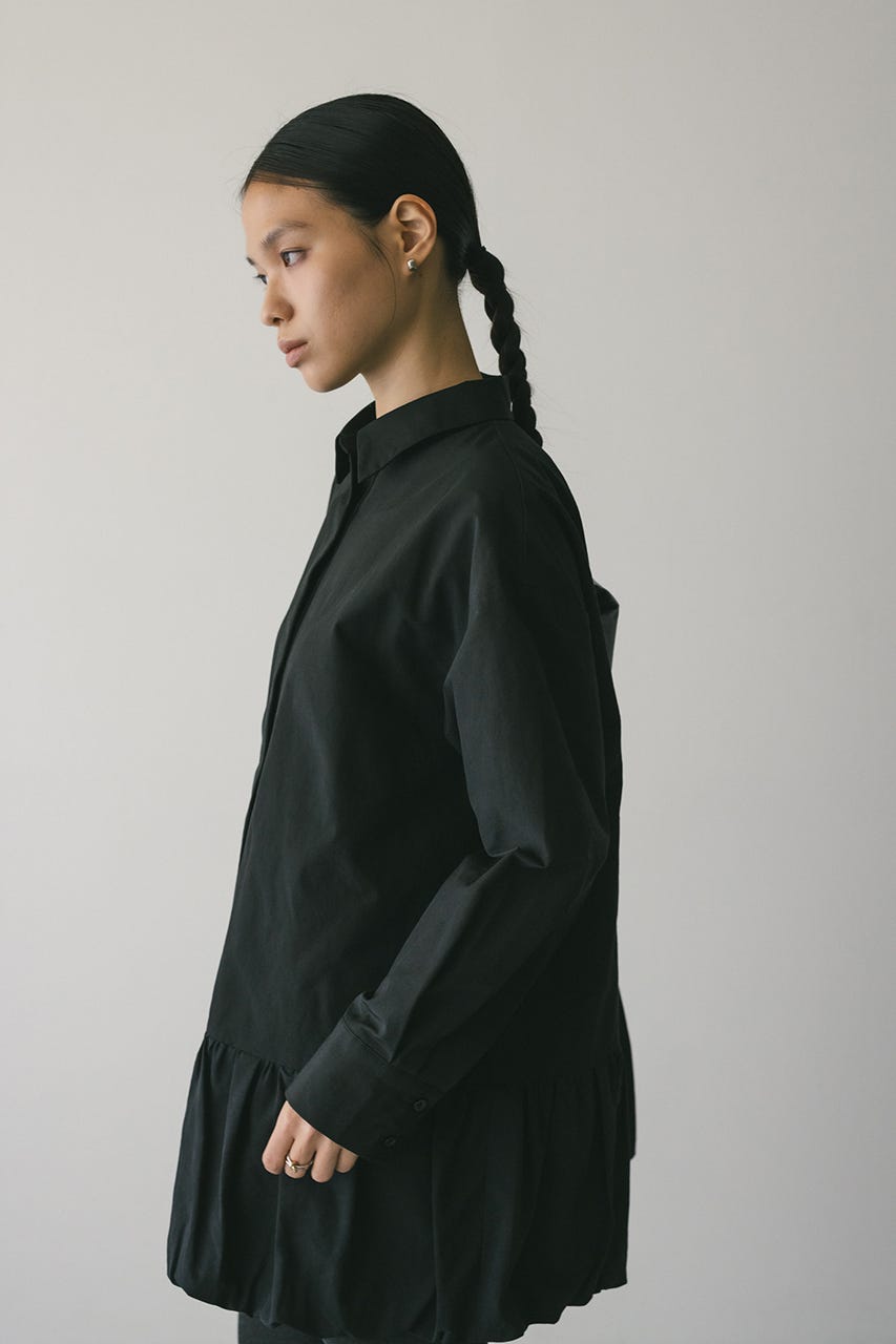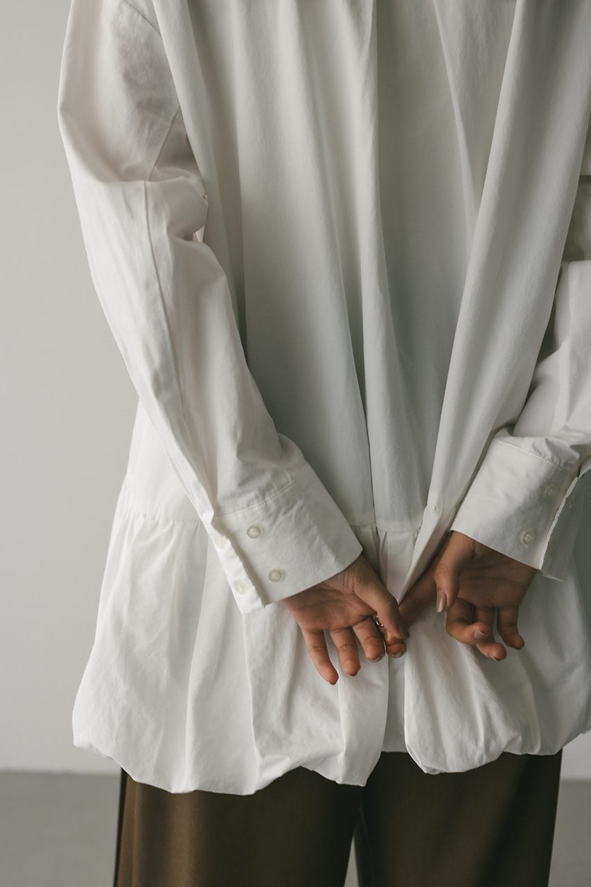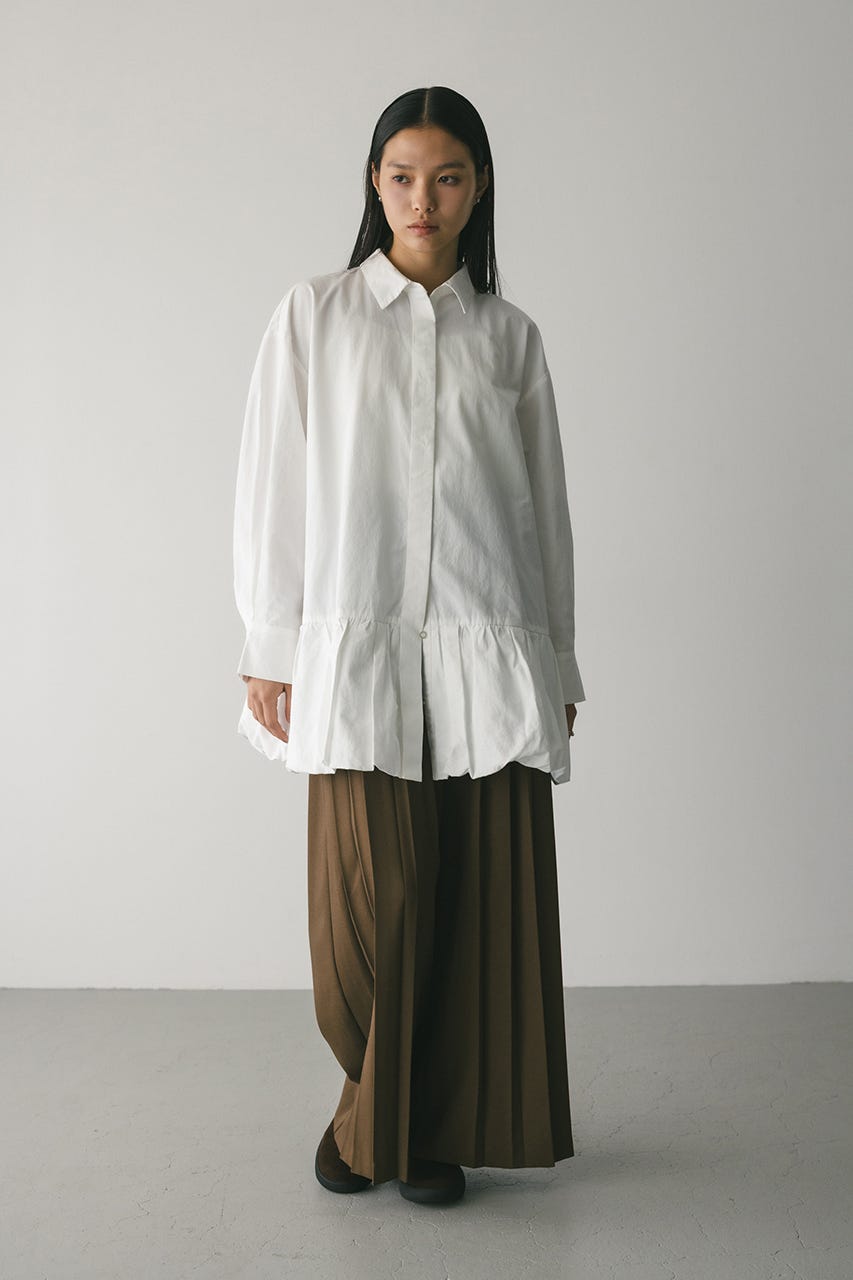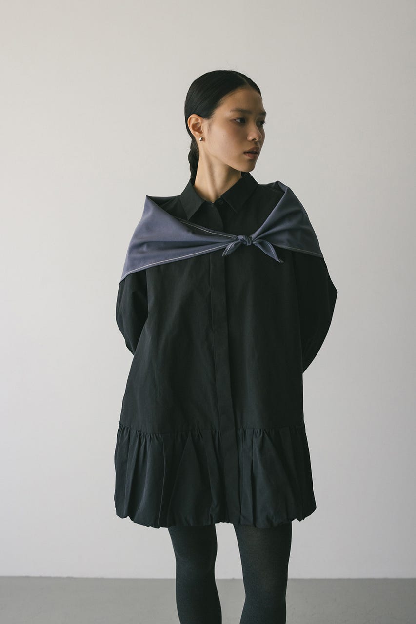 バルーンヘムがポイントのトレンド感あふれるシャツワンピース。