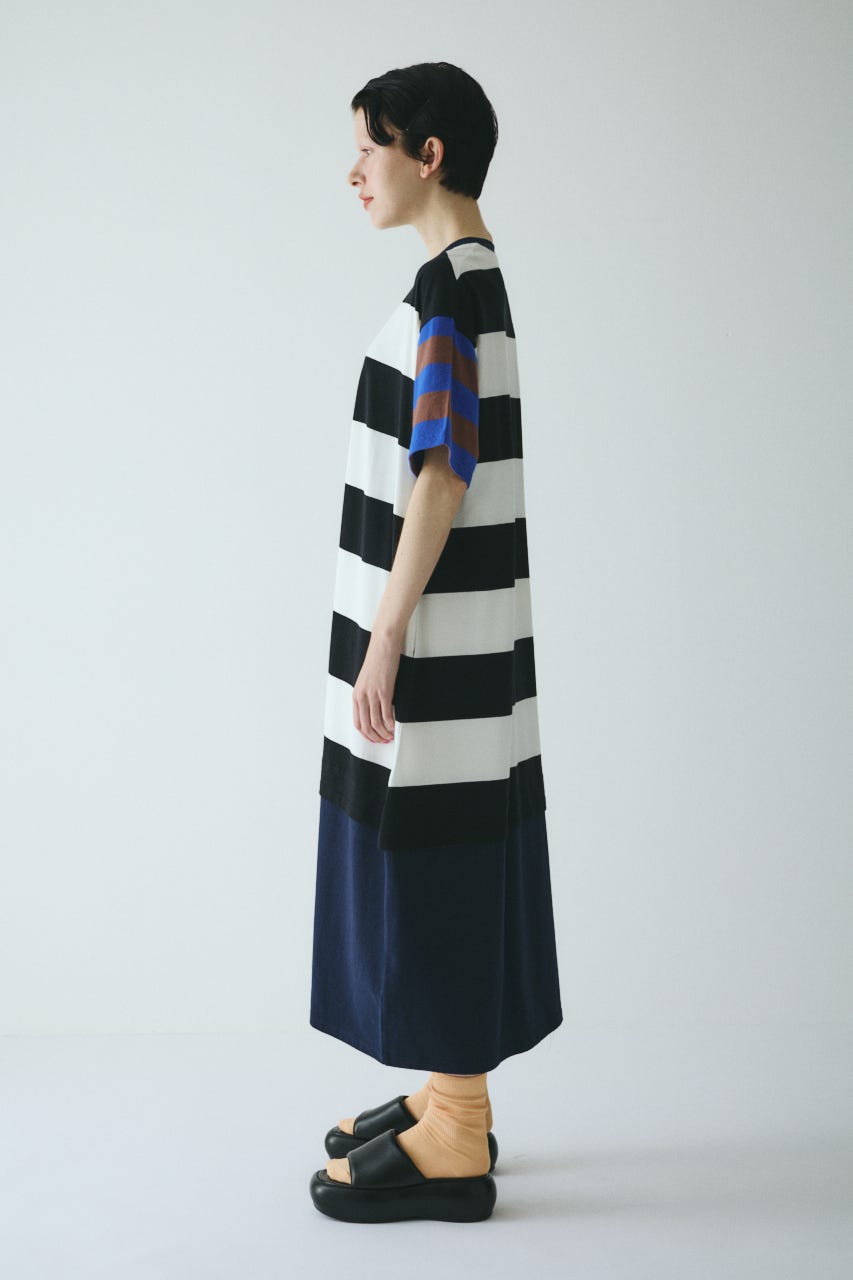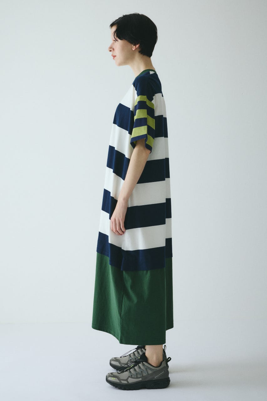 太めのボーダーで1枚で決まるのも嬉しいポイント。