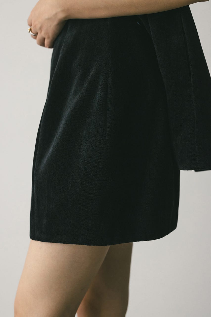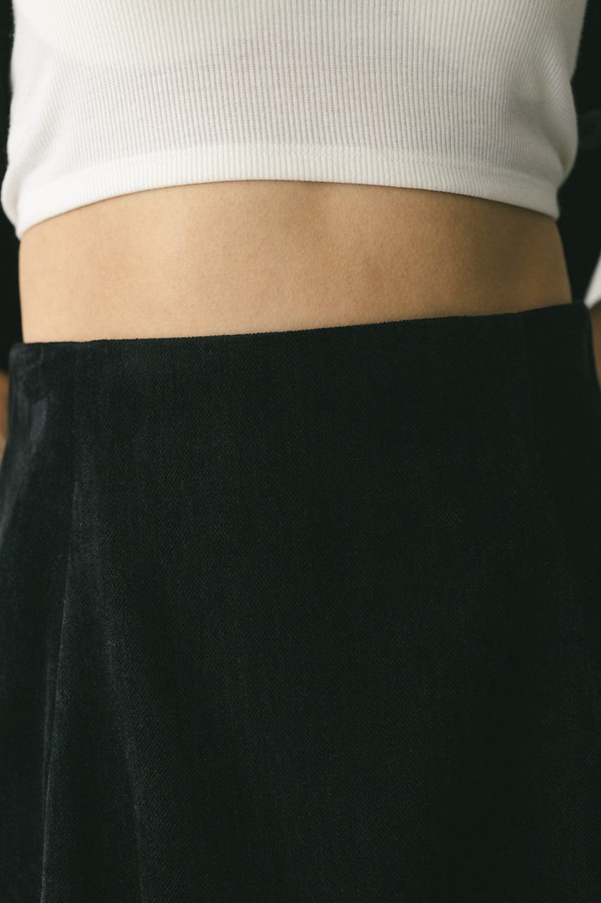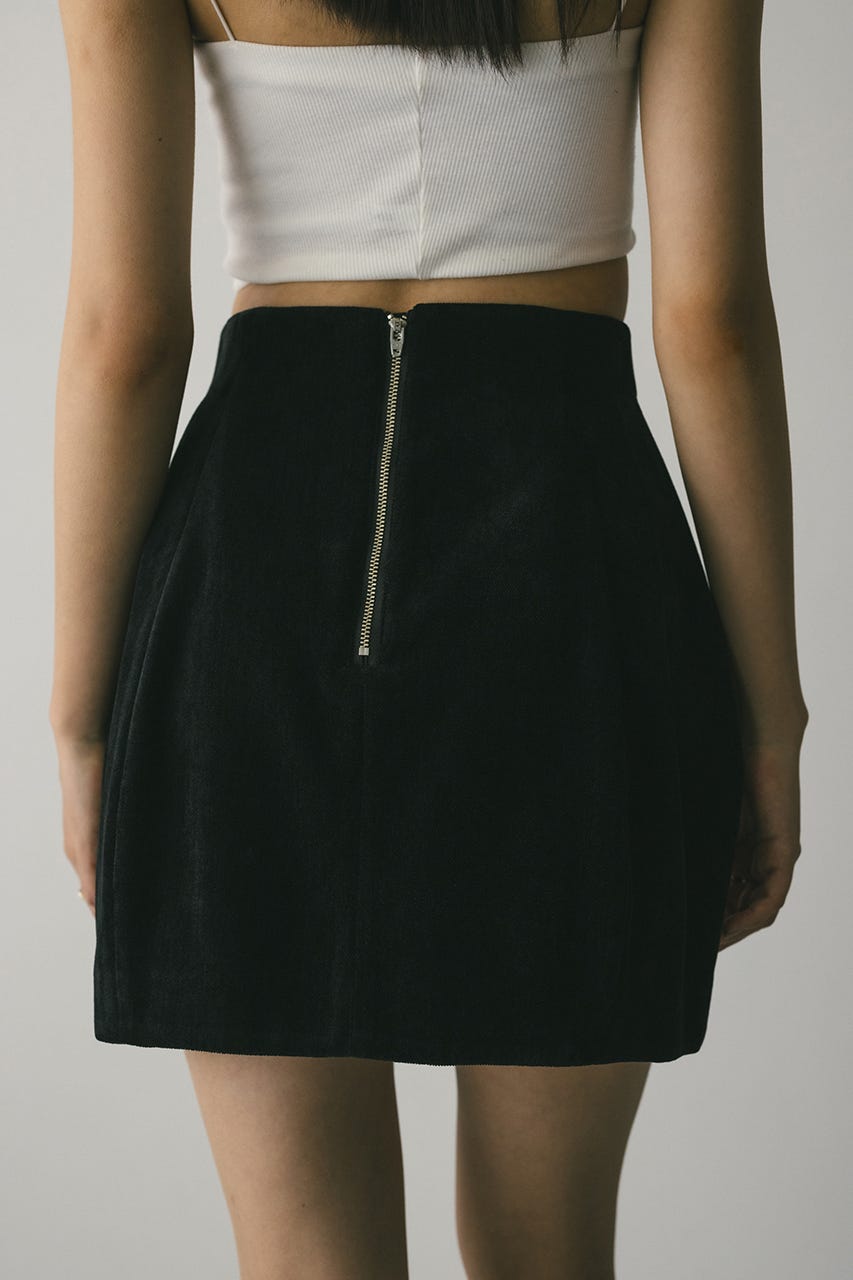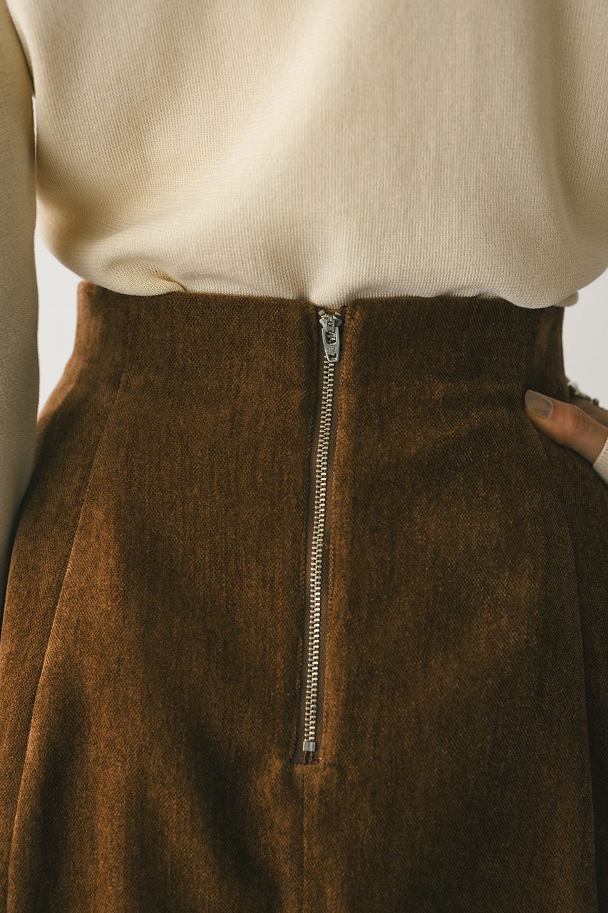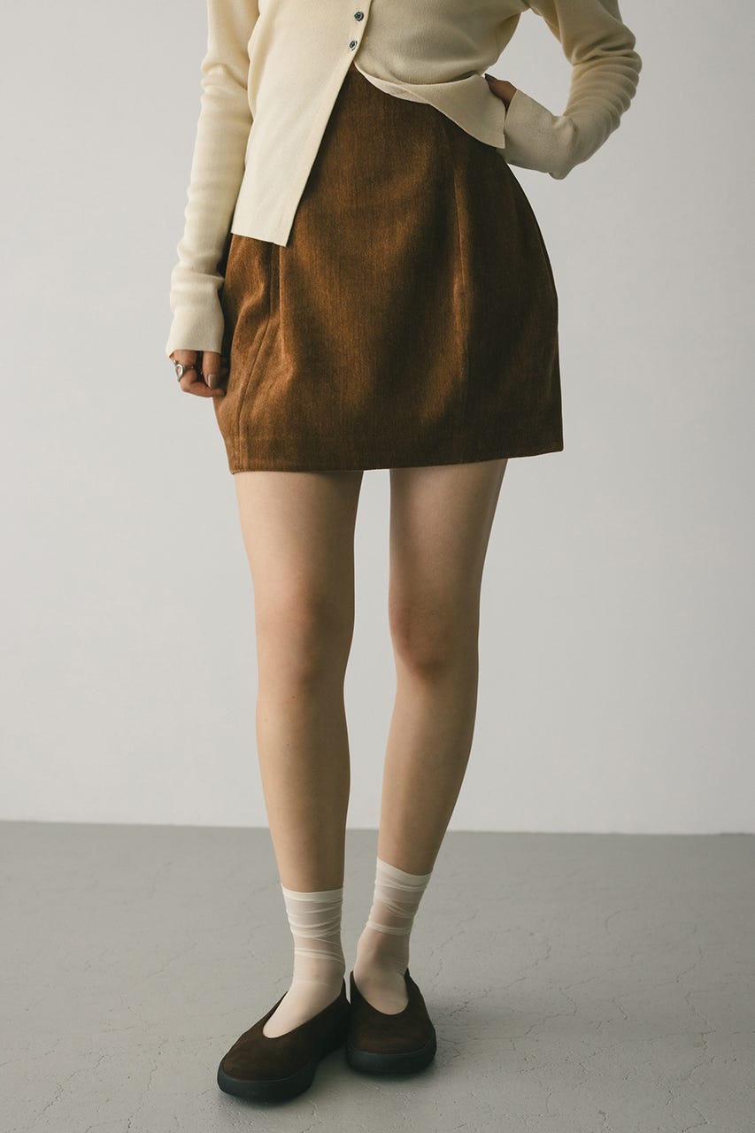 程よくハリがありながらもしなやかな風合いがポイントのベロア素材を使用したミニスカートパンツ。