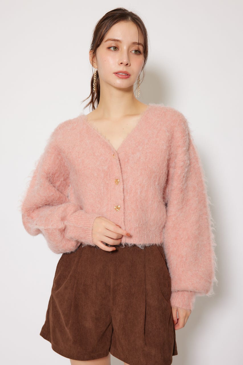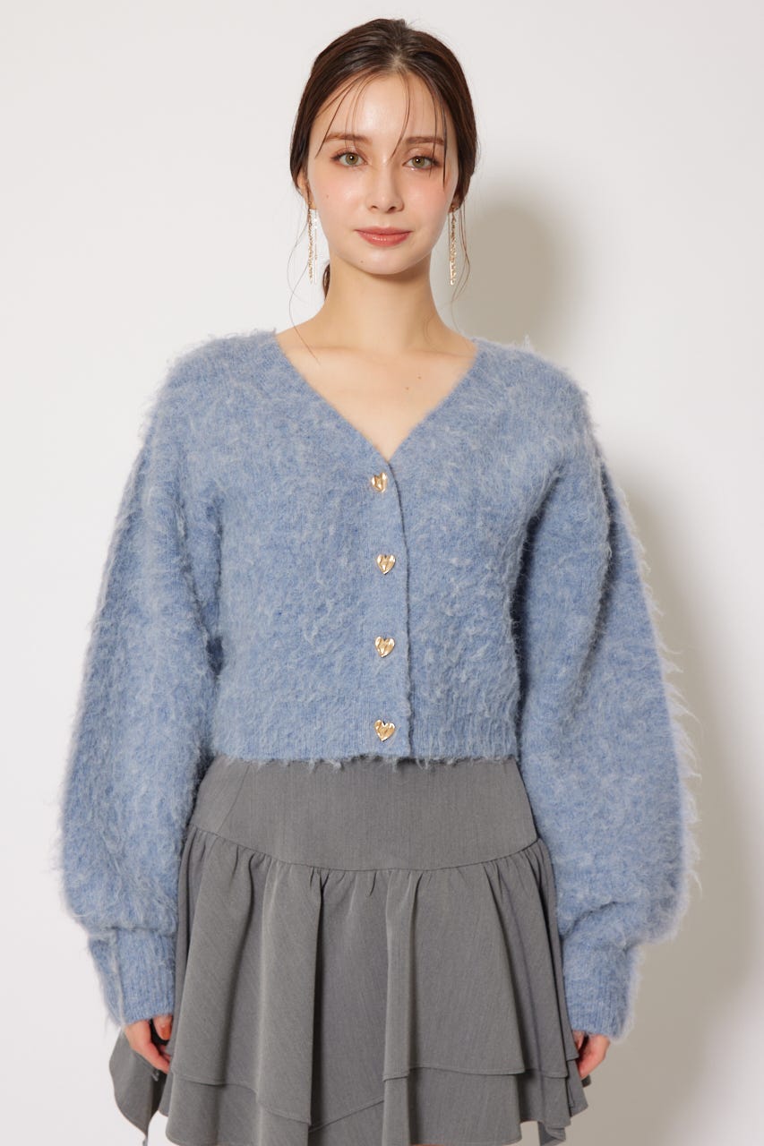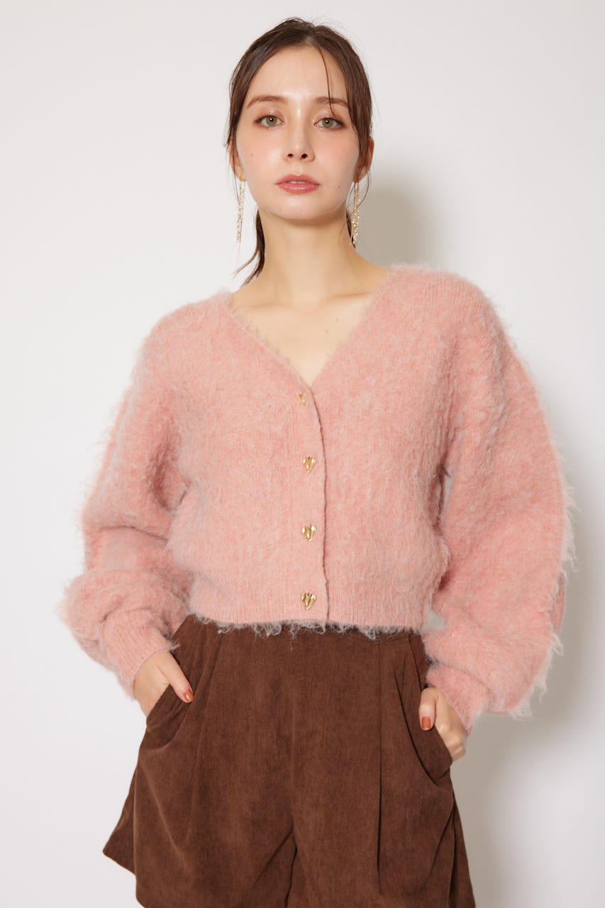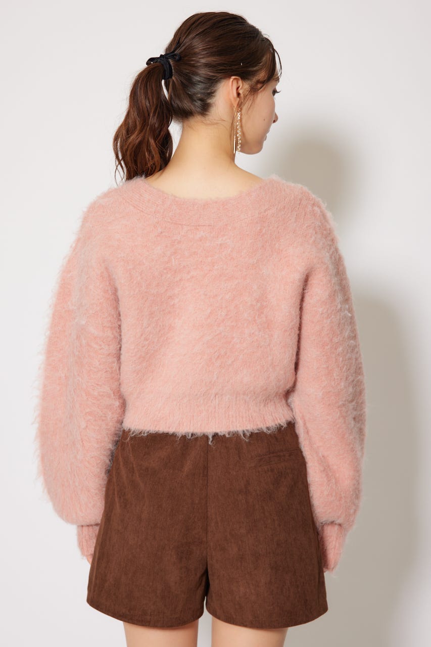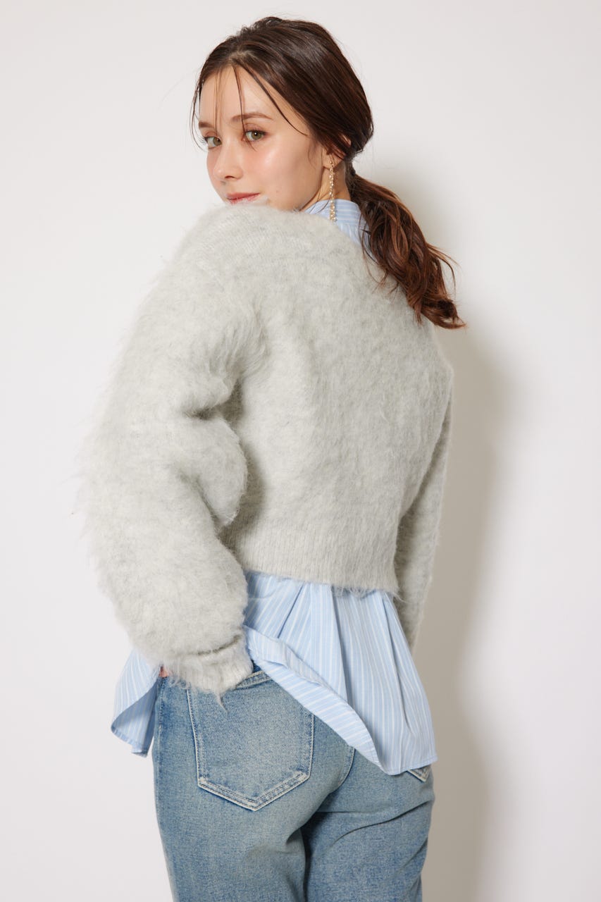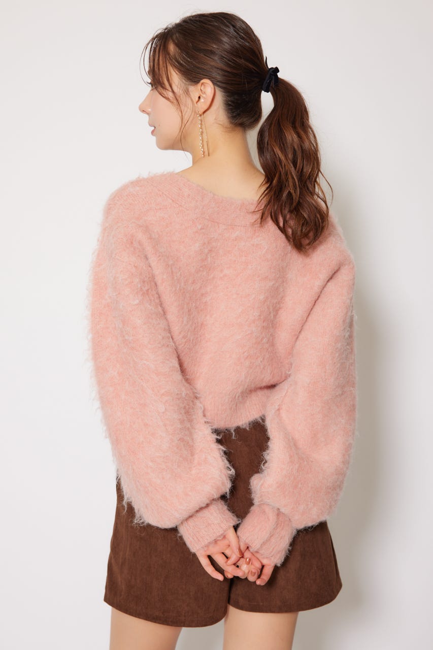W faceシャギーニットカーディガン