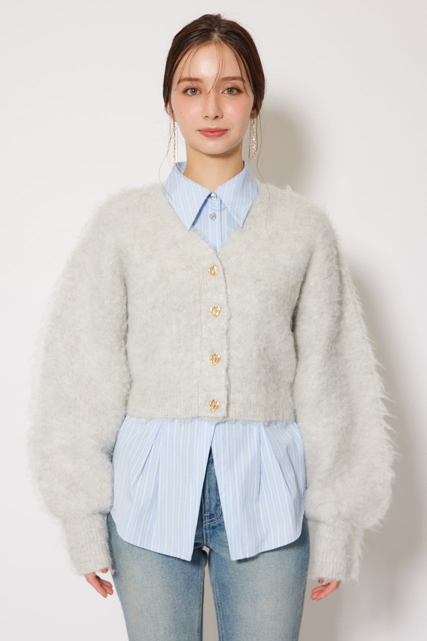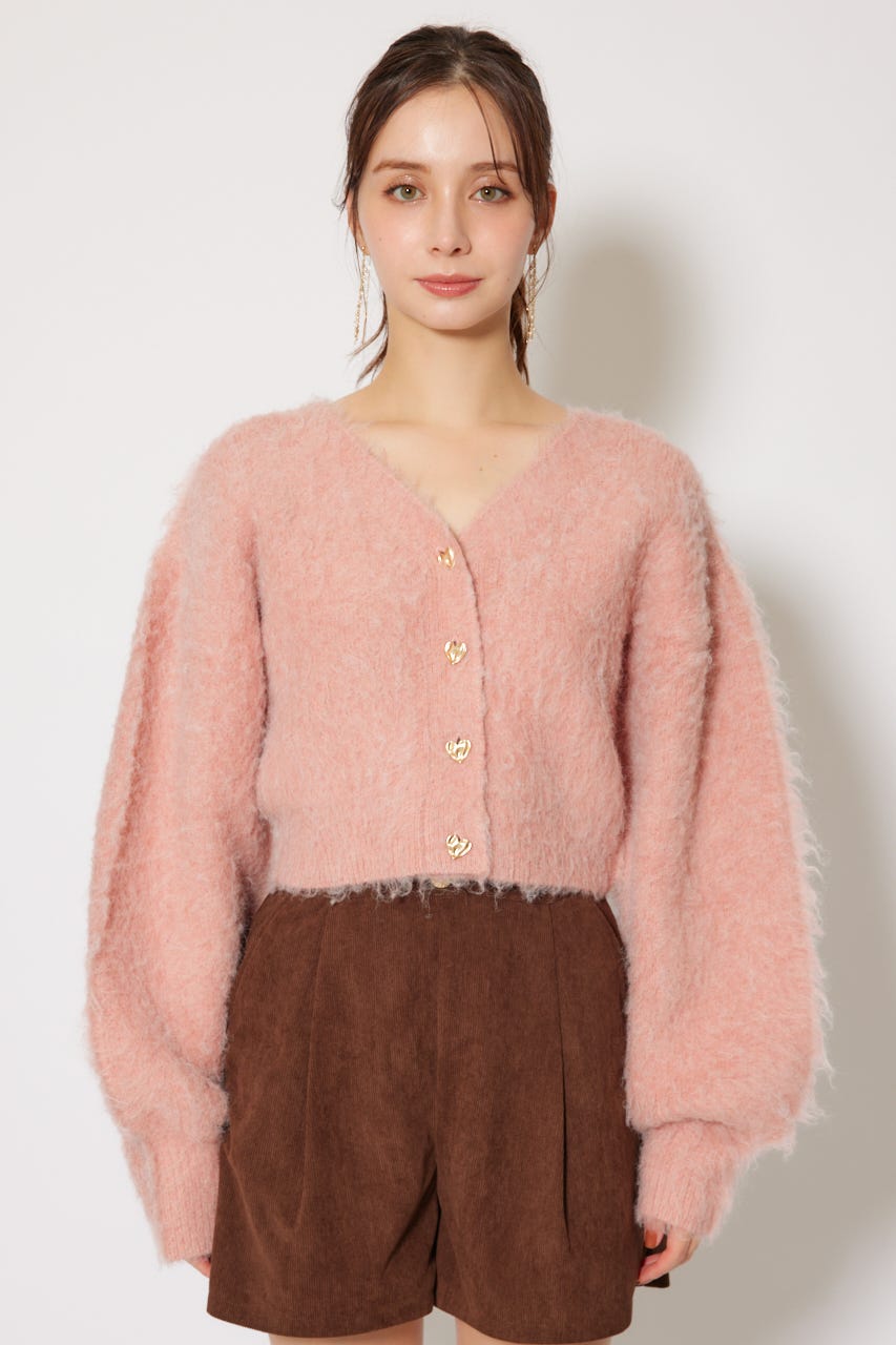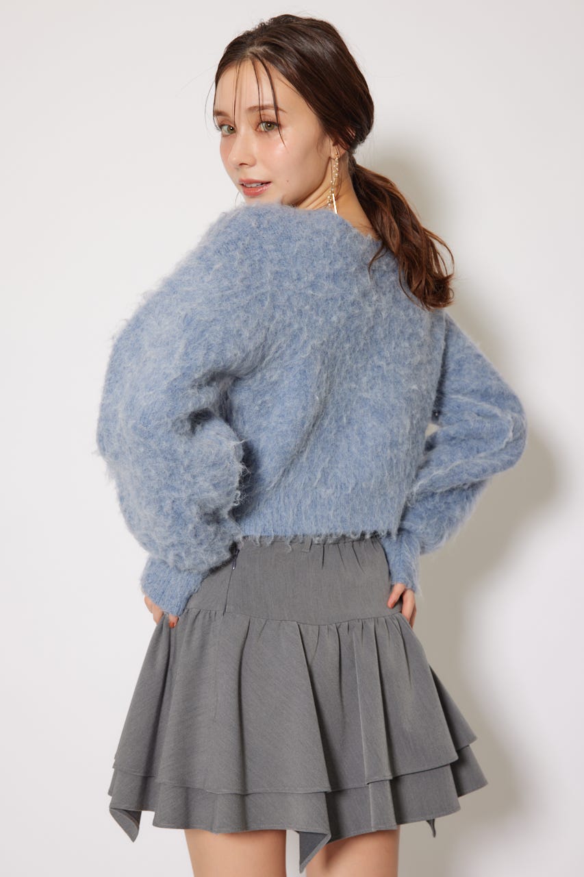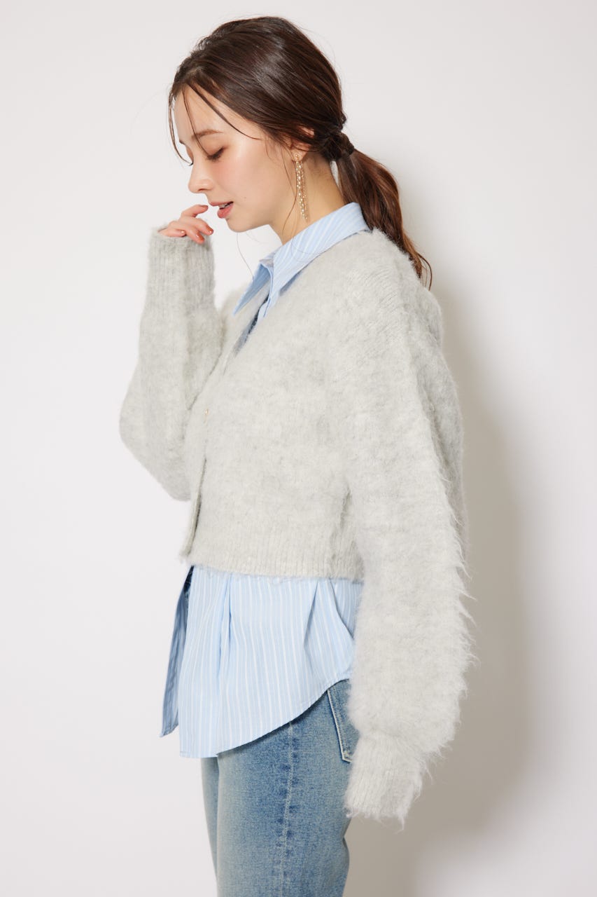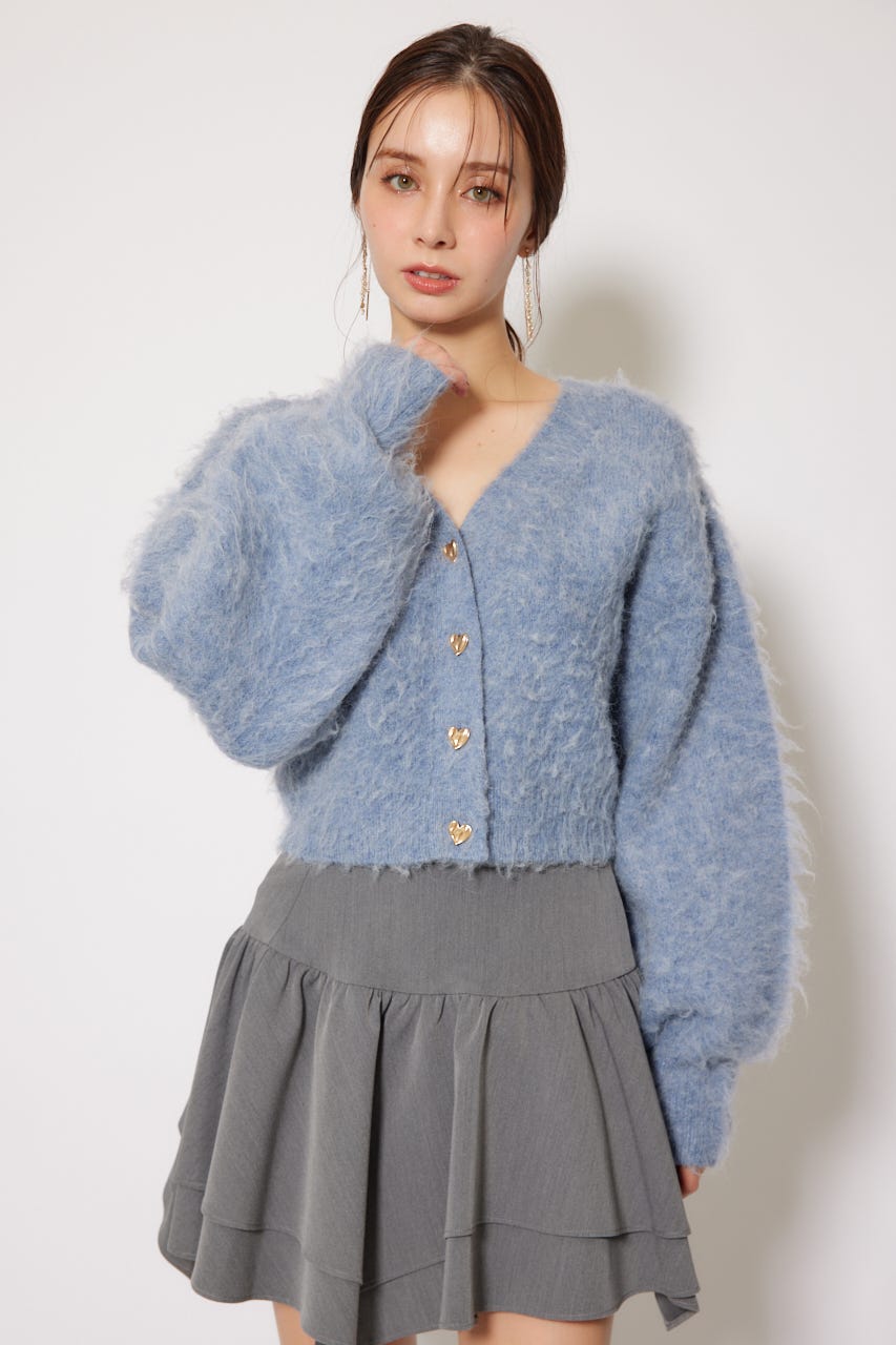 W faceシャギーニットカーディガン