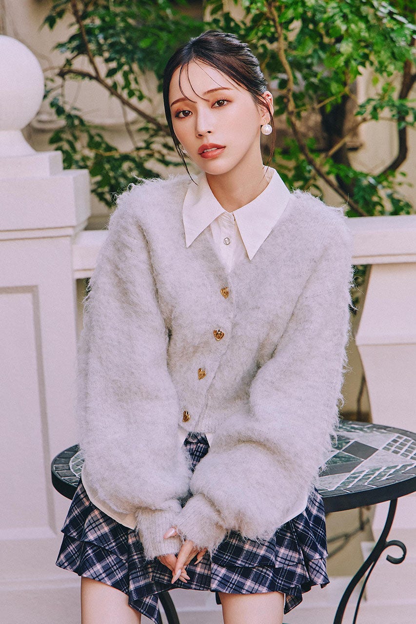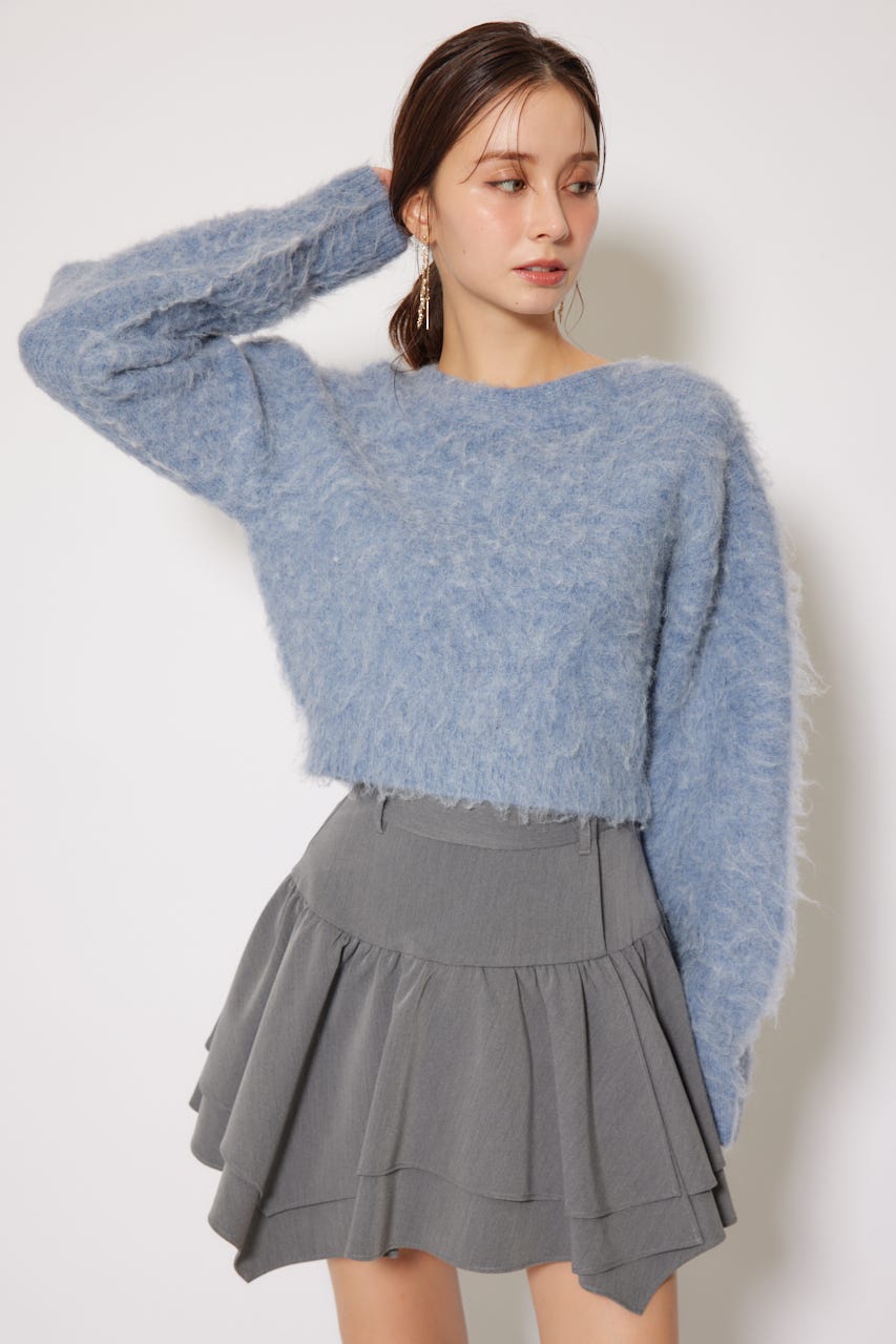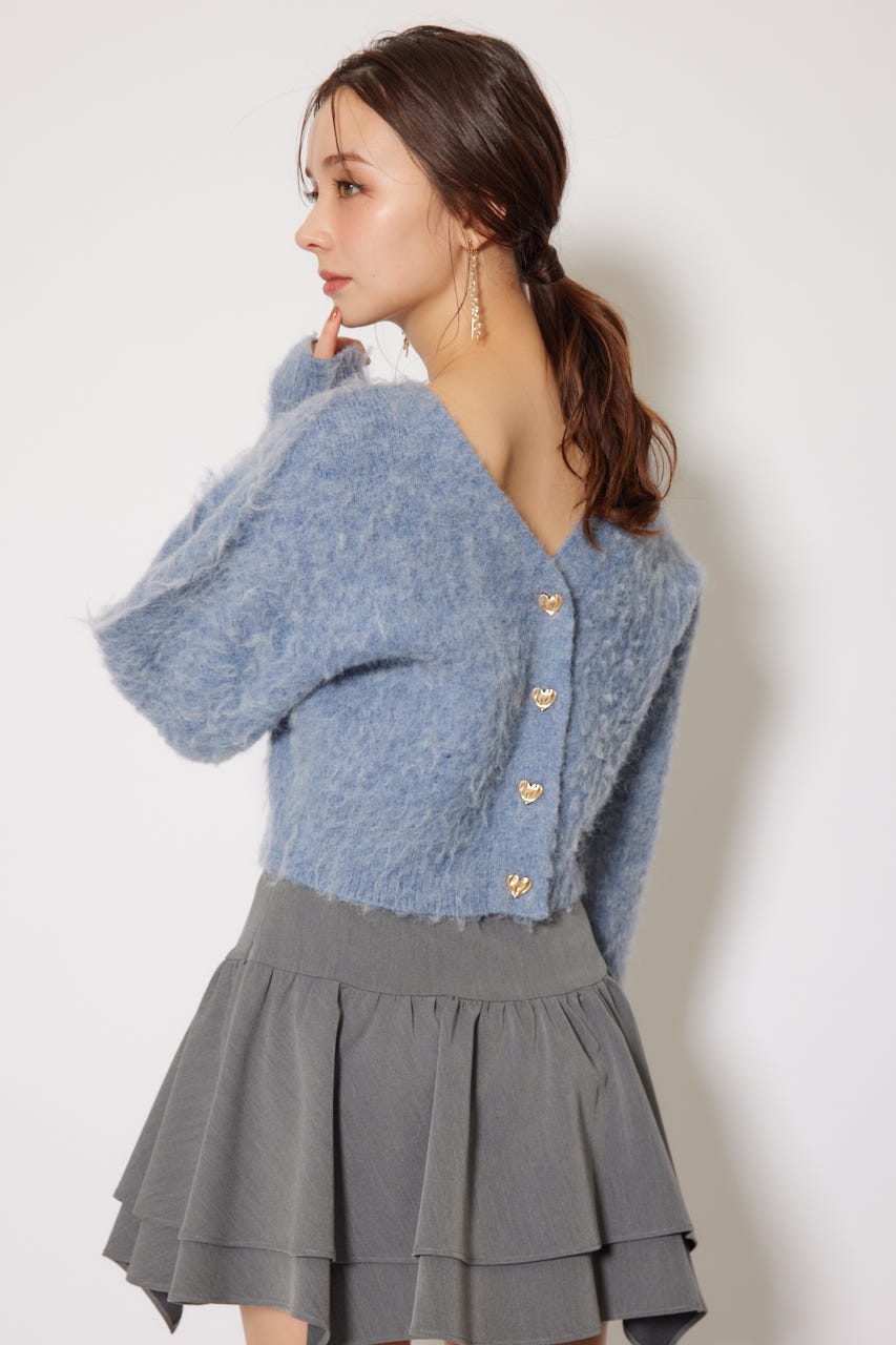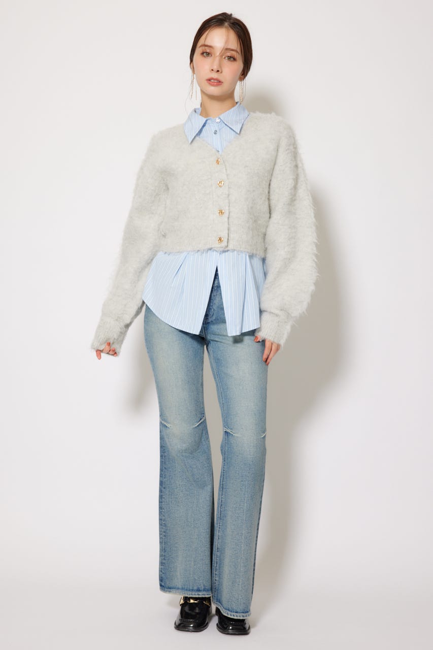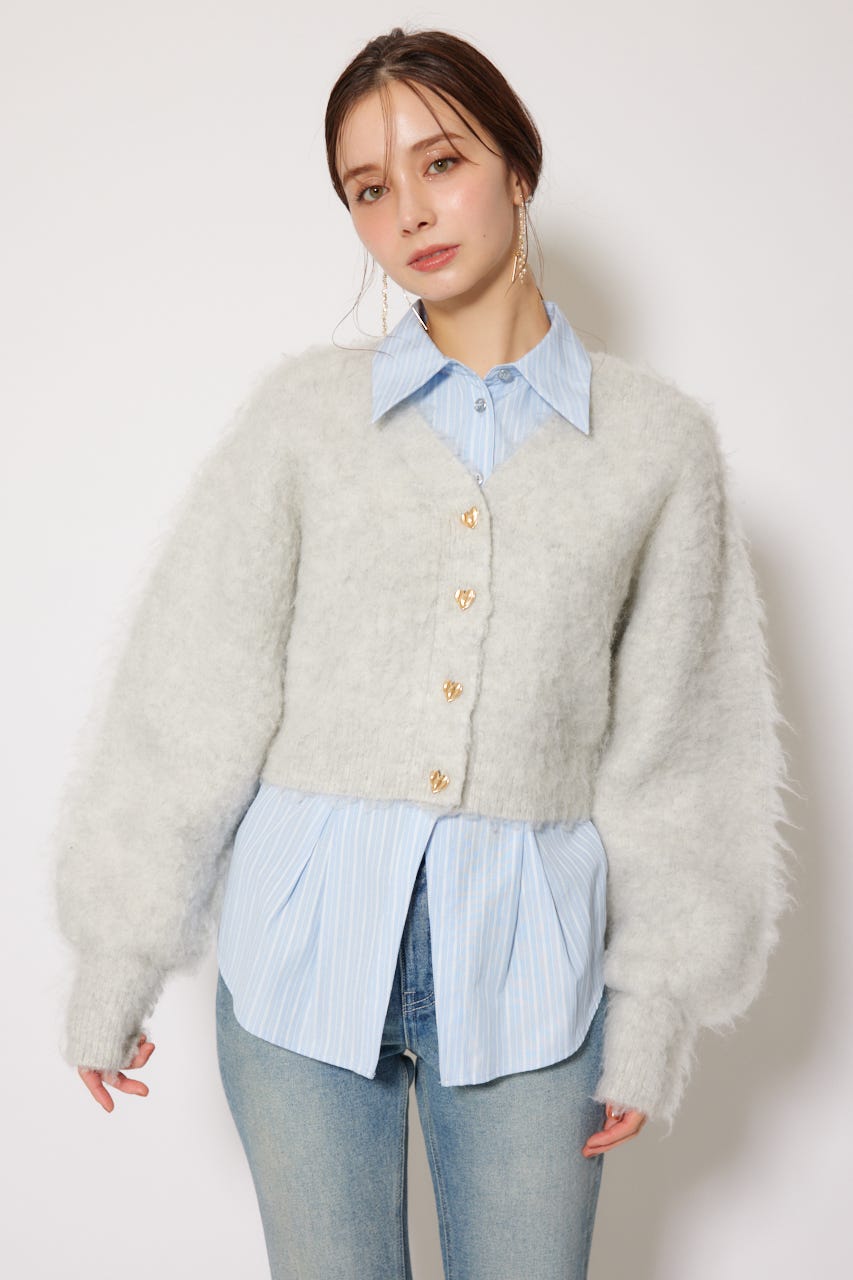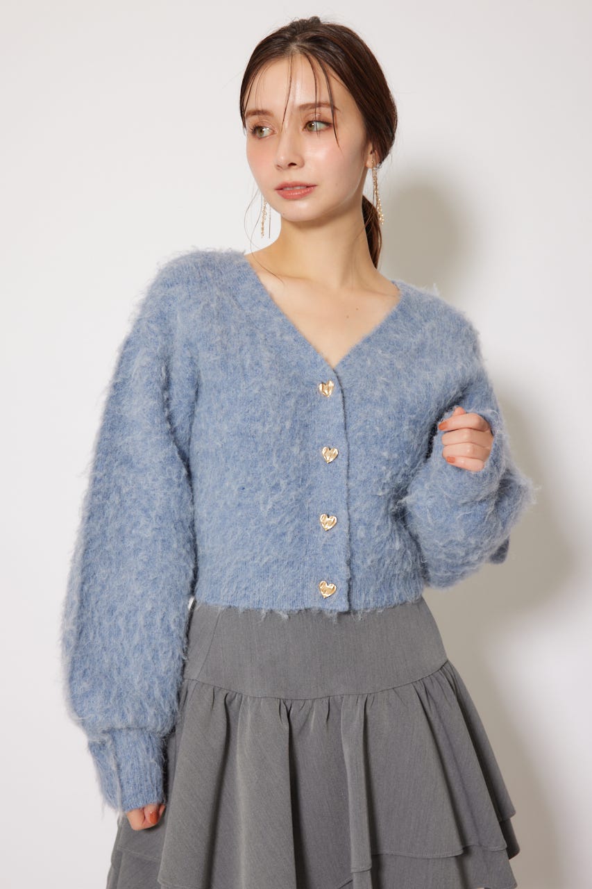W faceシャギーニットカーディガン