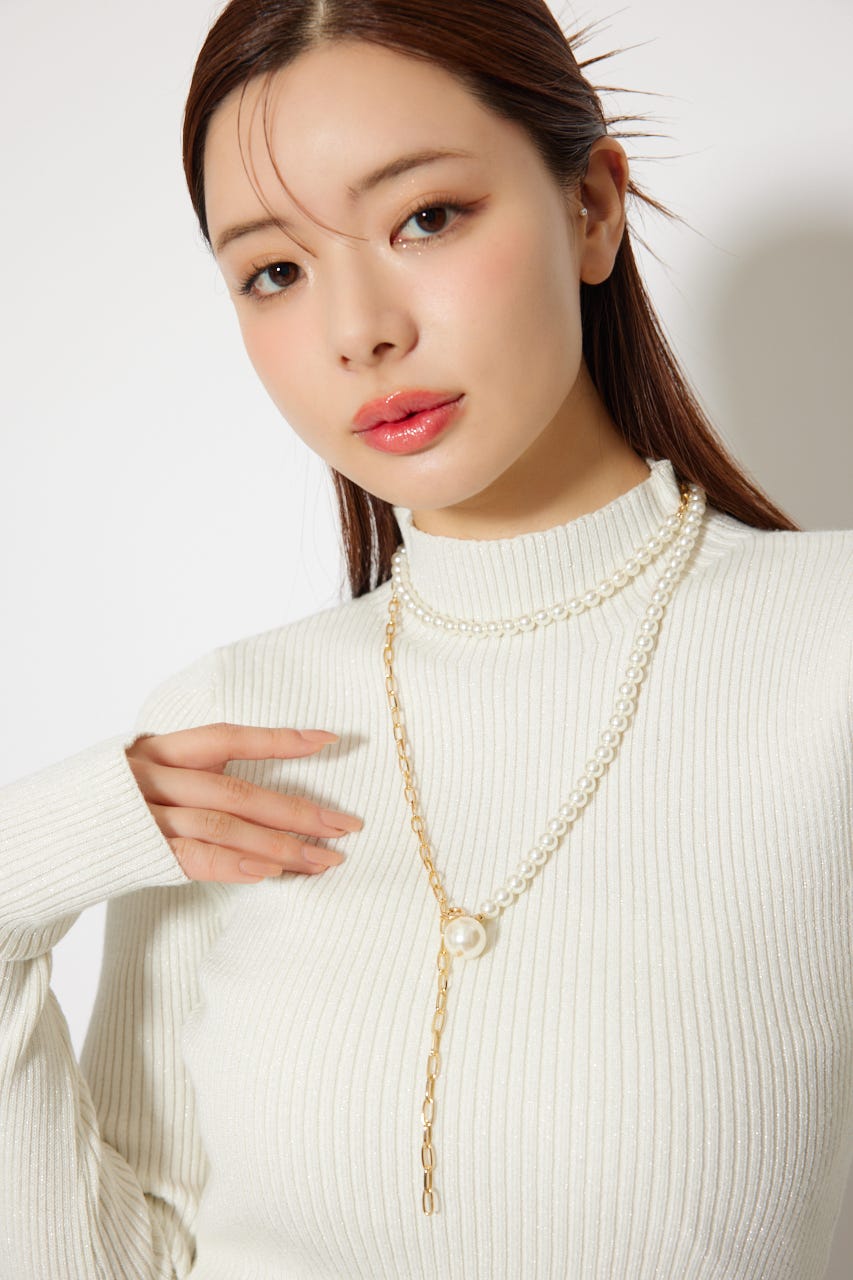 パール部分とチェーン部分はハーフハーフになっているのでその日の気分で見せ方が変えられるのも嬉しいポイントです。