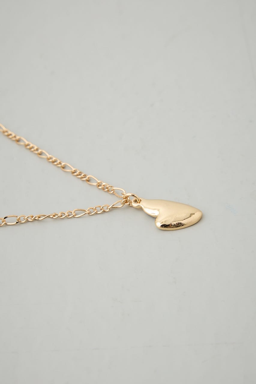 艶やかなメタルのハートチャームが目を引く、シンプルながら存在感のあるネックレス。