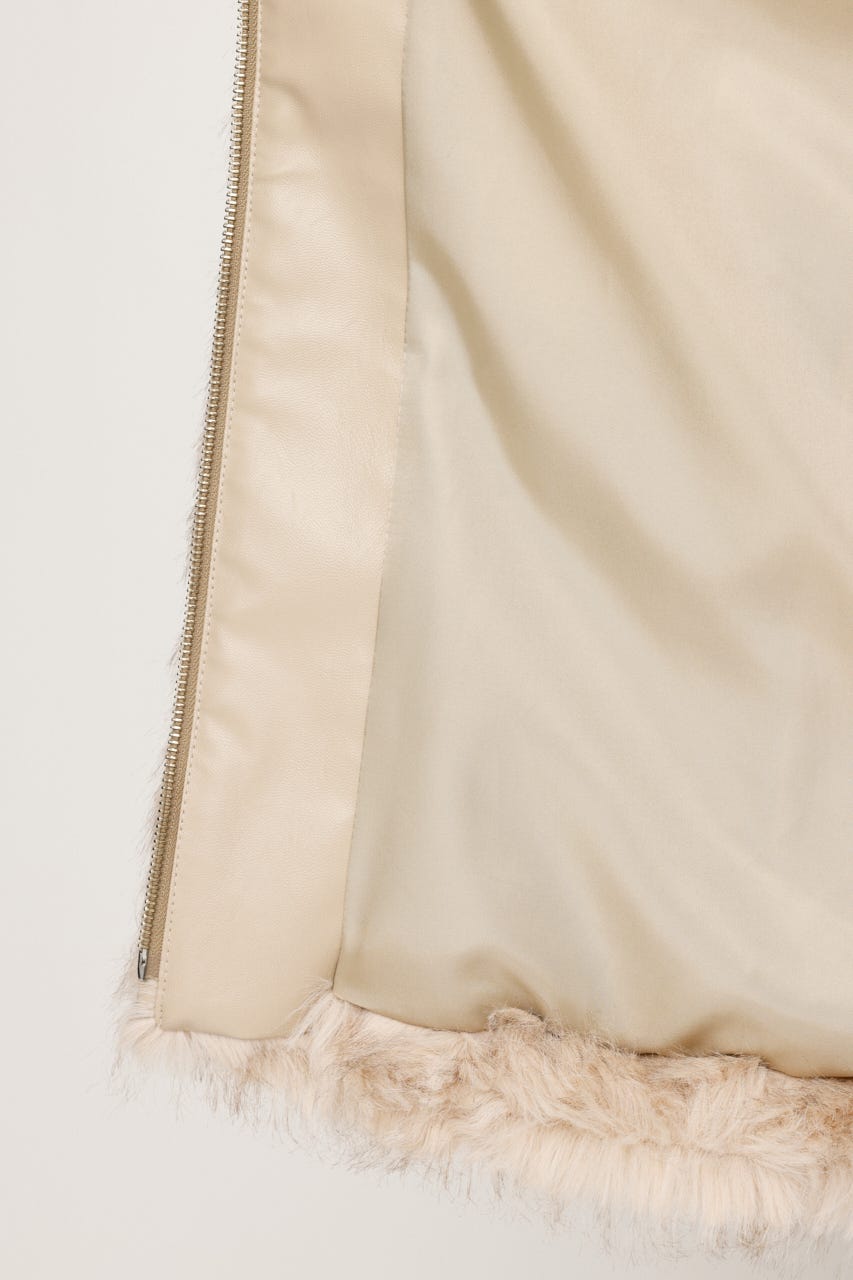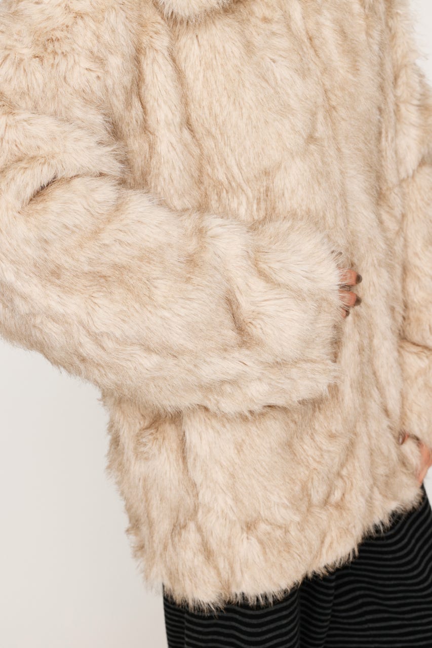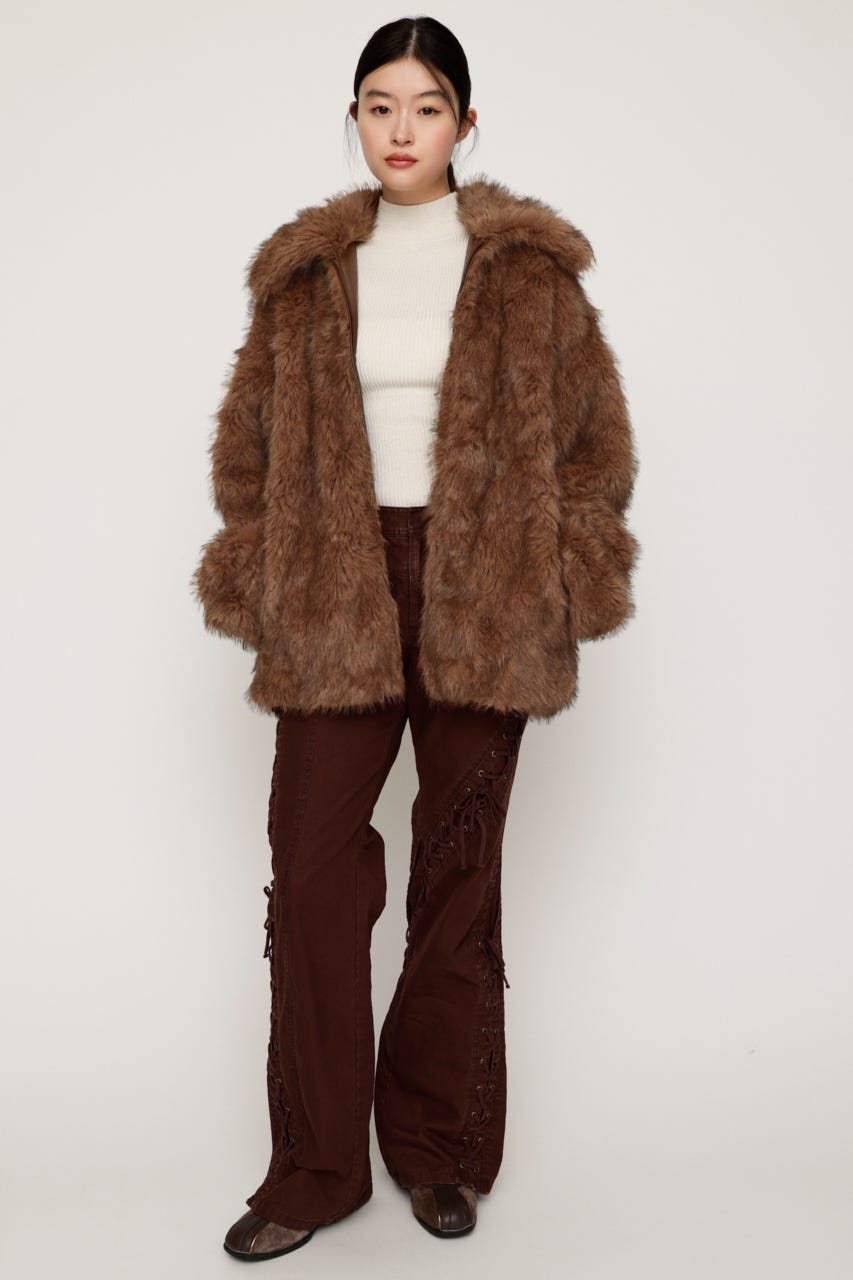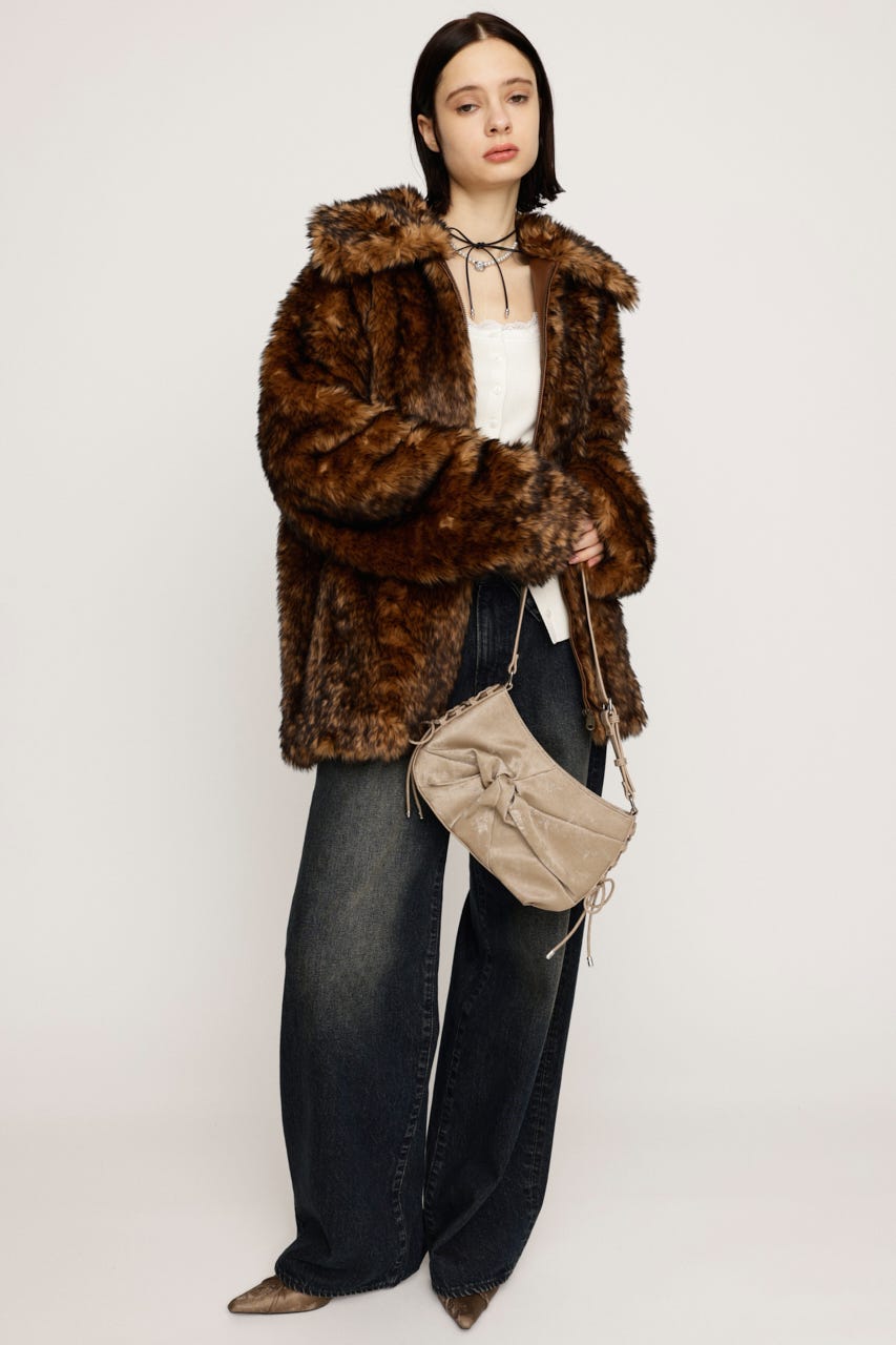 ■DETAIL:毛足の長いフェイクファーを贅沢に使用し、上品な雰囲気に仕上げた1枚。