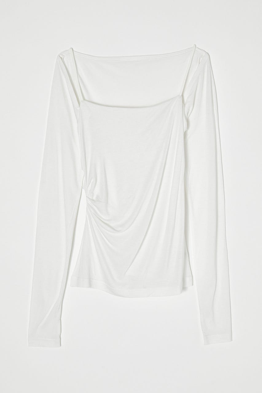 派手過ぎないヘルシーな肌見せバランスが叶う長袖トップスです。
