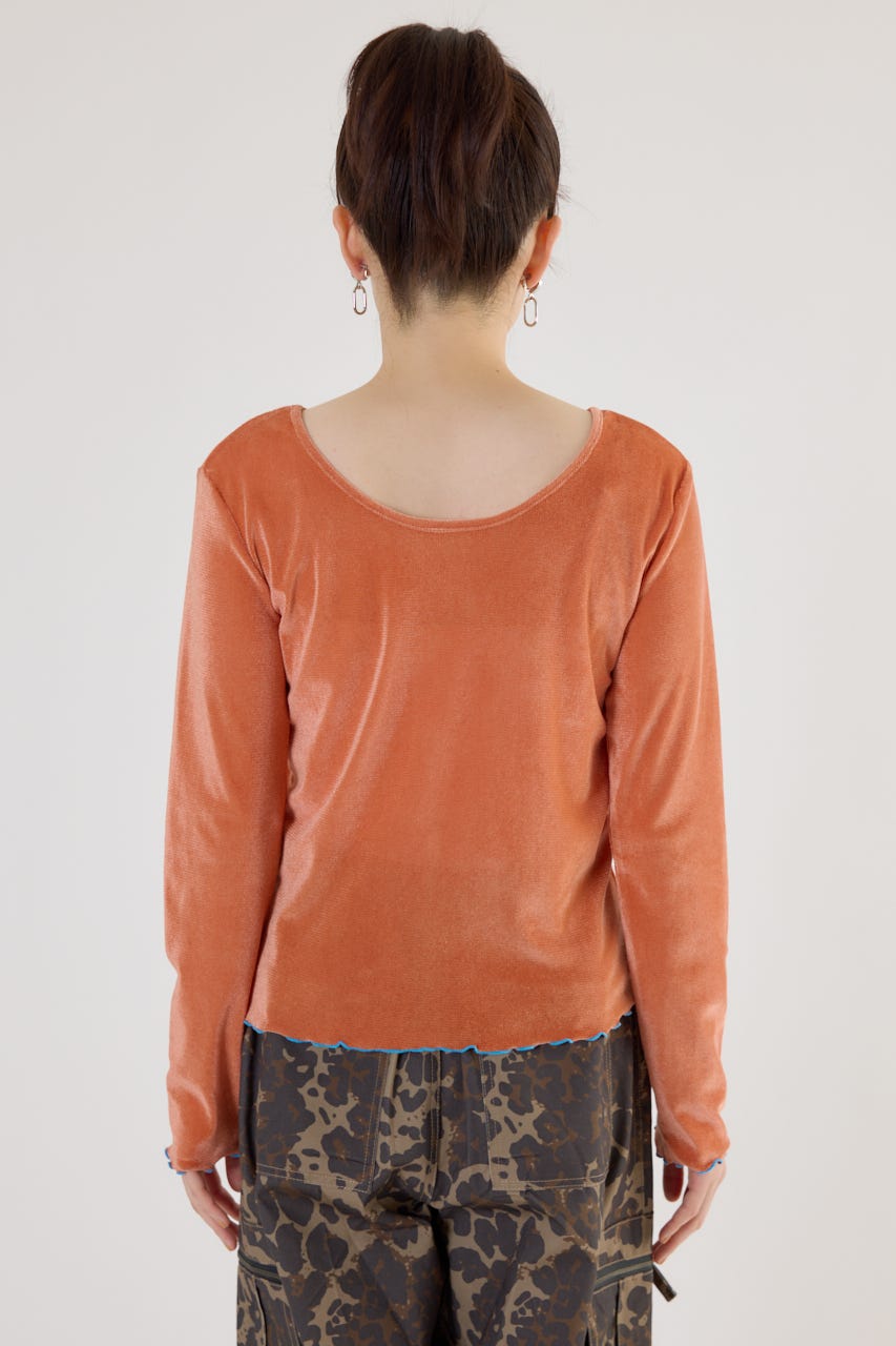 透けすぎないほどよいシースルー感のあるトレンドのシアーベロア素材のプルオーバートップス。