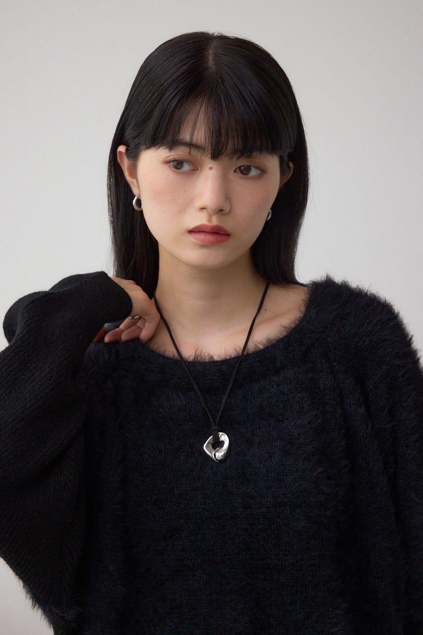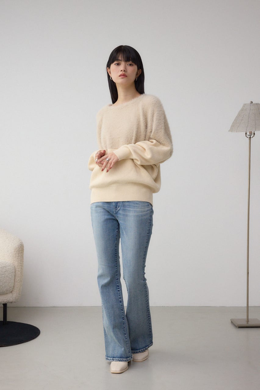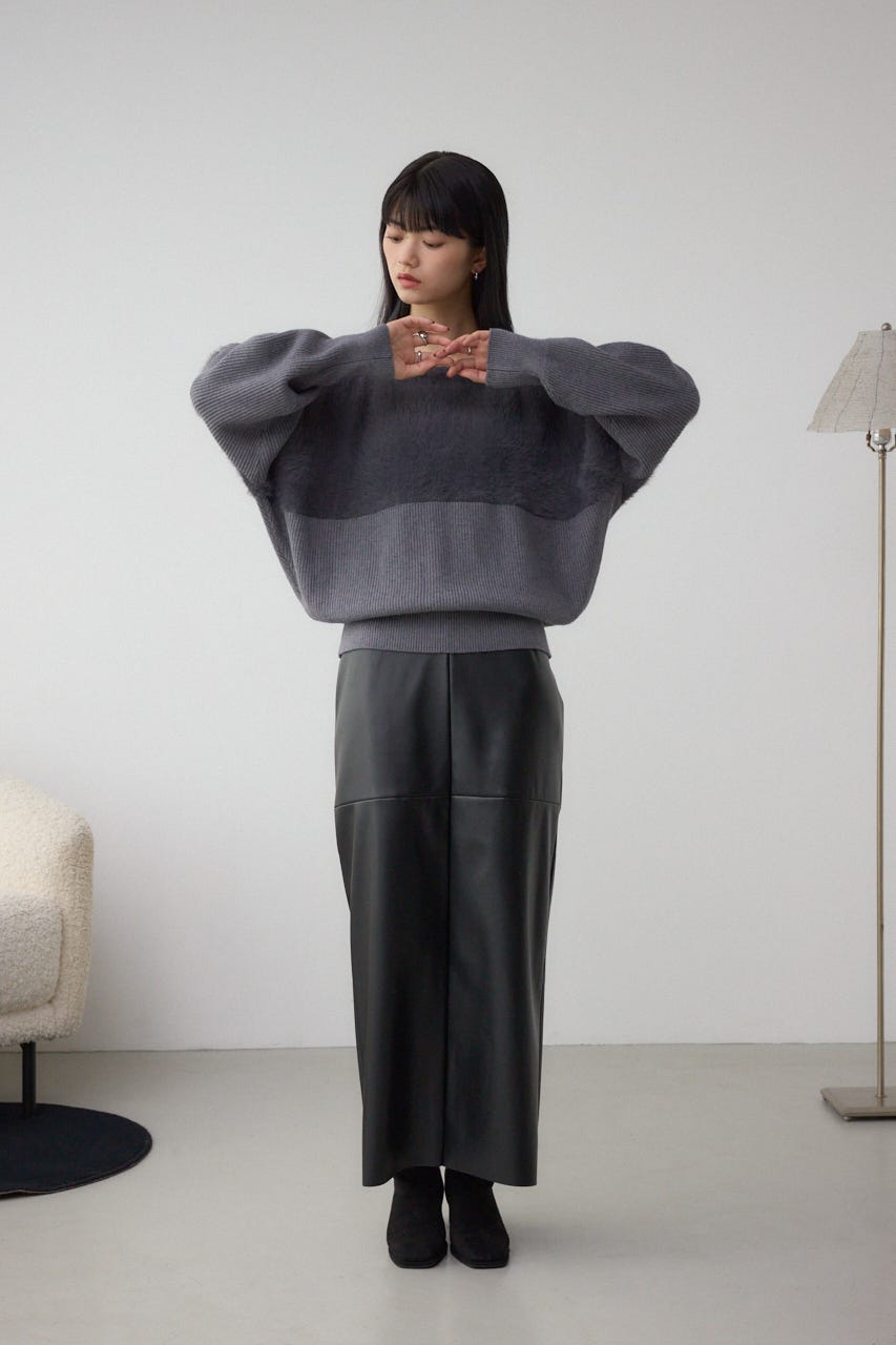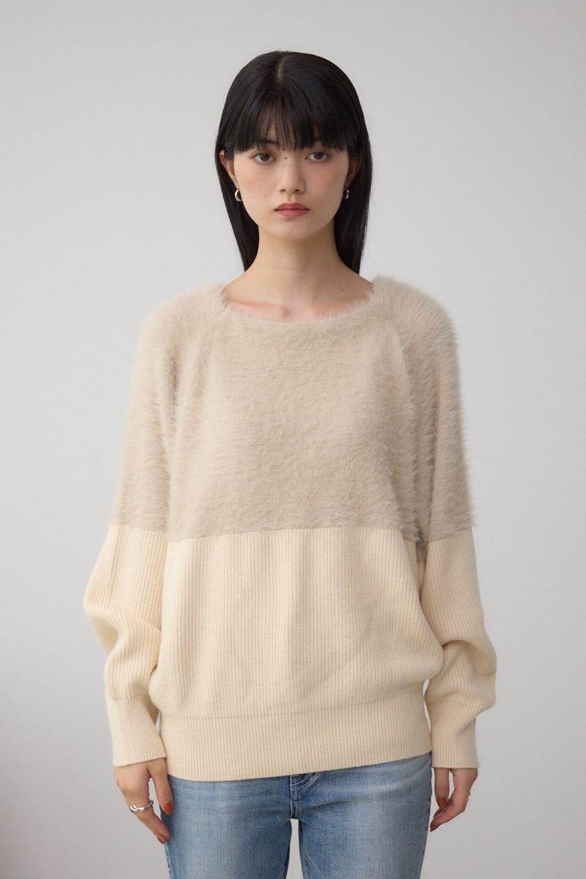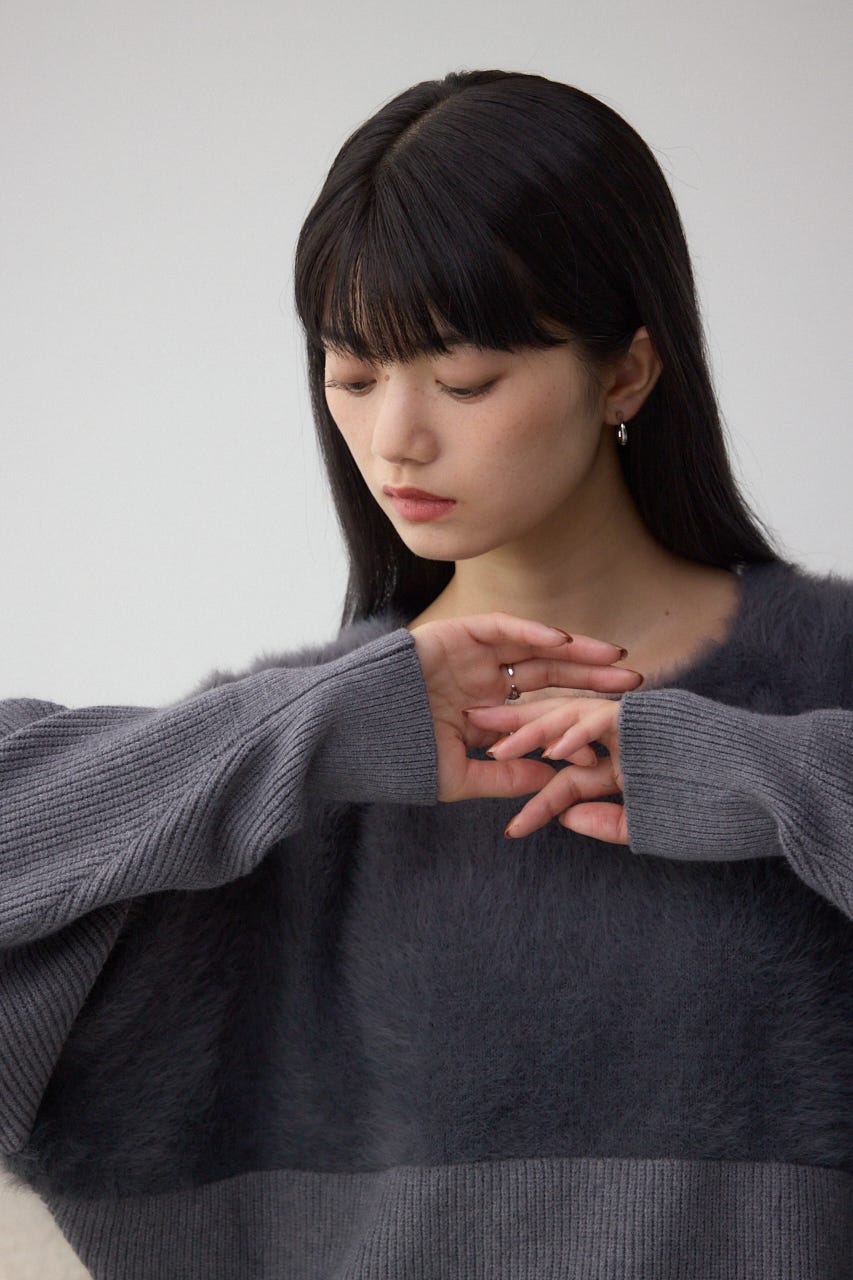 シャギーニットとソリット糸を切り替えた、こなれた印象のドルマンニットです。