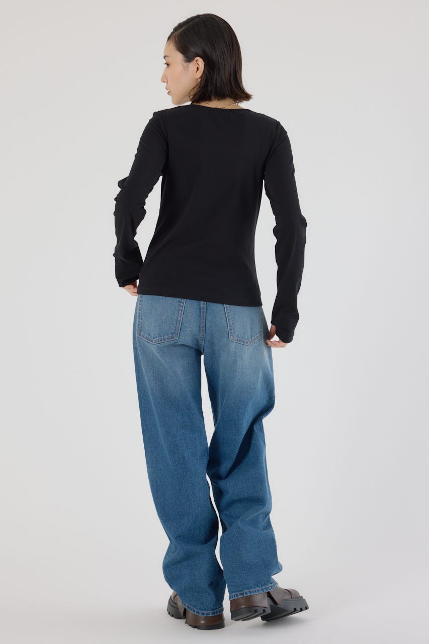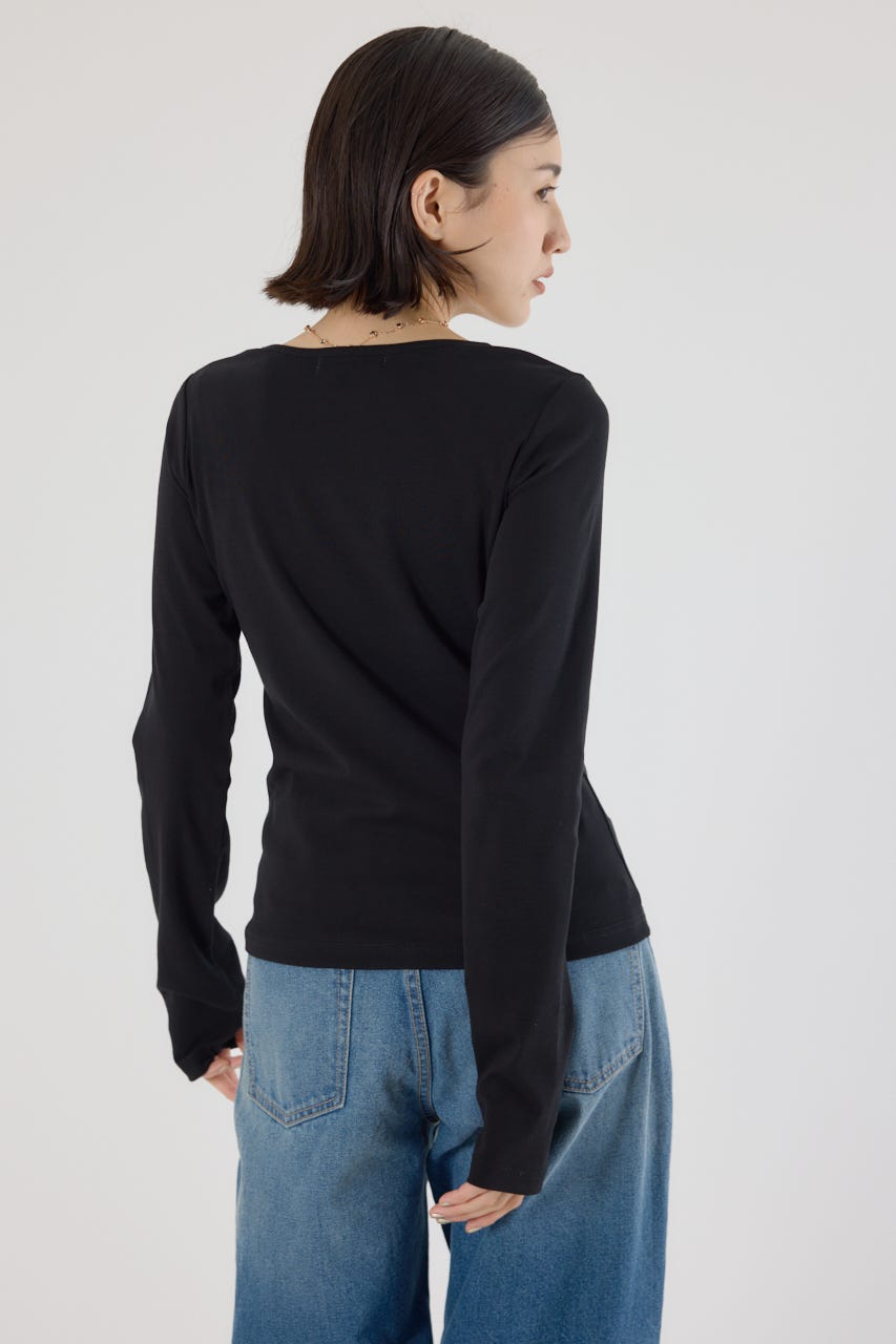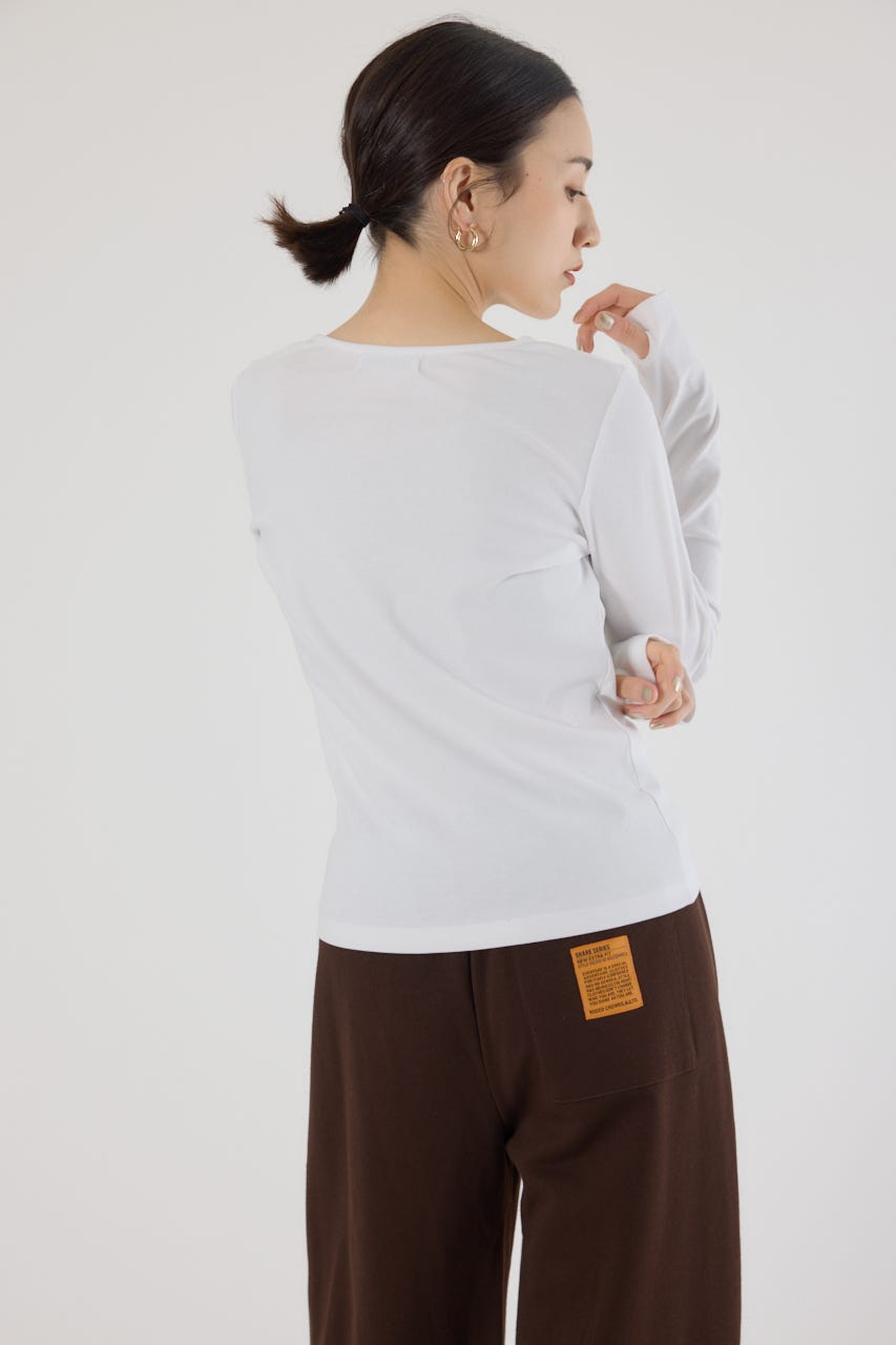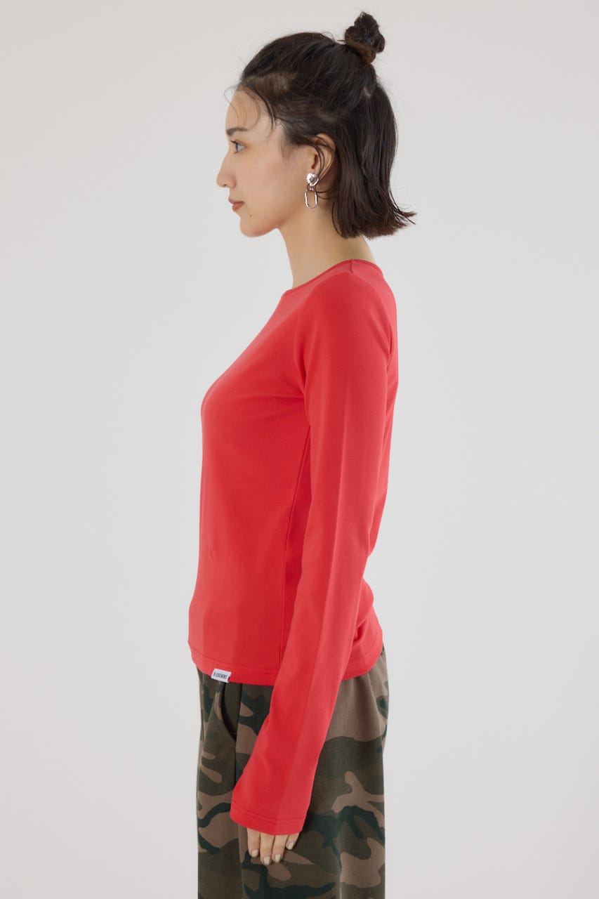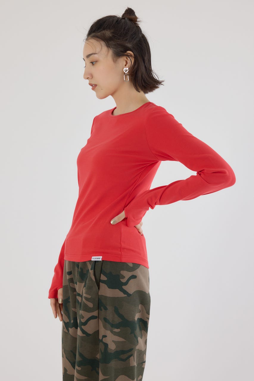 ベーシックなデザインの長袖Tシャツ。