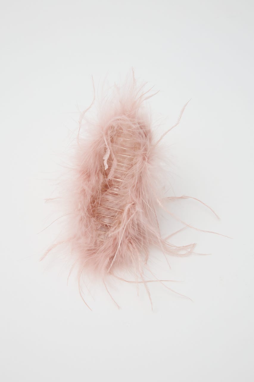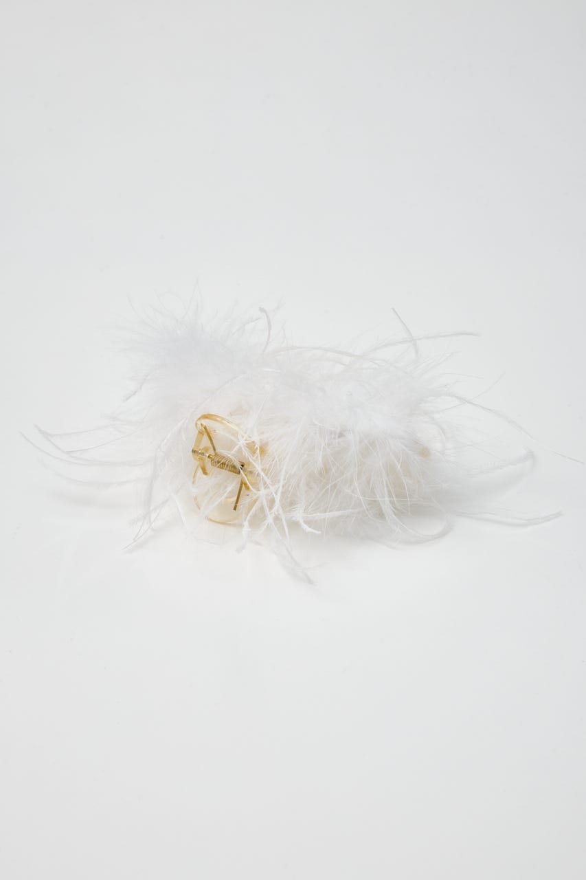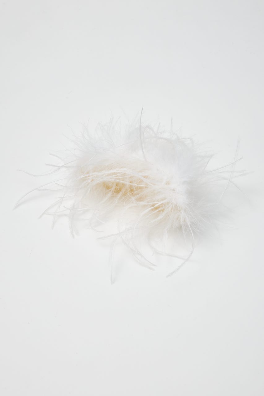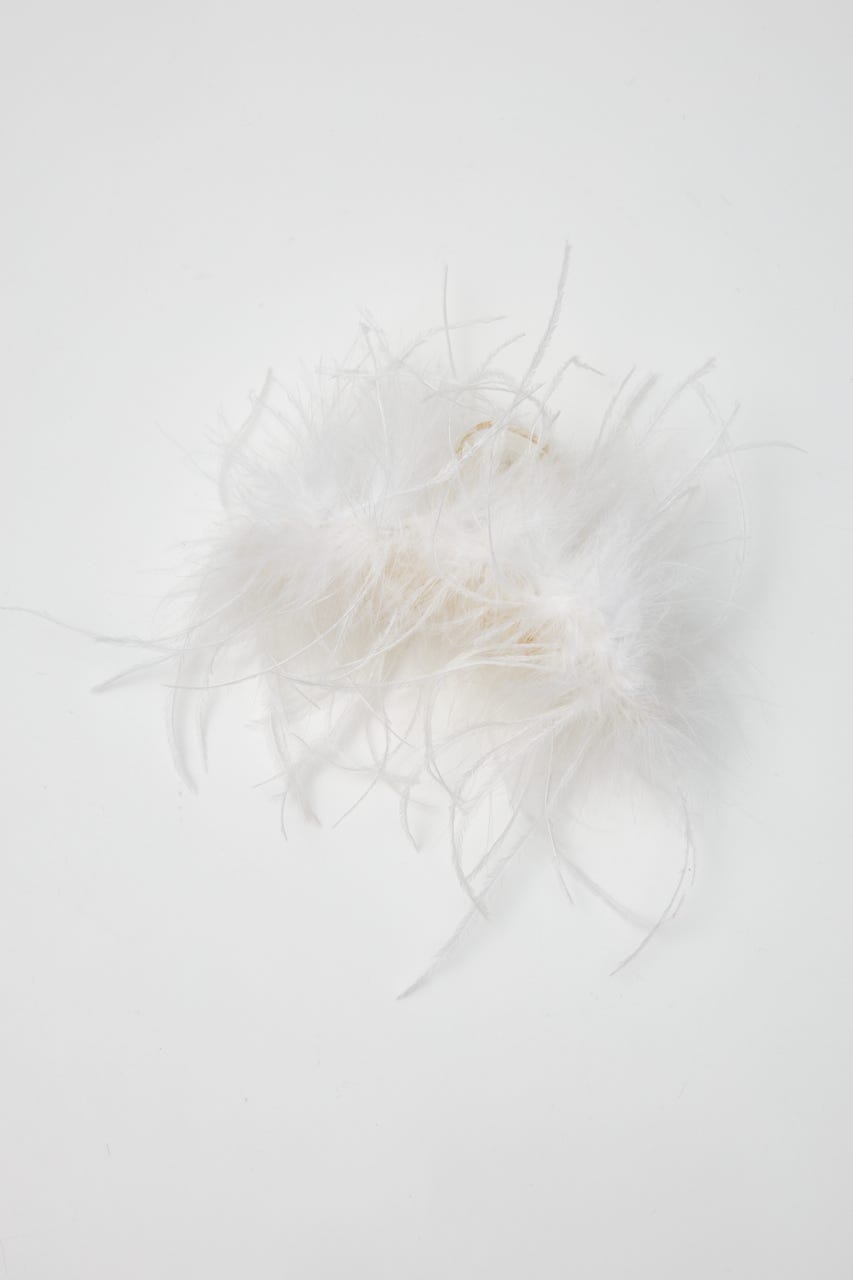 毛足の長さが異なるフェイクフェザーは立体感と華やかさを演出します。