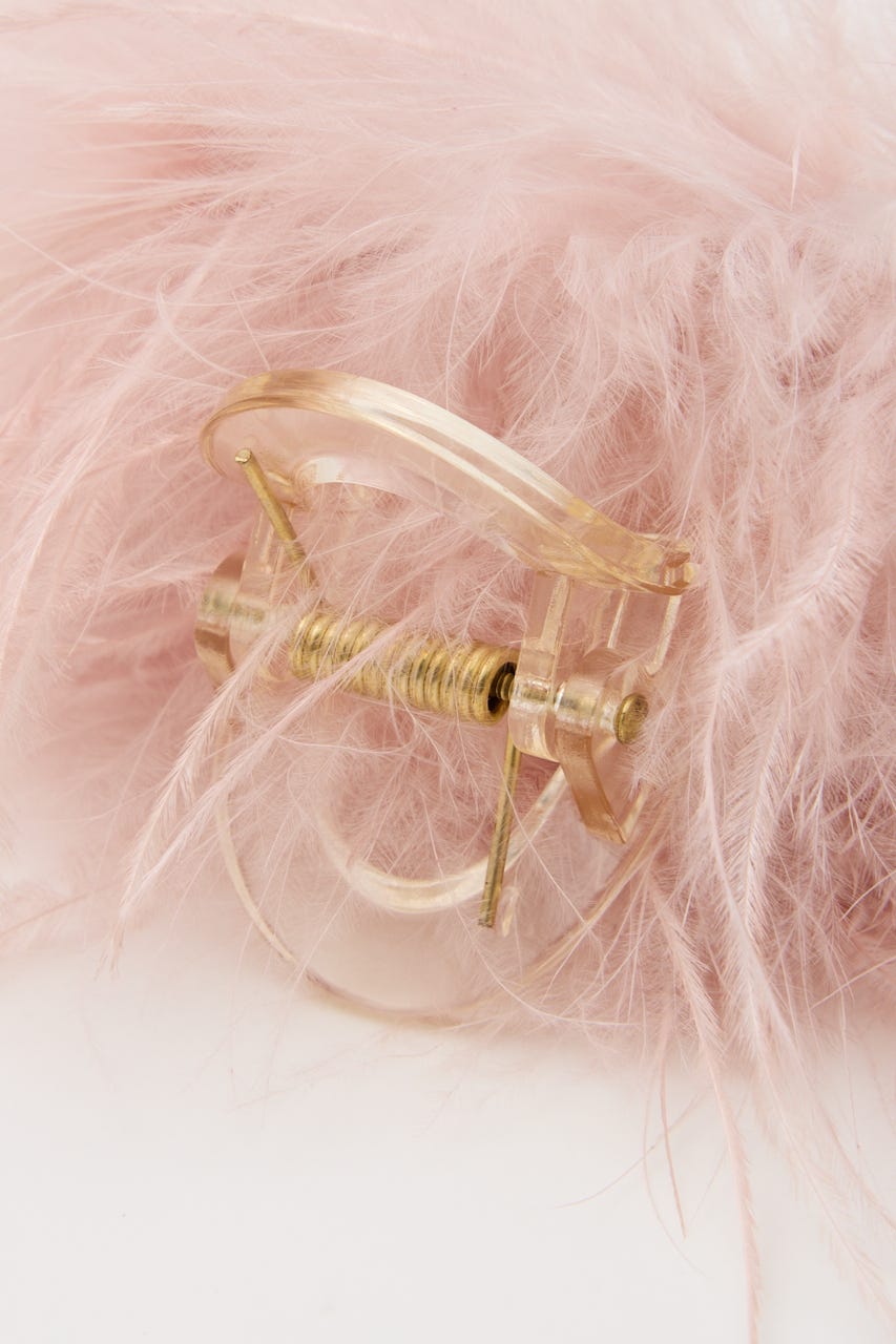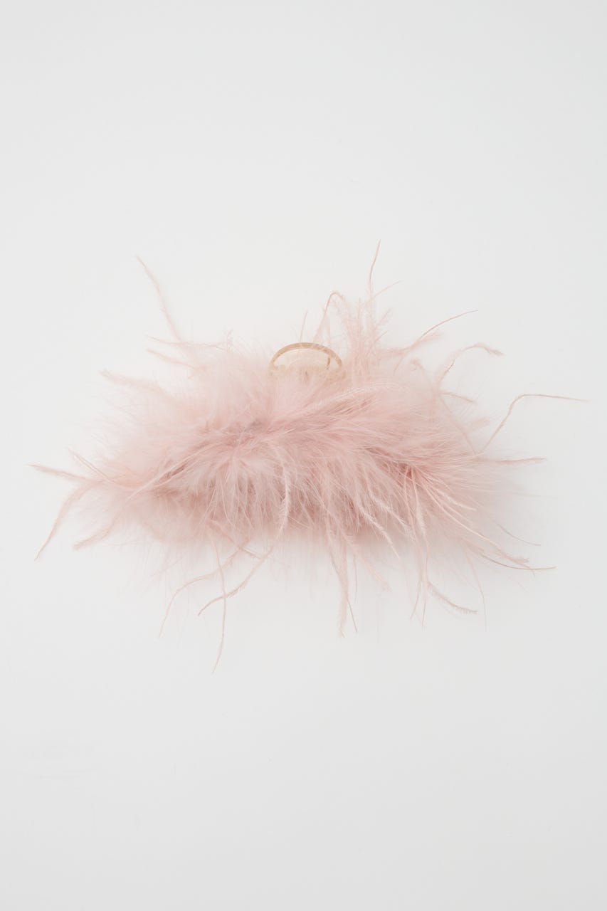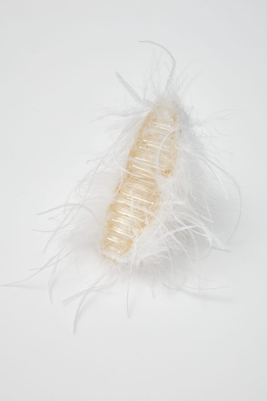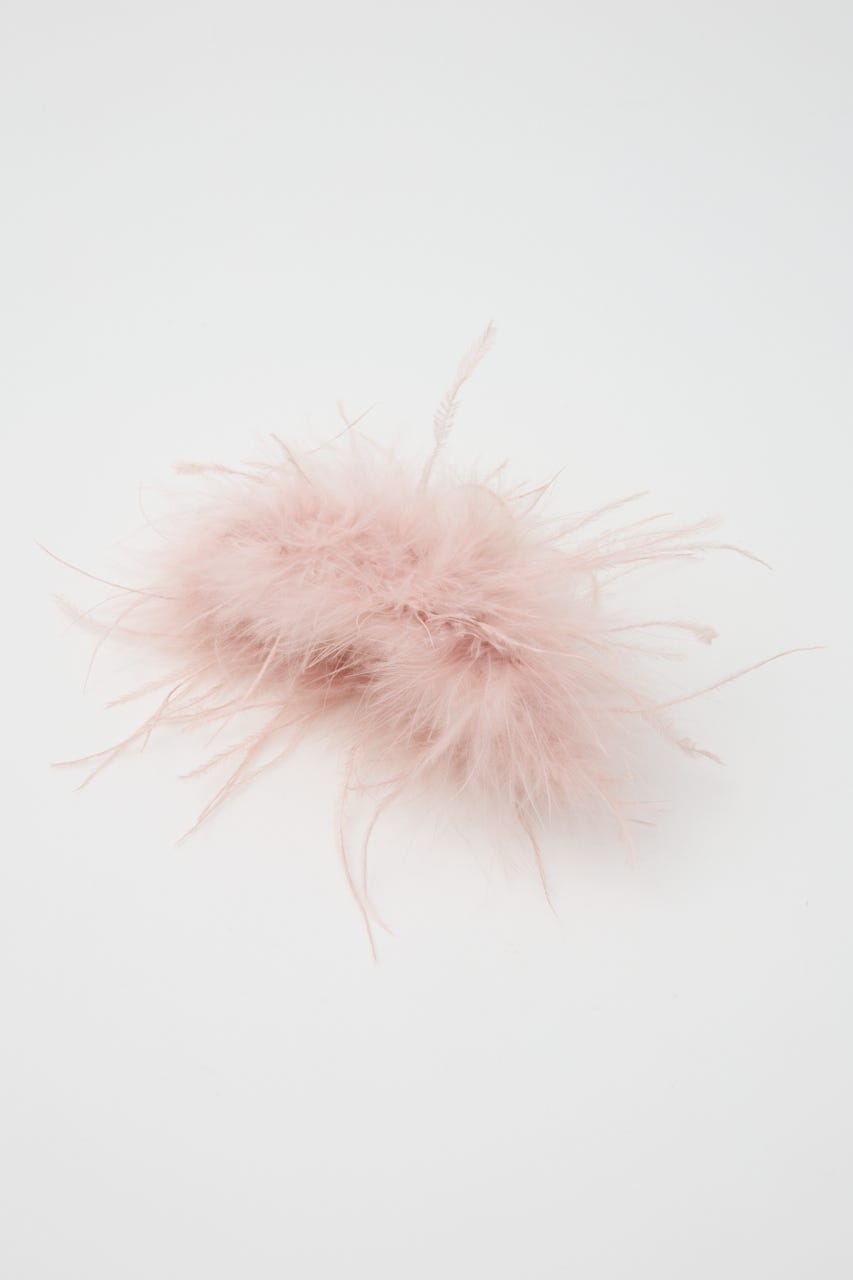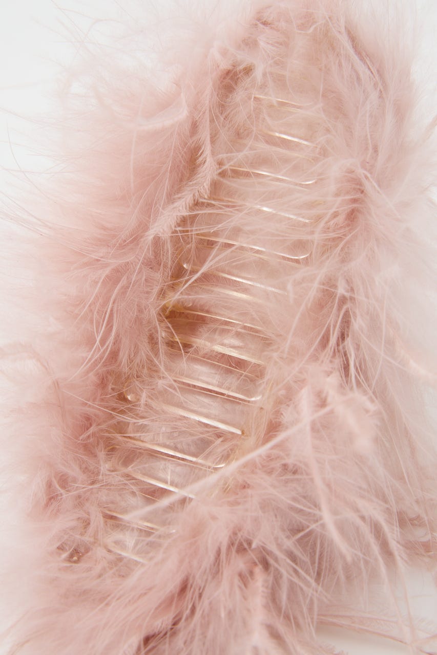 毛足の長さが異なるフェイクフェザーは立体感と華やかさを演出します。