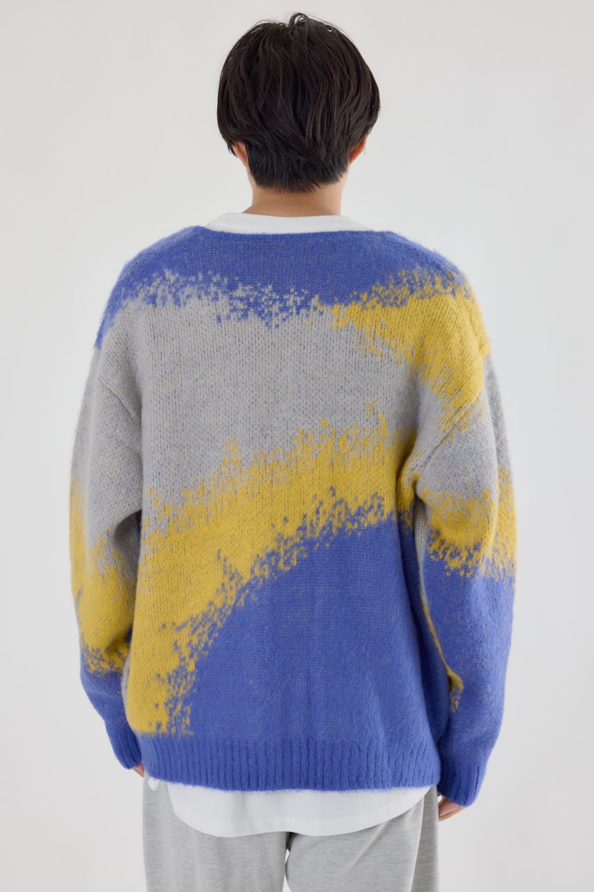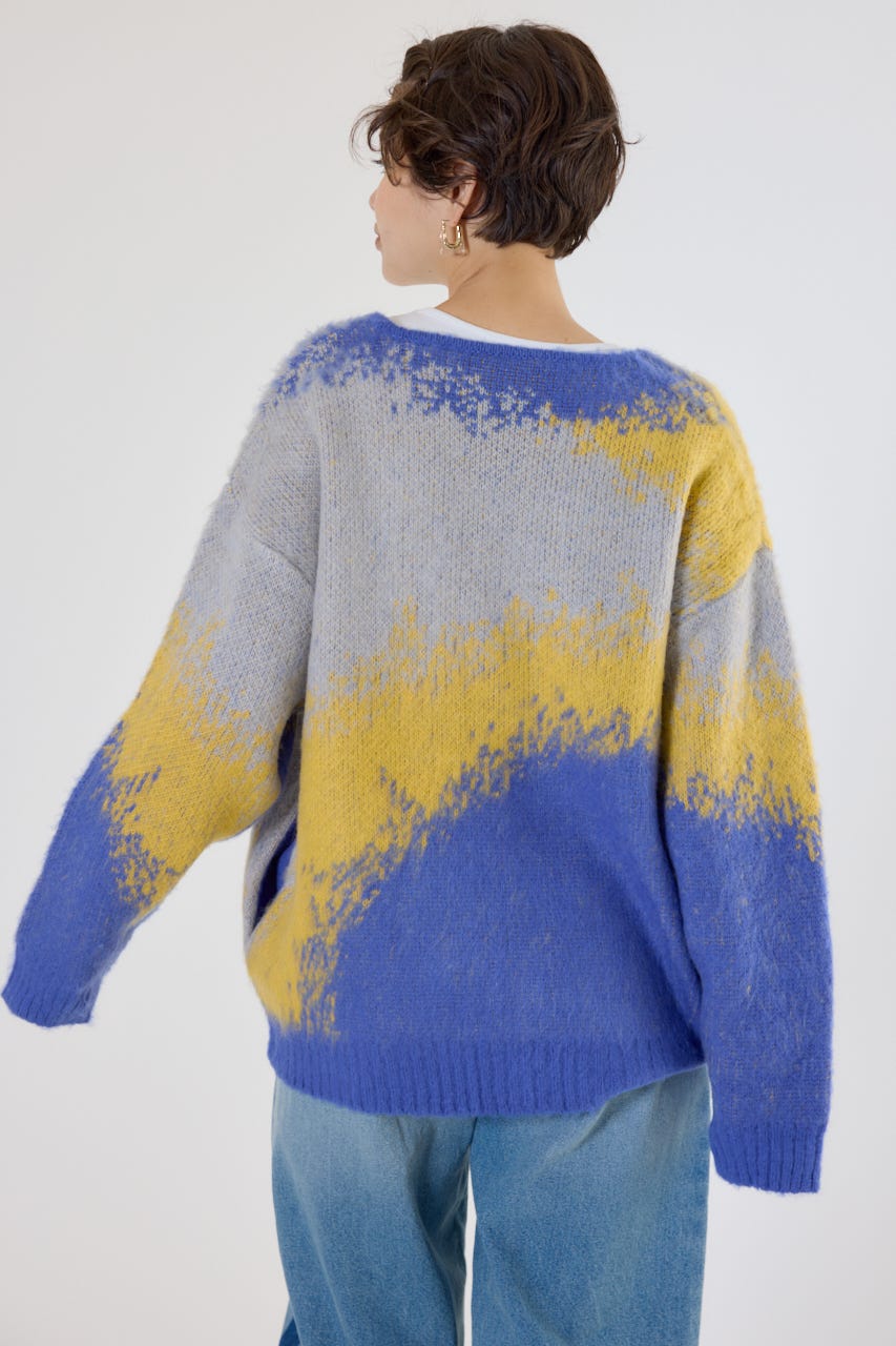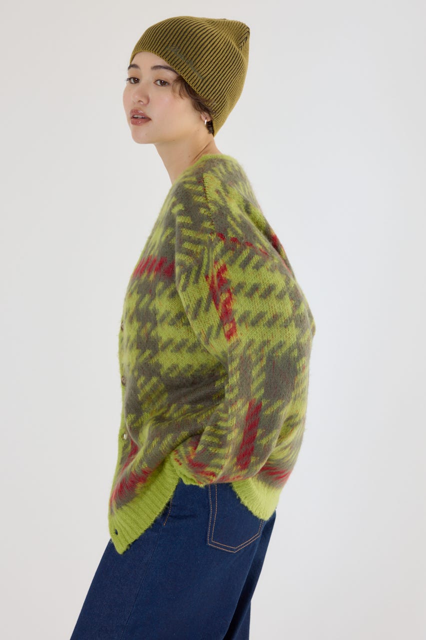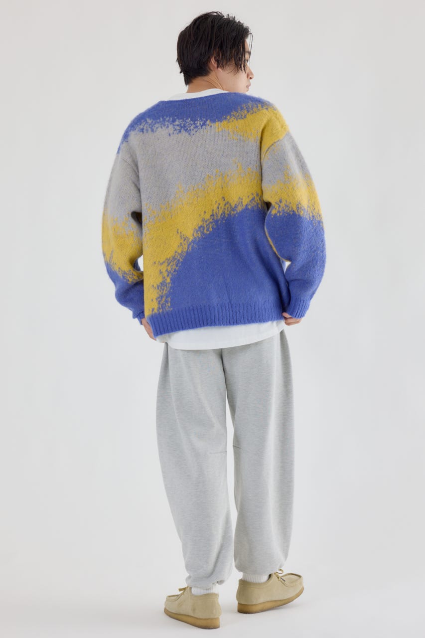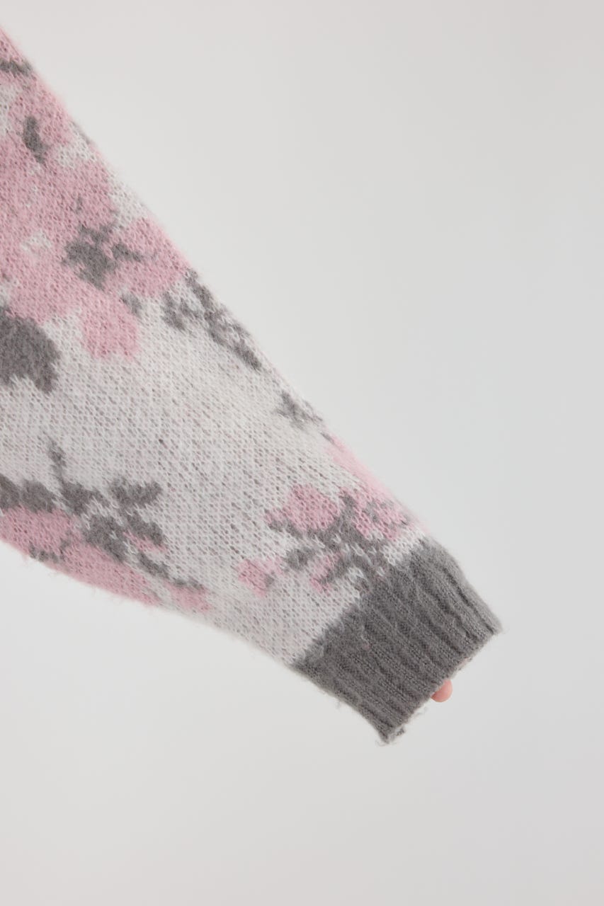 ジャガード編み、また、毛足の長い糸の起毛加工のため、編地と素材の特性上、編地表面にネップや糸の浮き、毛羽の乱れは多少生じてしまいます。