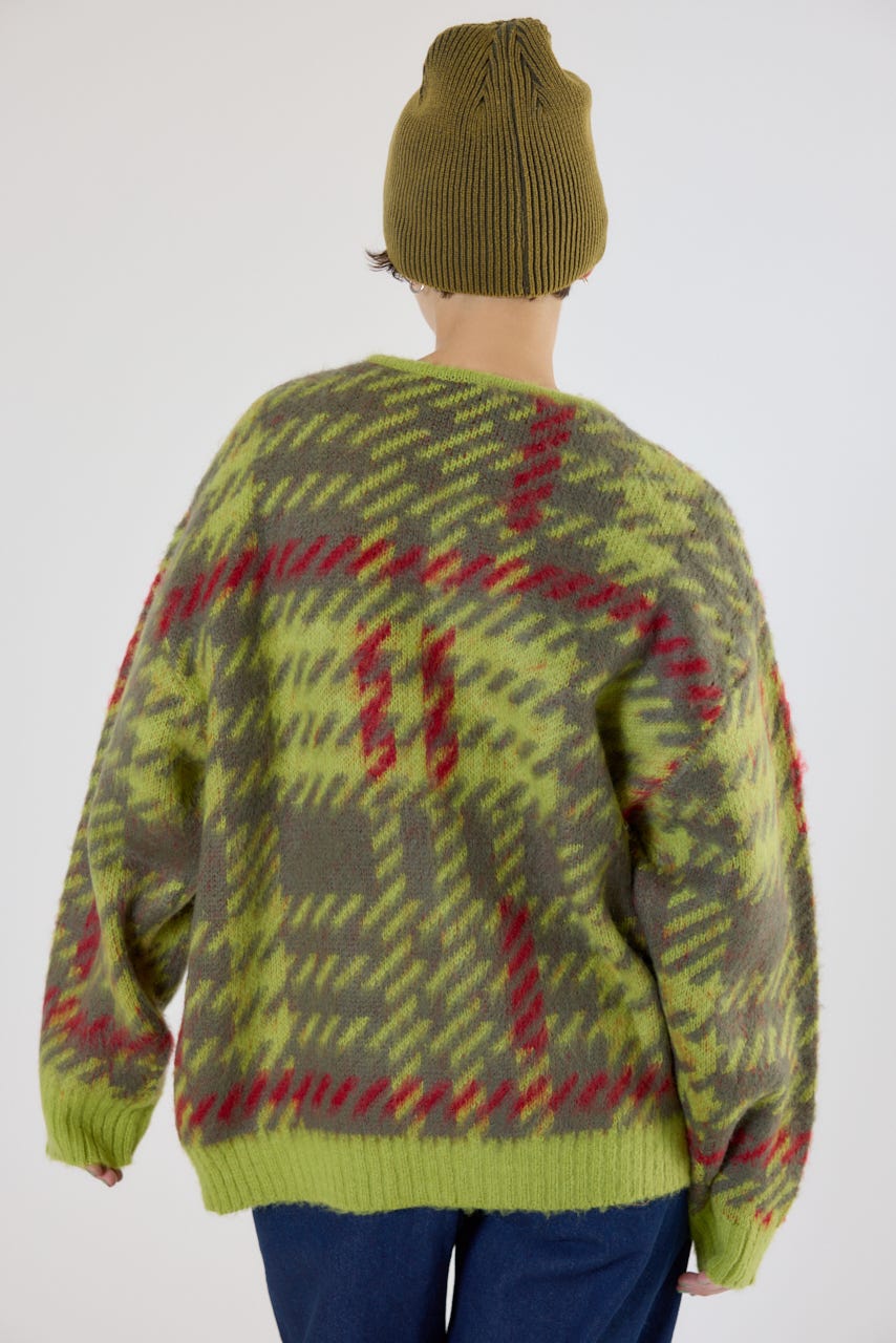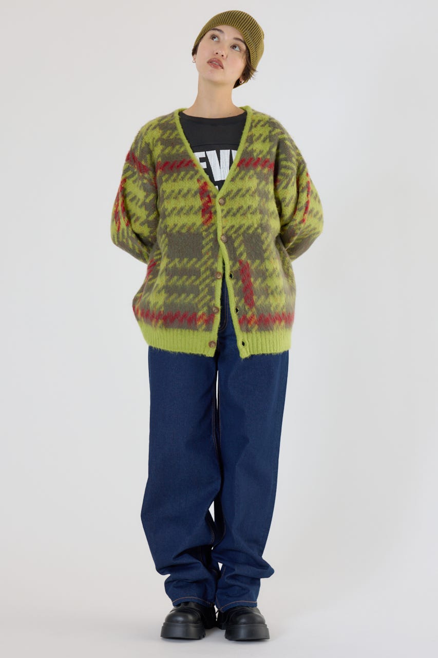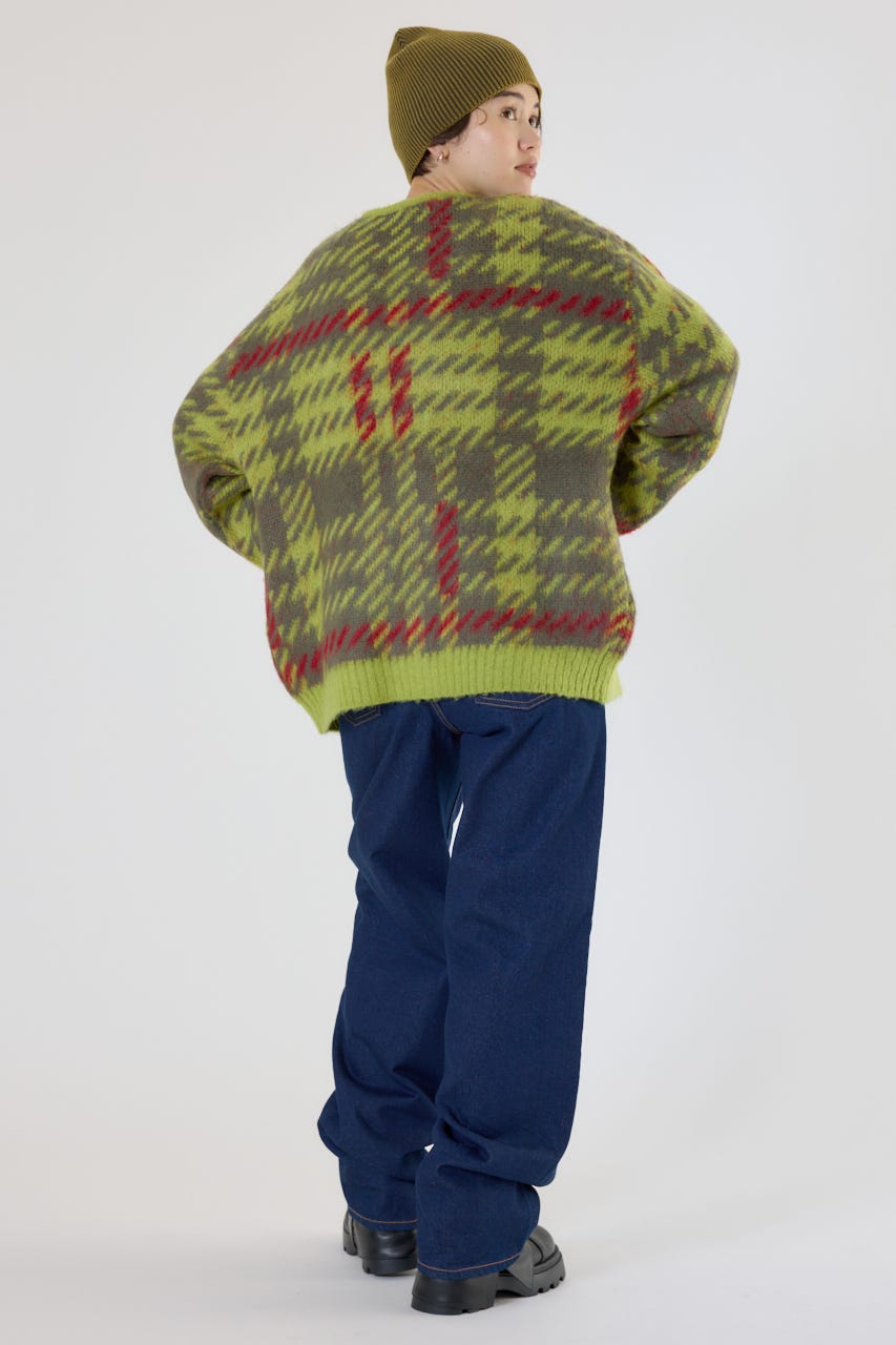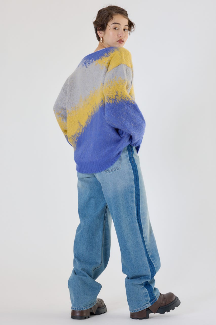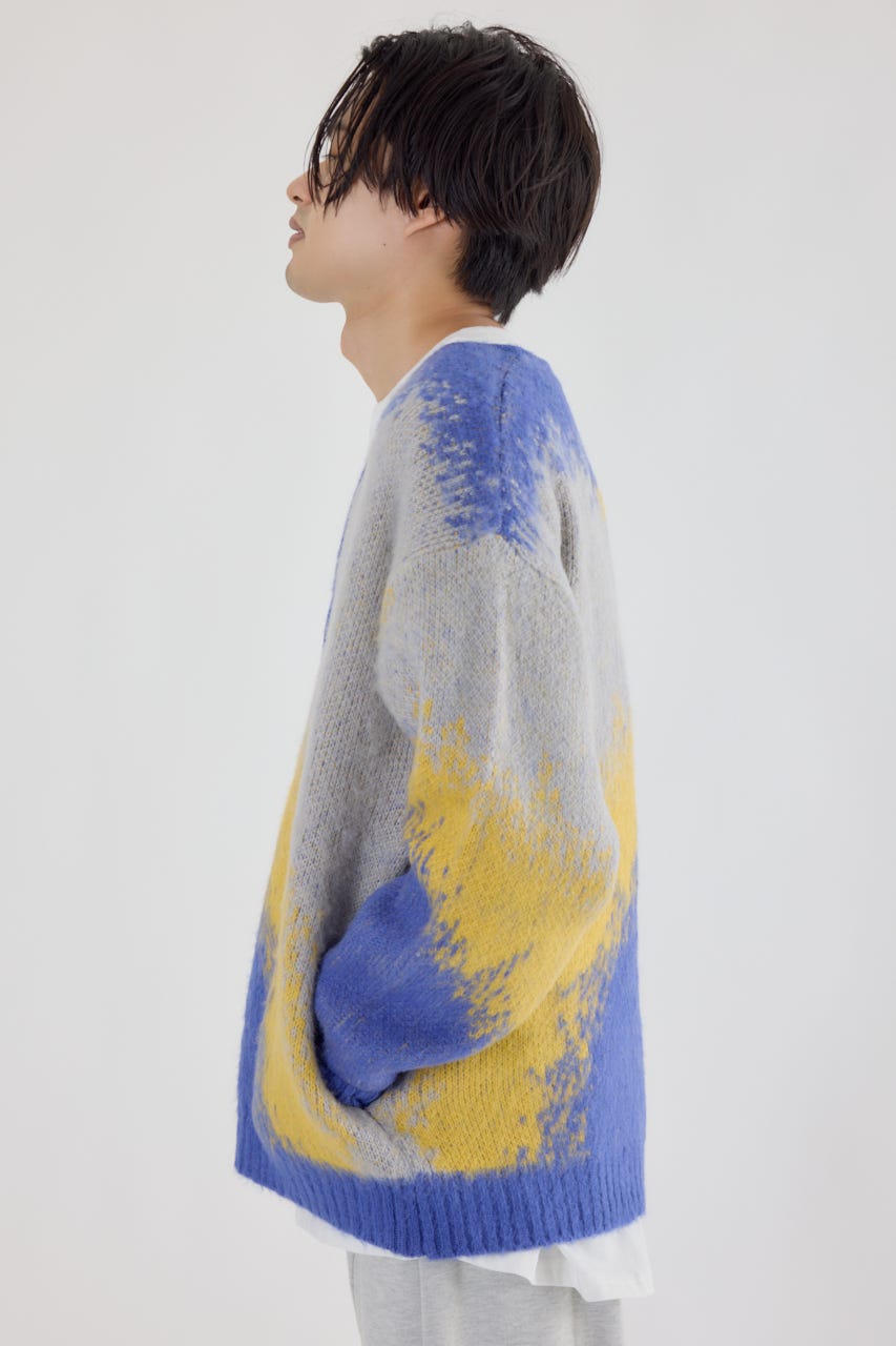 ジャガード編み、また、毛足の長い糸の起毛加工のため、編地と素材の特性上、編地表面にネップや糸の浮き、毛羽の乱れは多少生じてしまいます。