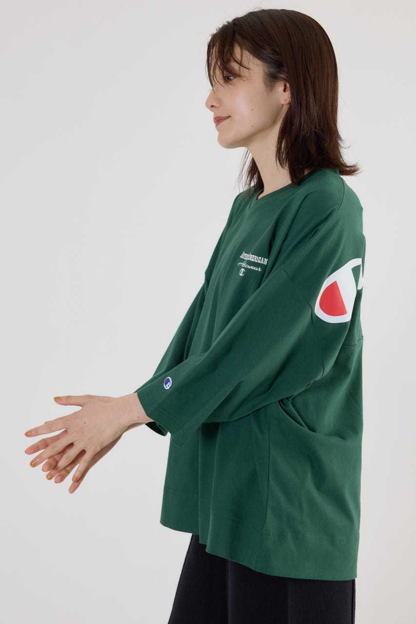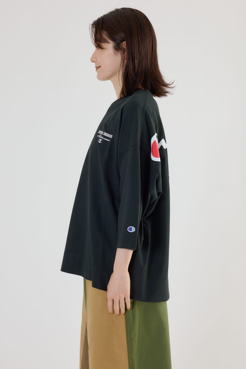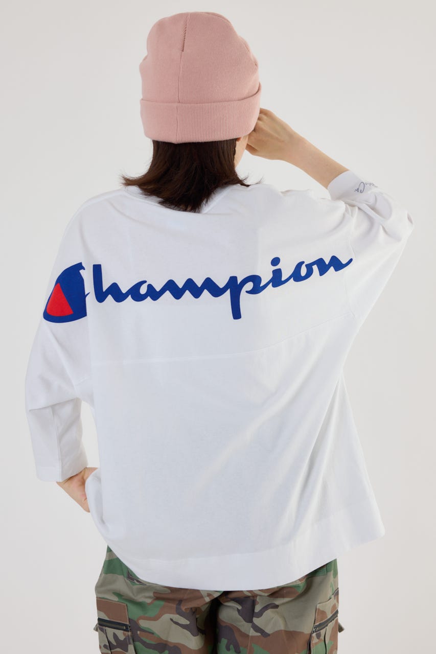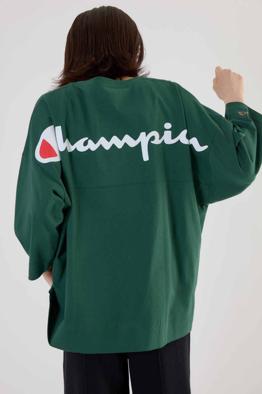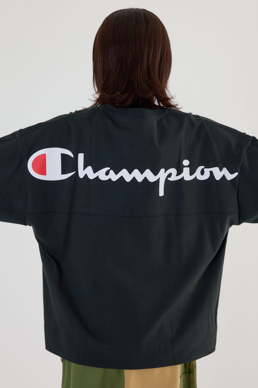 バックのフットボール切替の箇所にCHAMPIONロゴのプリントが入ります。