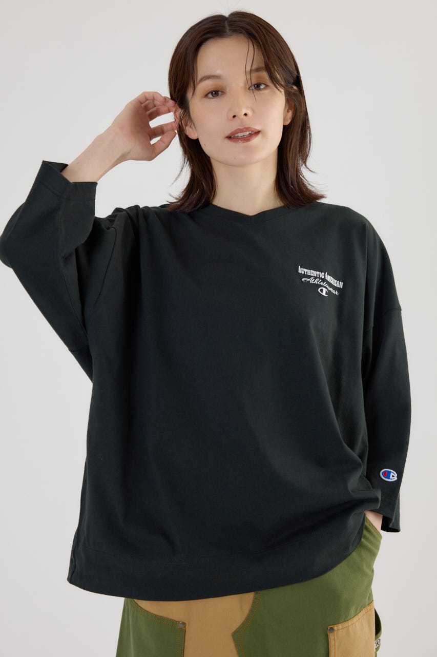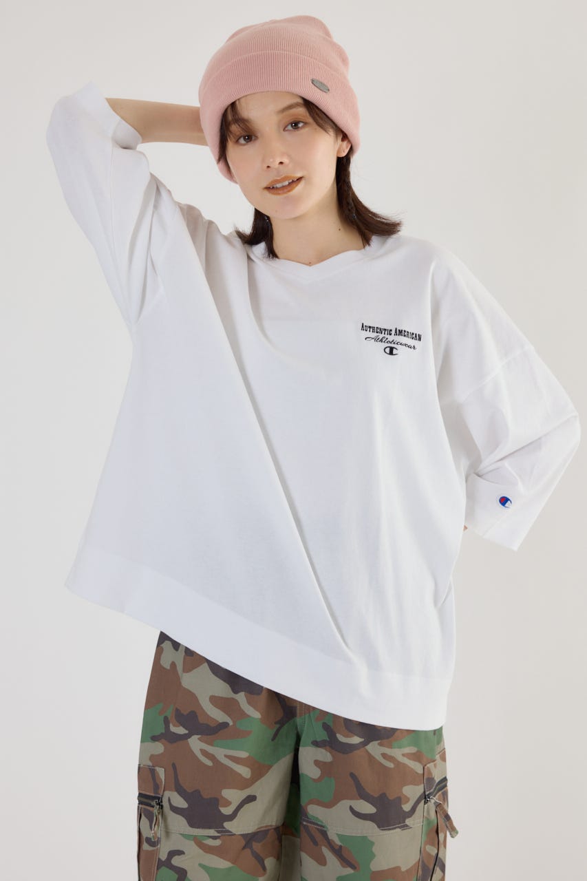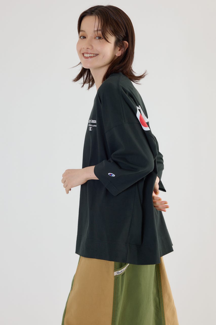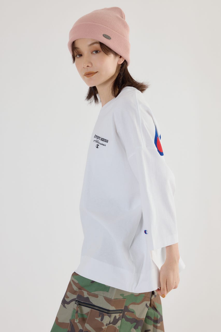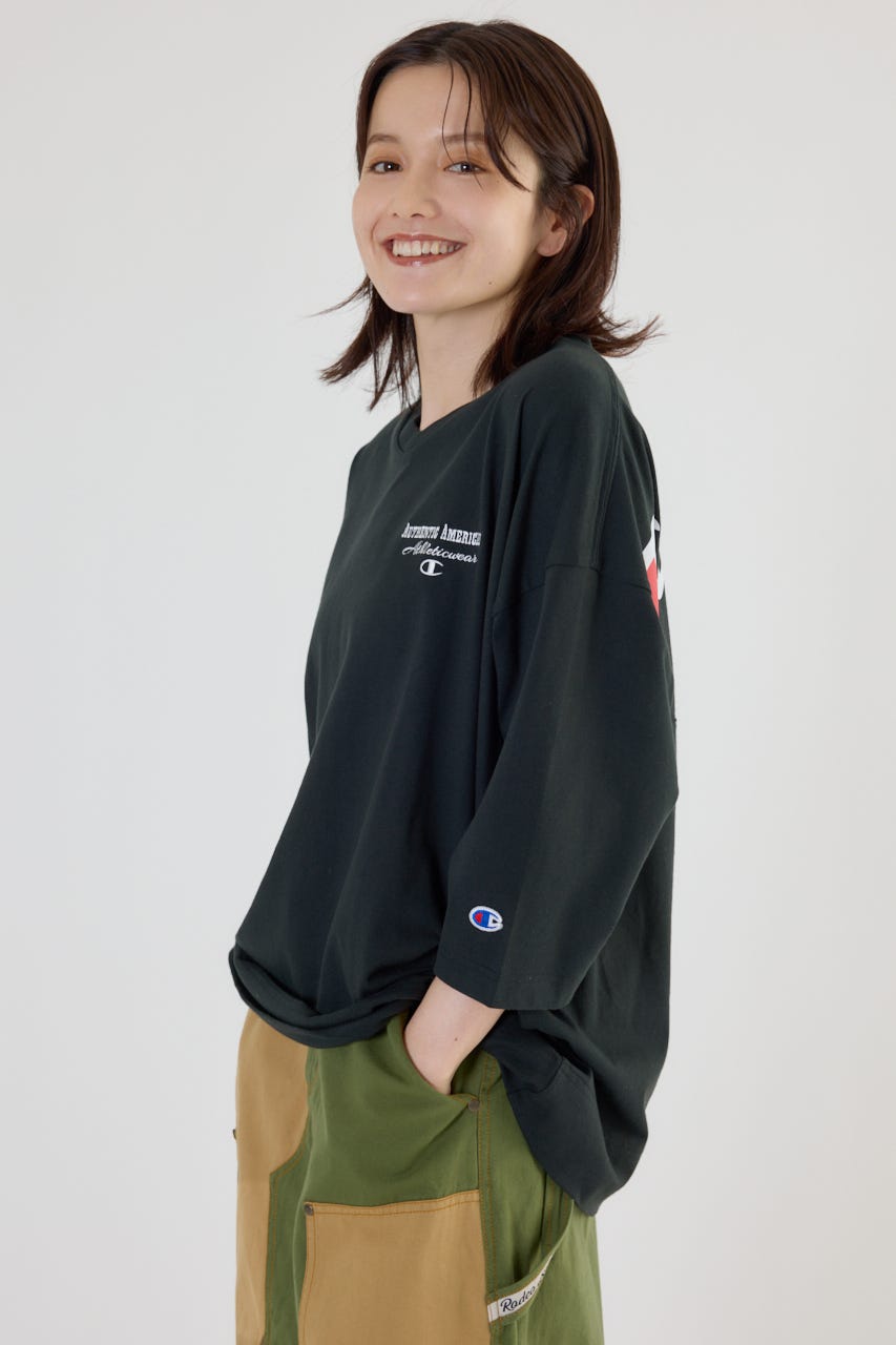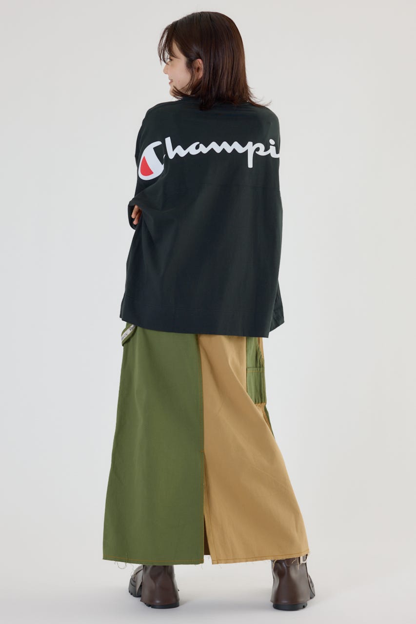 バックのフットボール切替の箇所にCHAMPIONロゴのプリントが入ります。