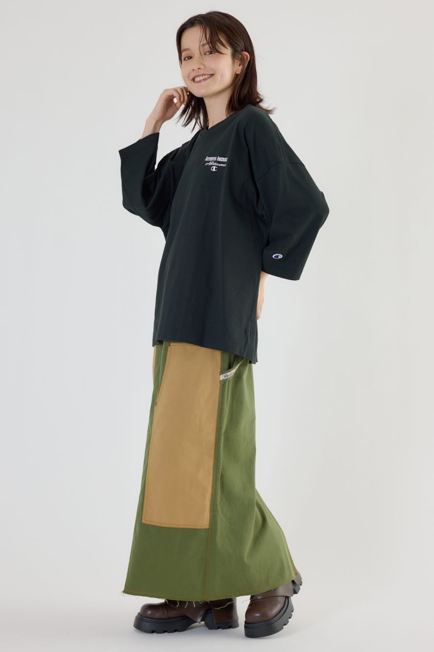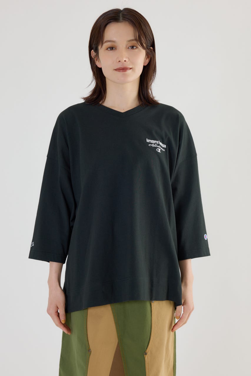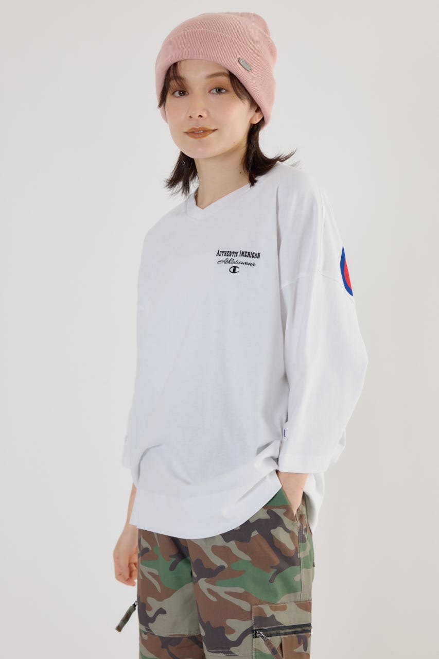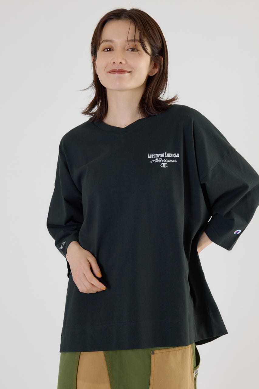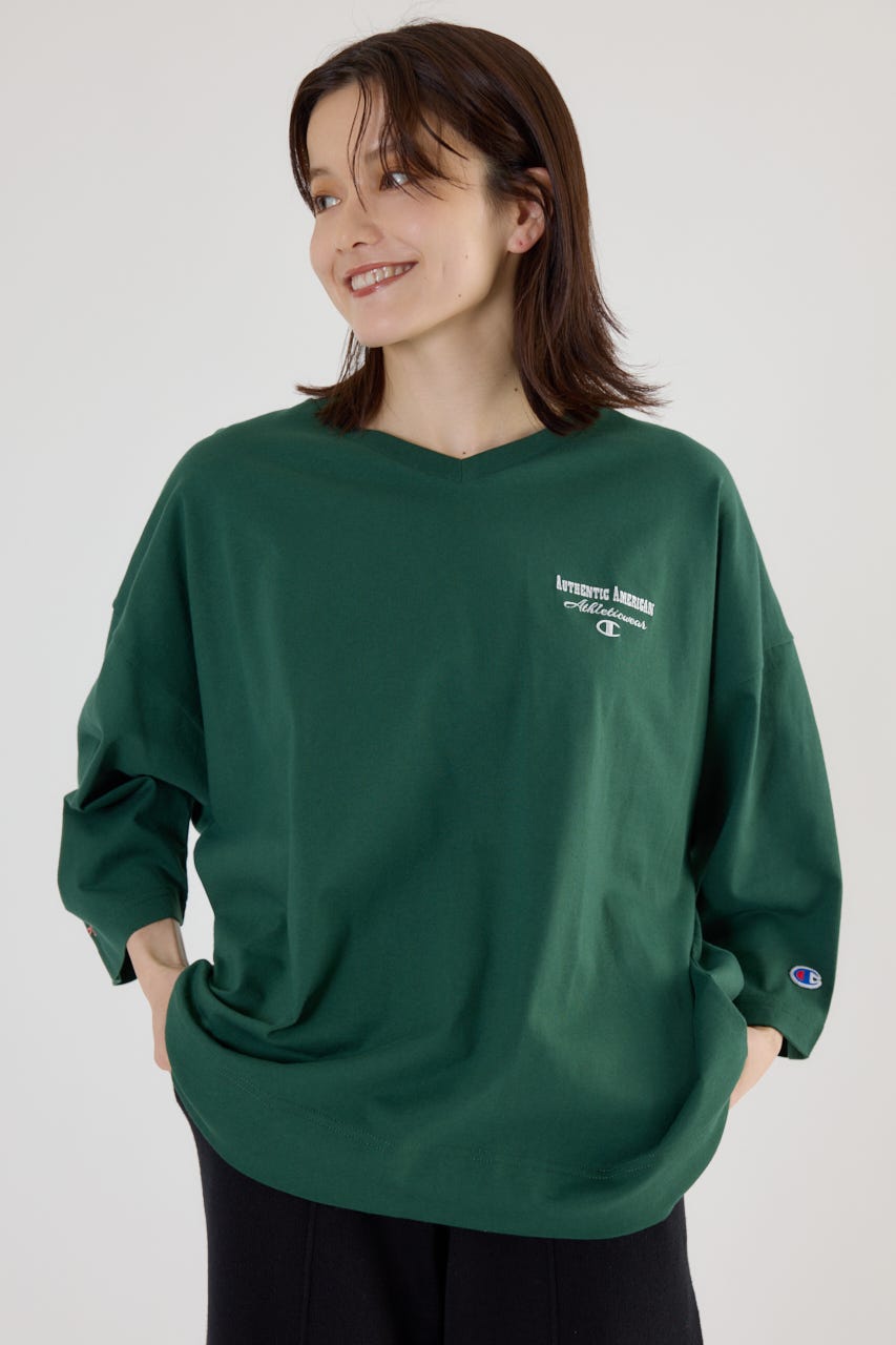 バックのフットボール切替の箇所にCHAMPIONロゴのプリントが入ります。