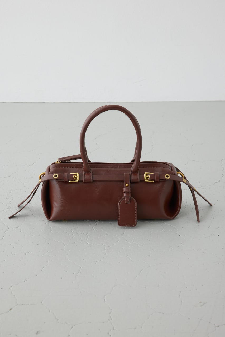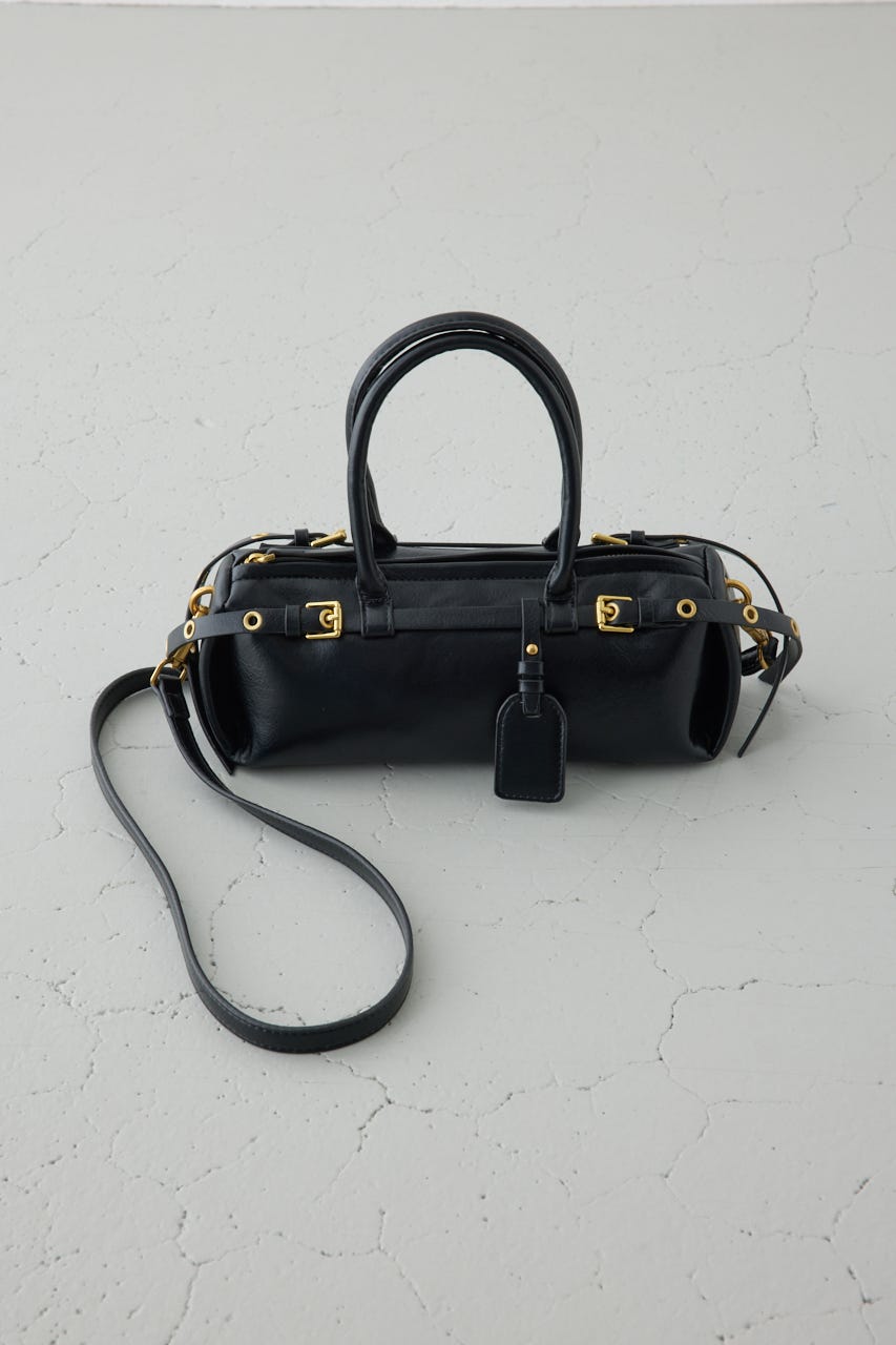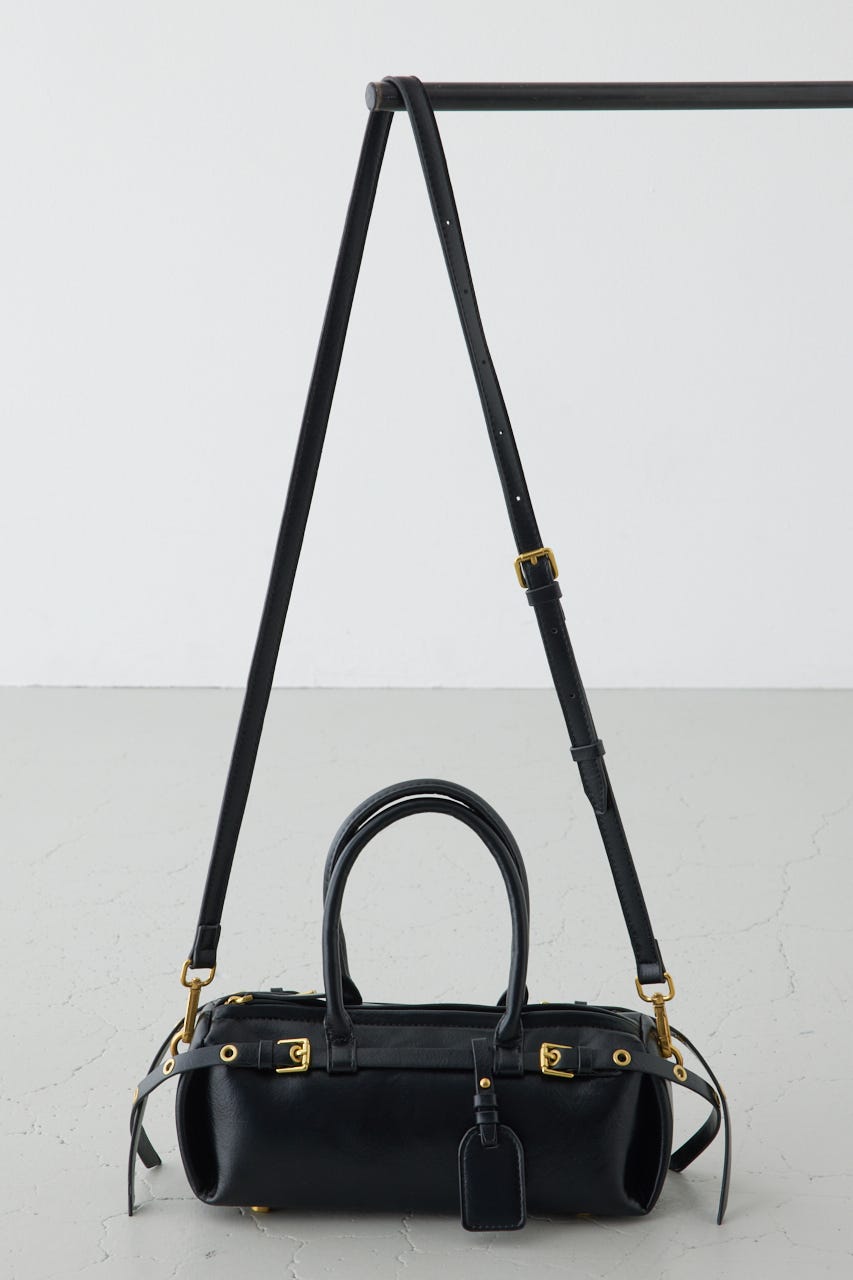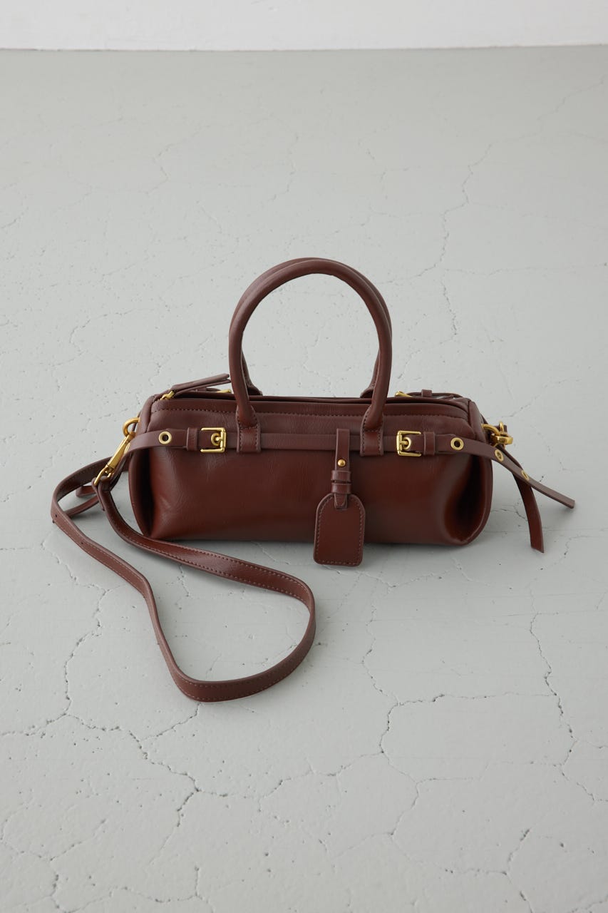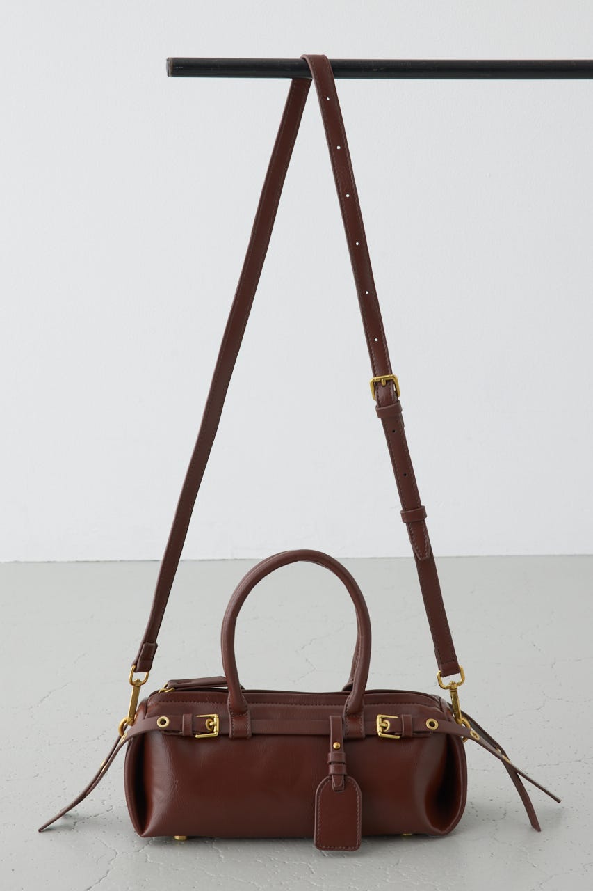 トレンドの横型フォルムの、ダブルベルトがポイントのショルダーバッグ。