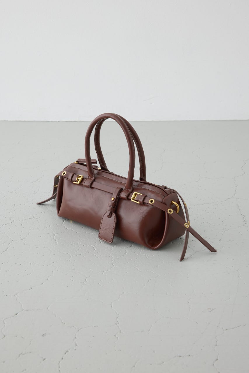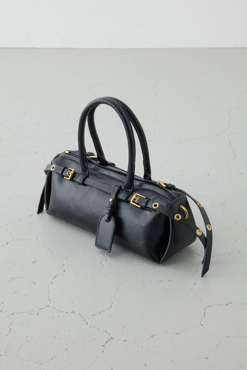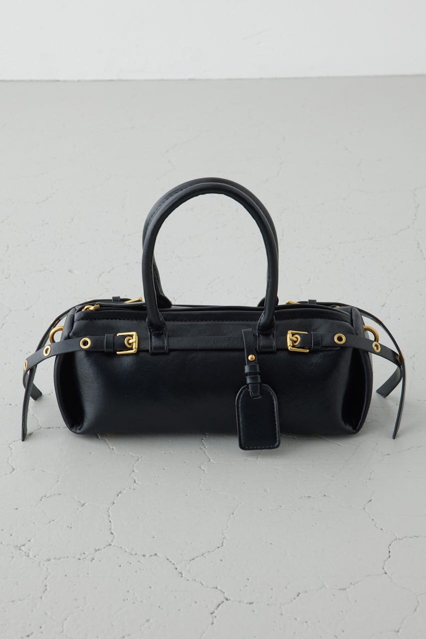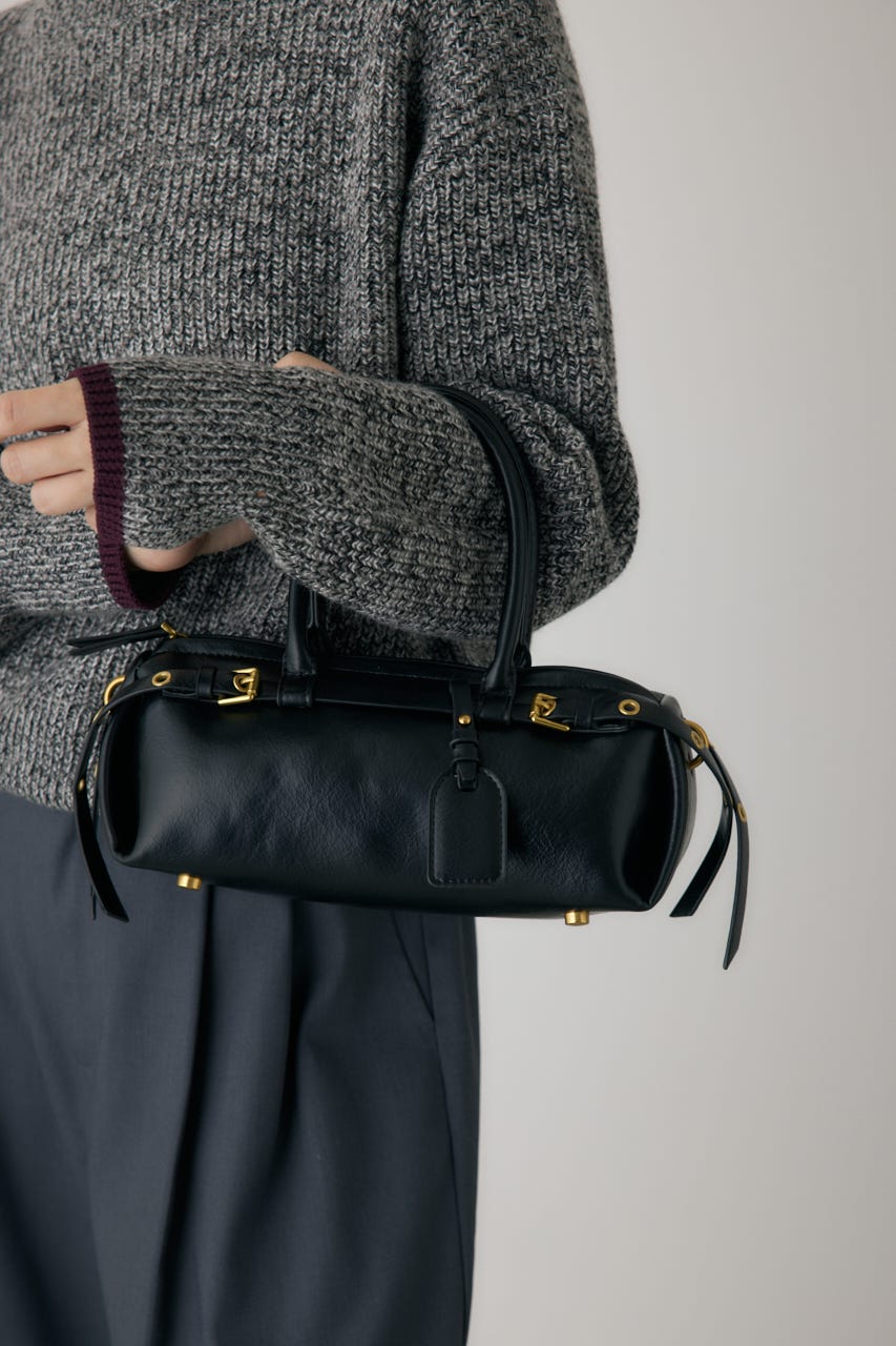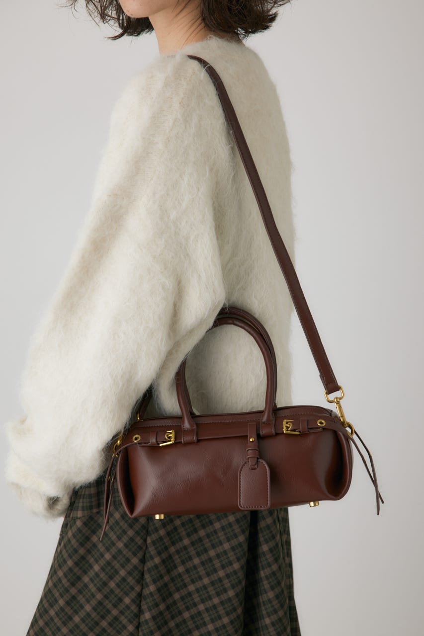 トレンドの横型フォルムの、ダブルベルトがポイントのショルダーバッグ。